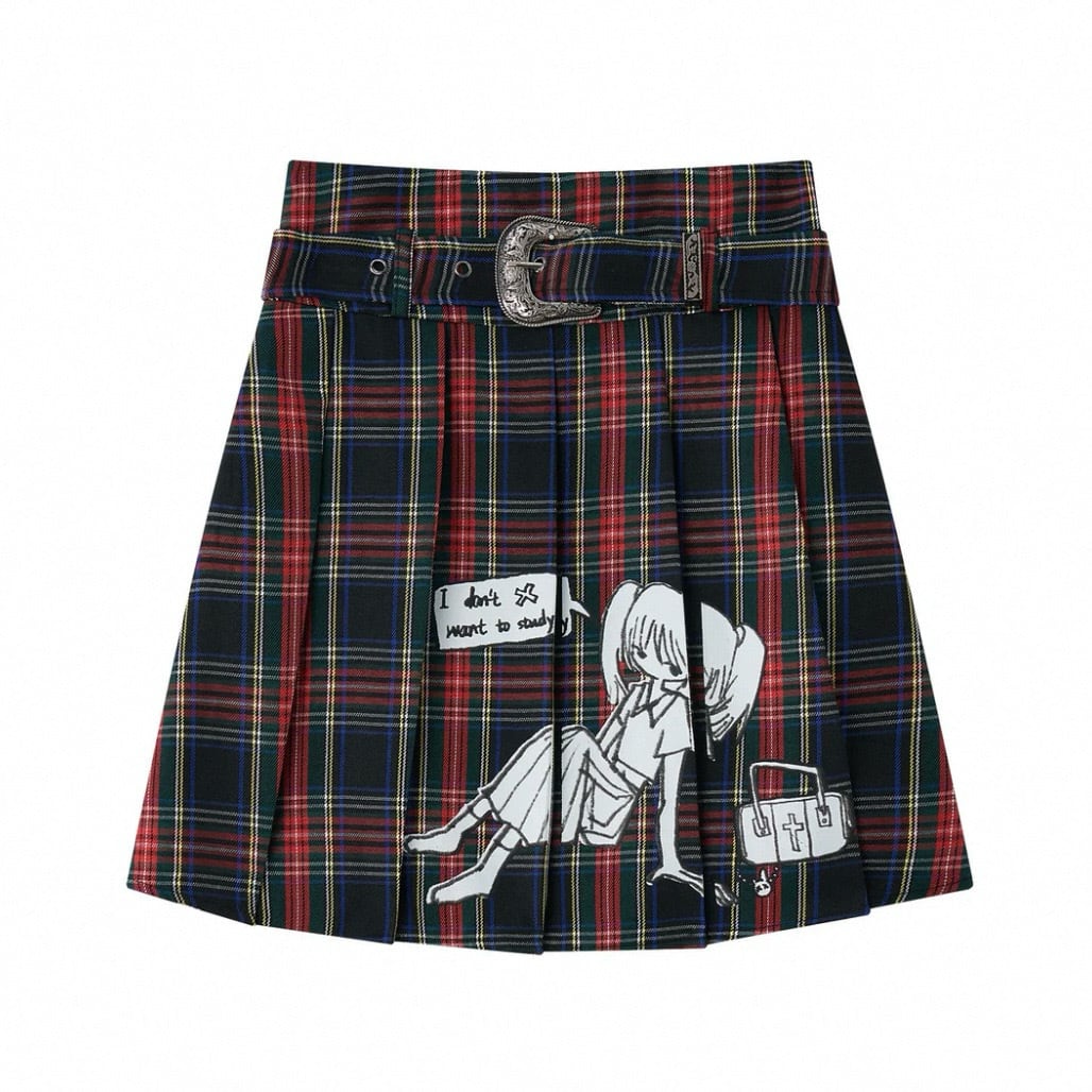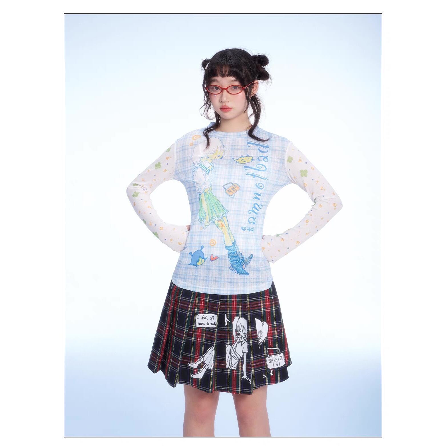 [Iamnotbad] Villain Sweetheart plaid pleated half skirt