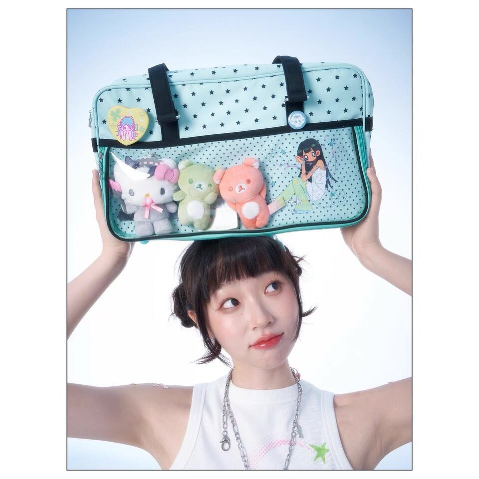 [Iamnotbad] Mint Green Star Print Pocket Bag