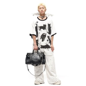 [CFIERCE] Black Cat Print Wide T-shirt
