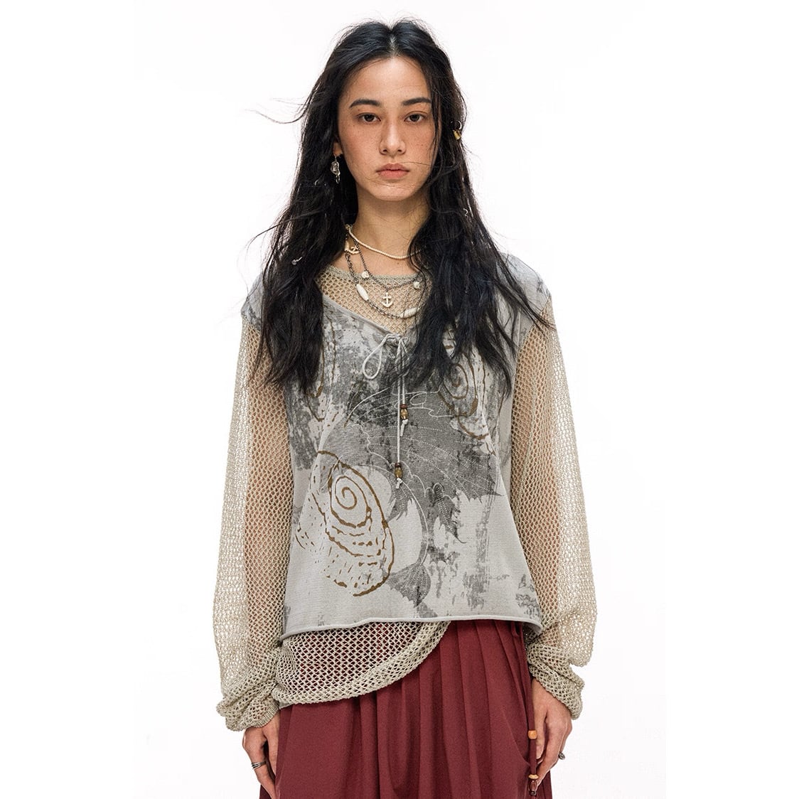 [PHYS] Vintage Seamless Mesh Fake Two-Piece Top