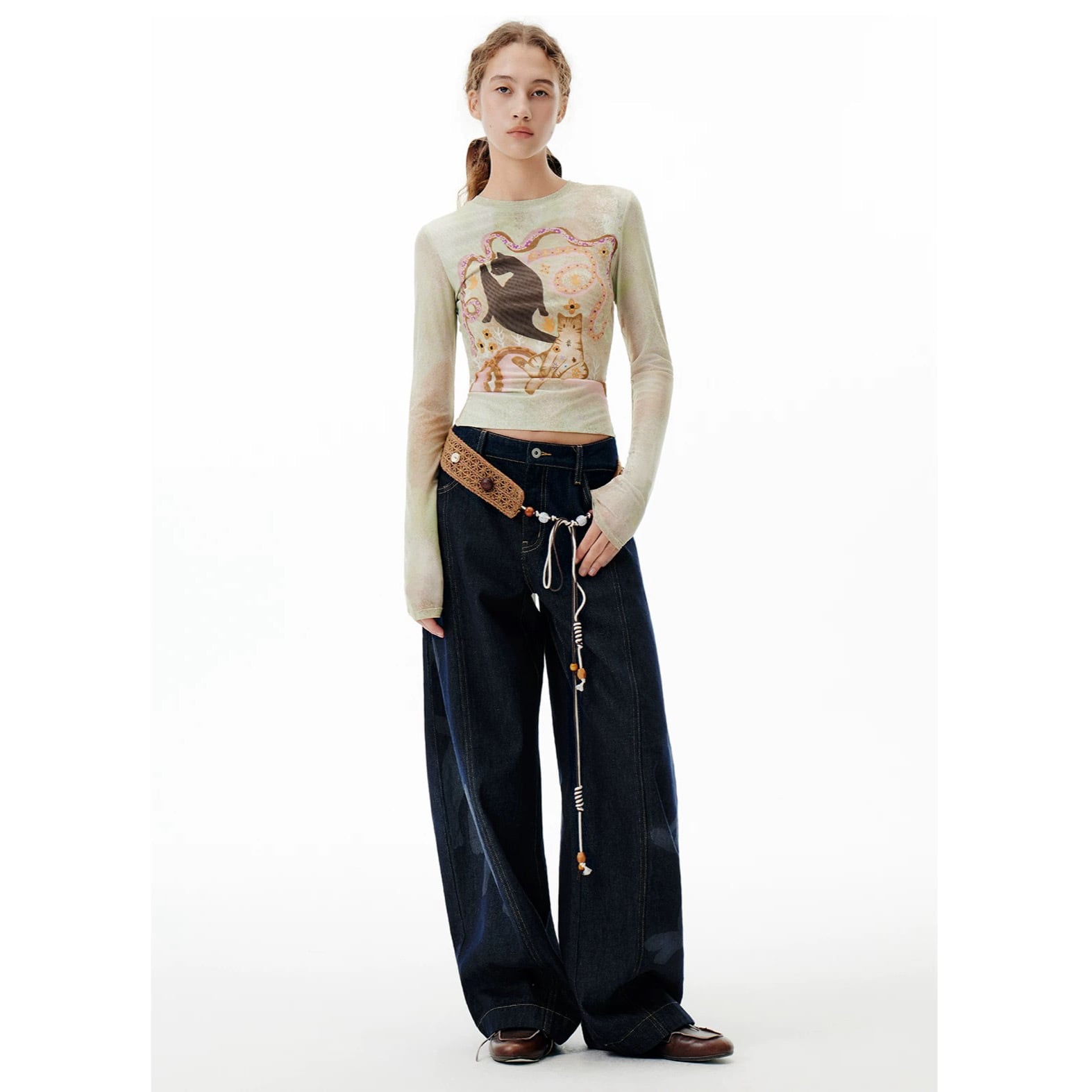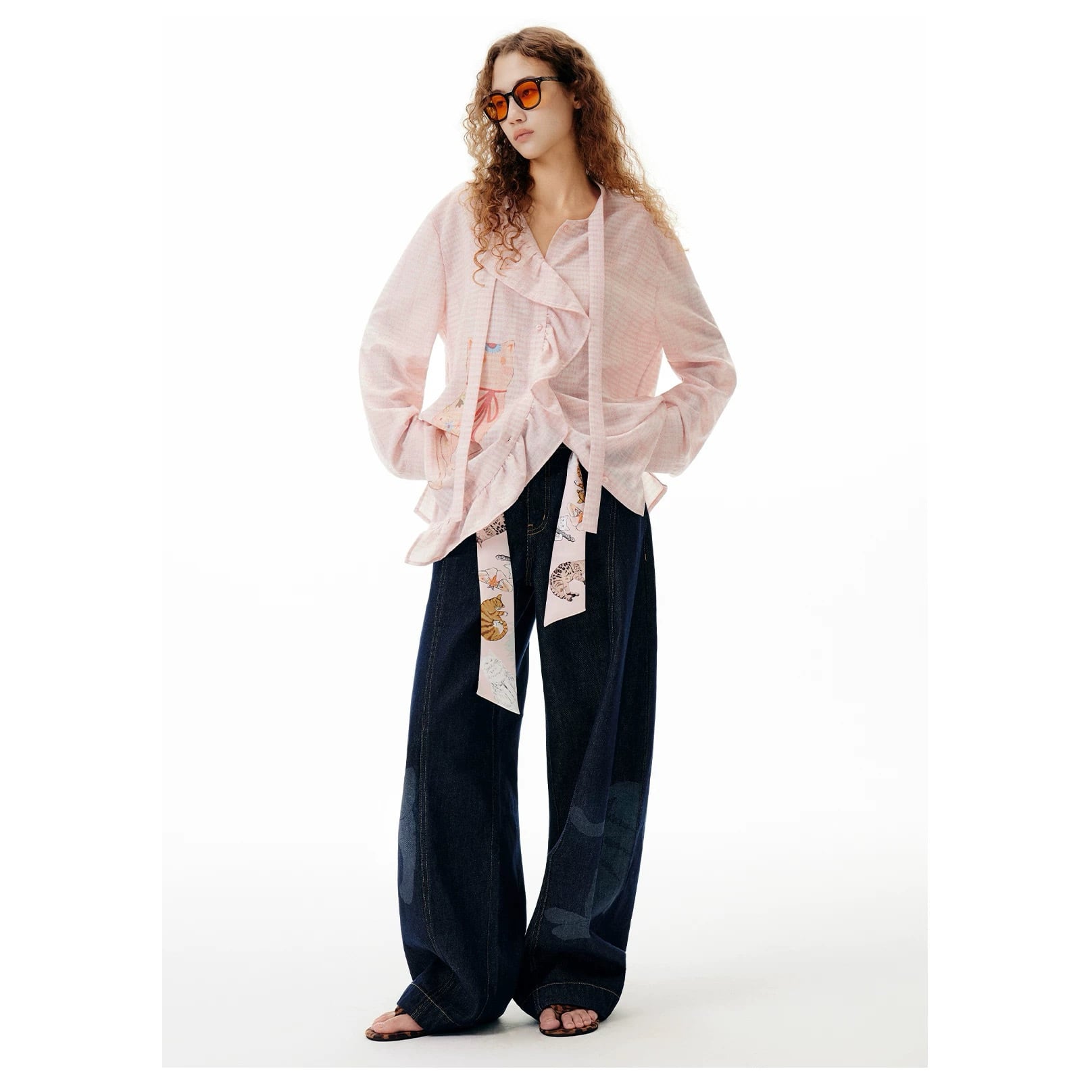 [Outthe Blue] Cat Follower Washable Denim Pants
