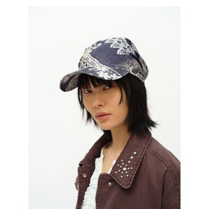 [oinimi] Blue-Gray Lace Printed Triangle Scarf Cap