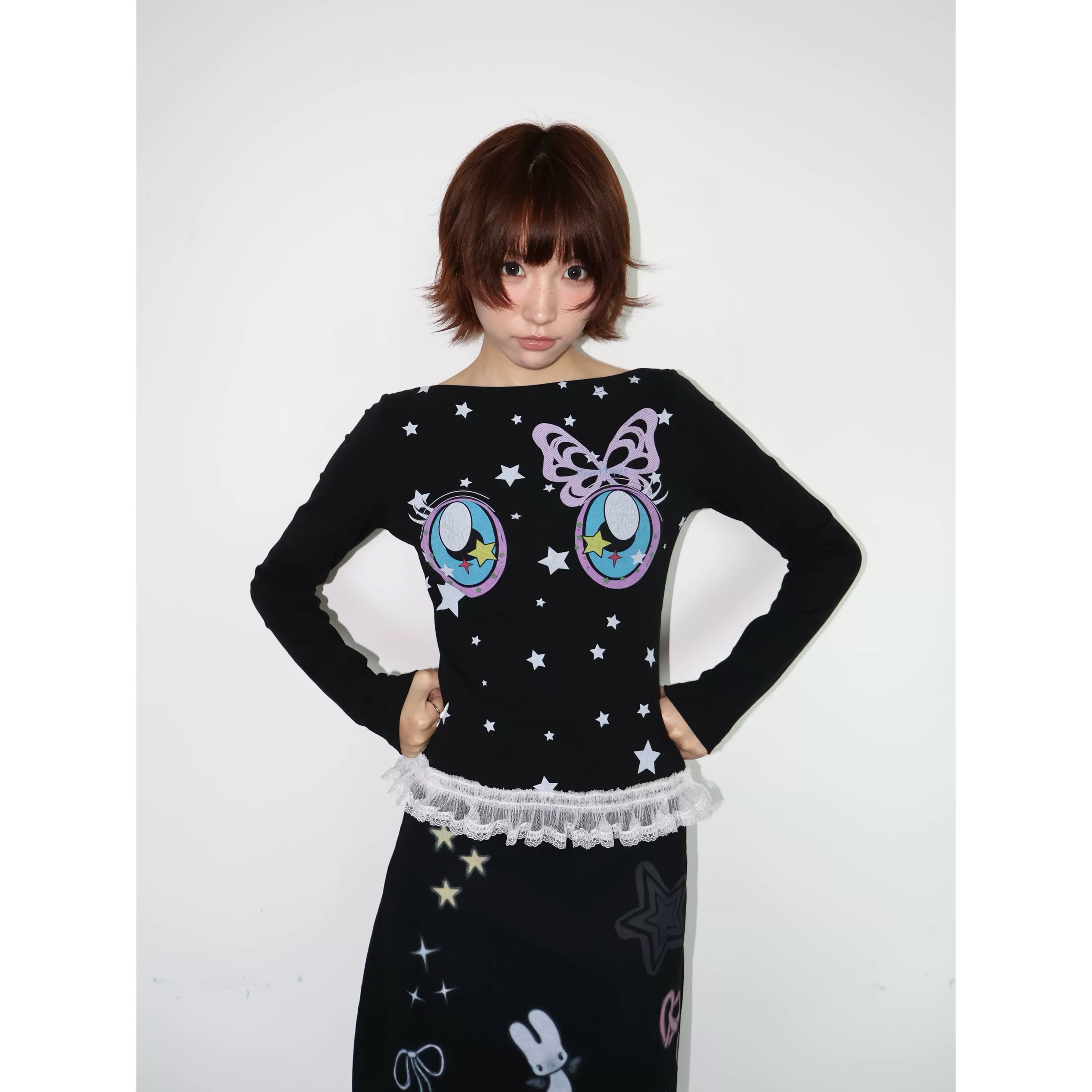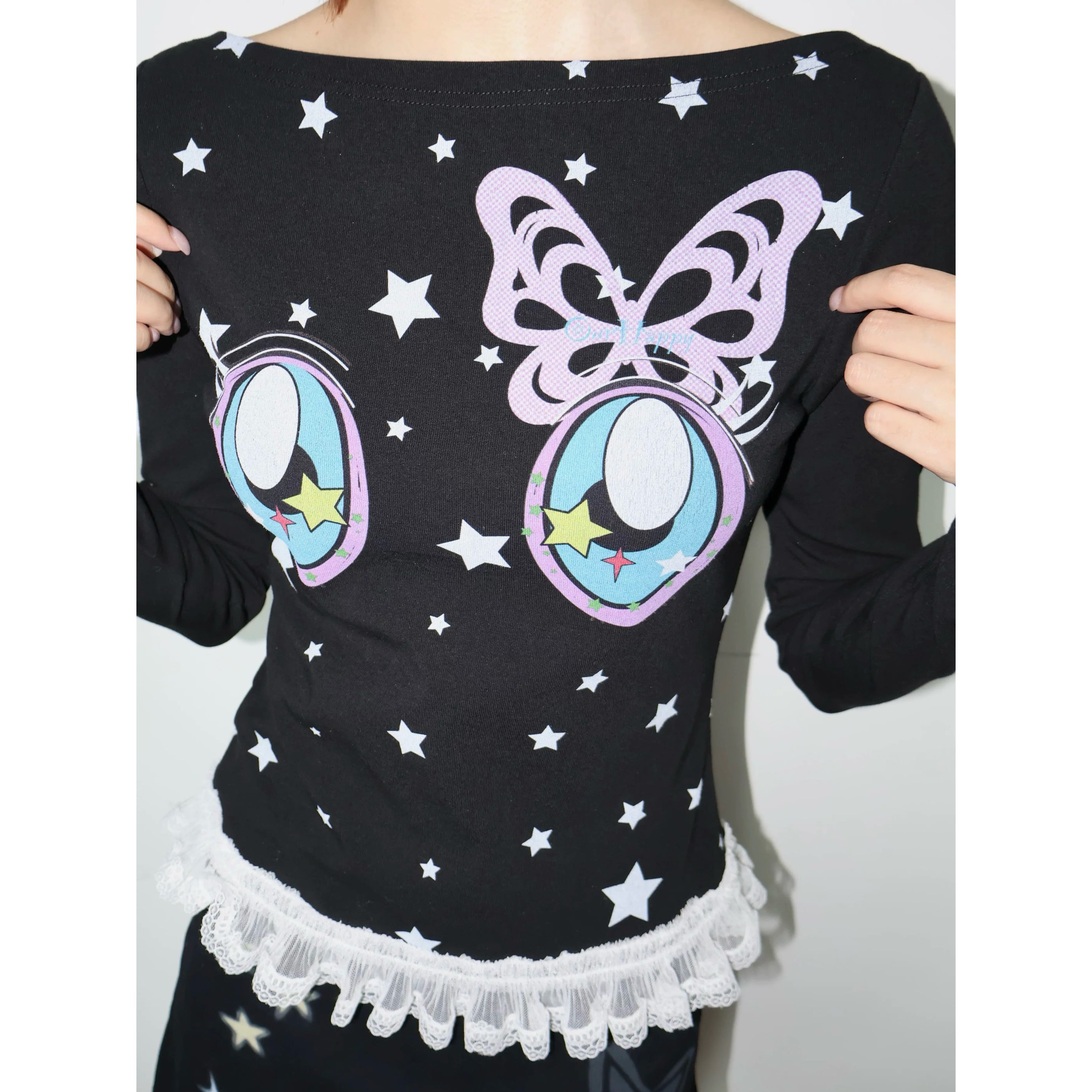 [OurHappy] Star Comic Eye Retro Long-Sleeve Top