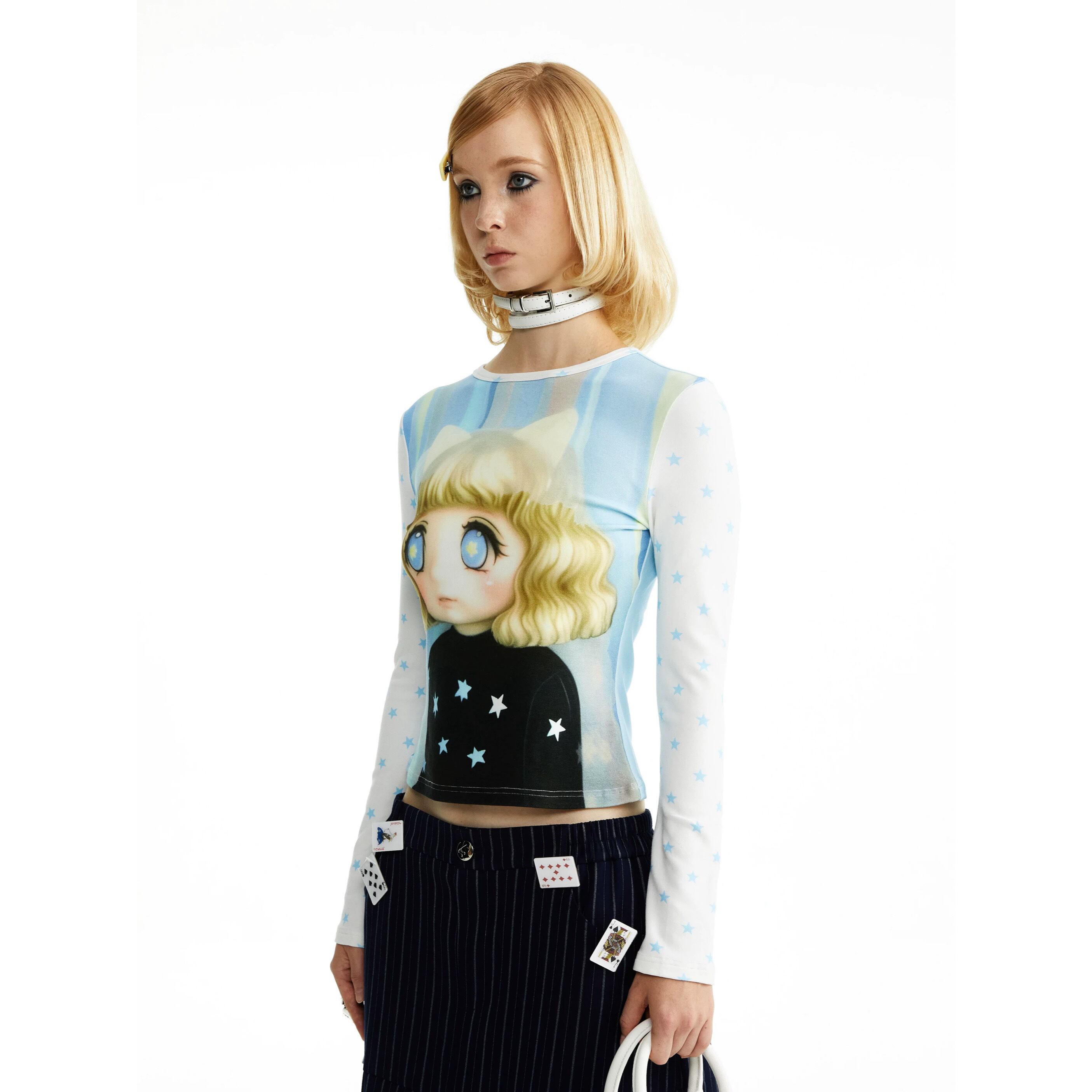 [YOSHUYUKI] Girls' Print Cartoon Knit Top