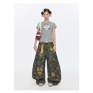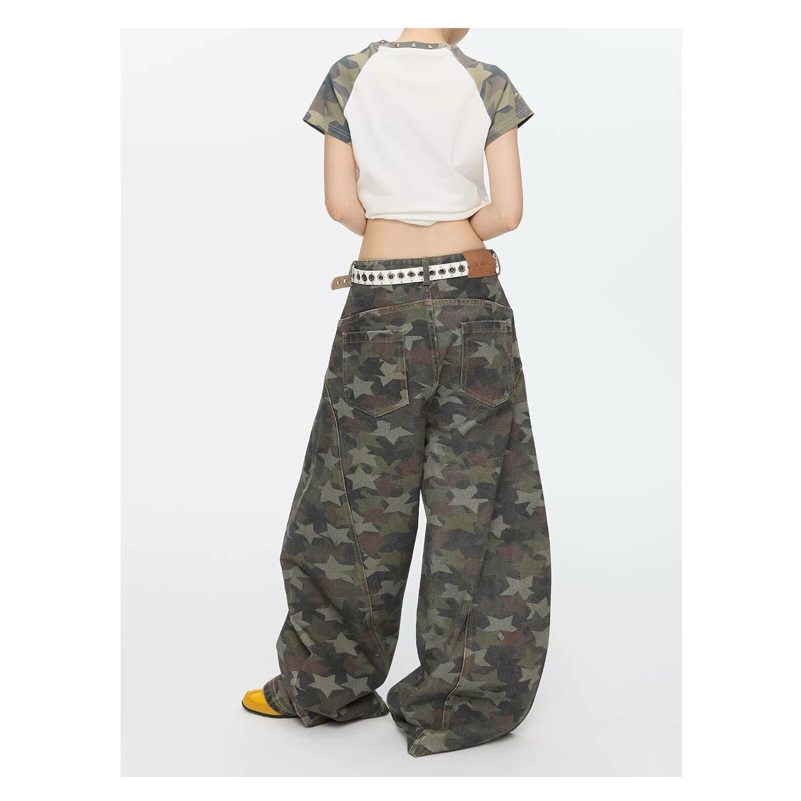 [BETWEENAND] Star-Bonded Camouflage Curved Blade Pants