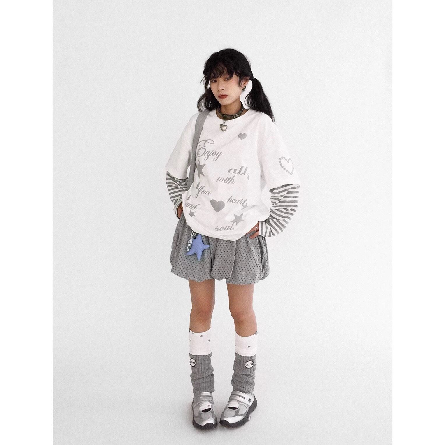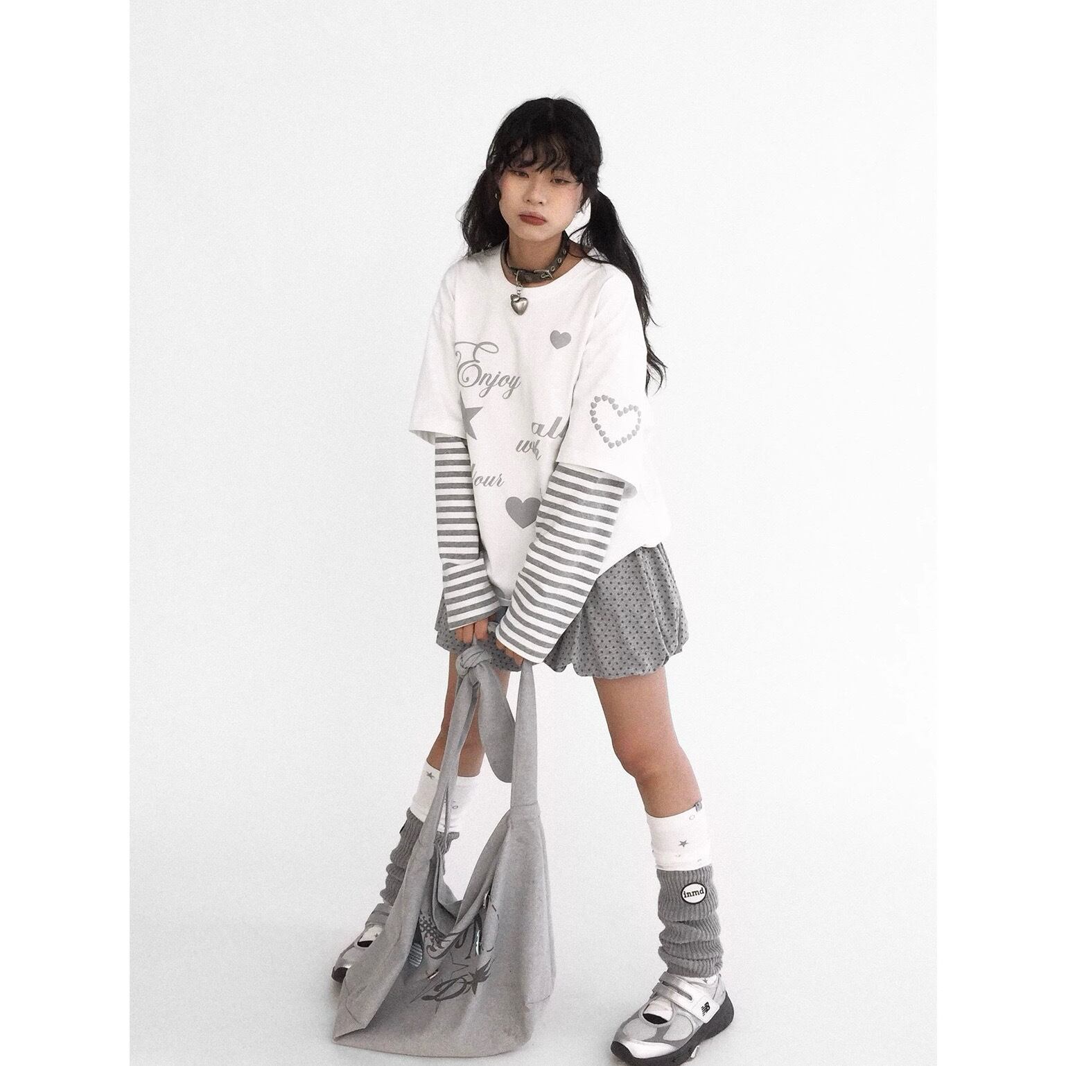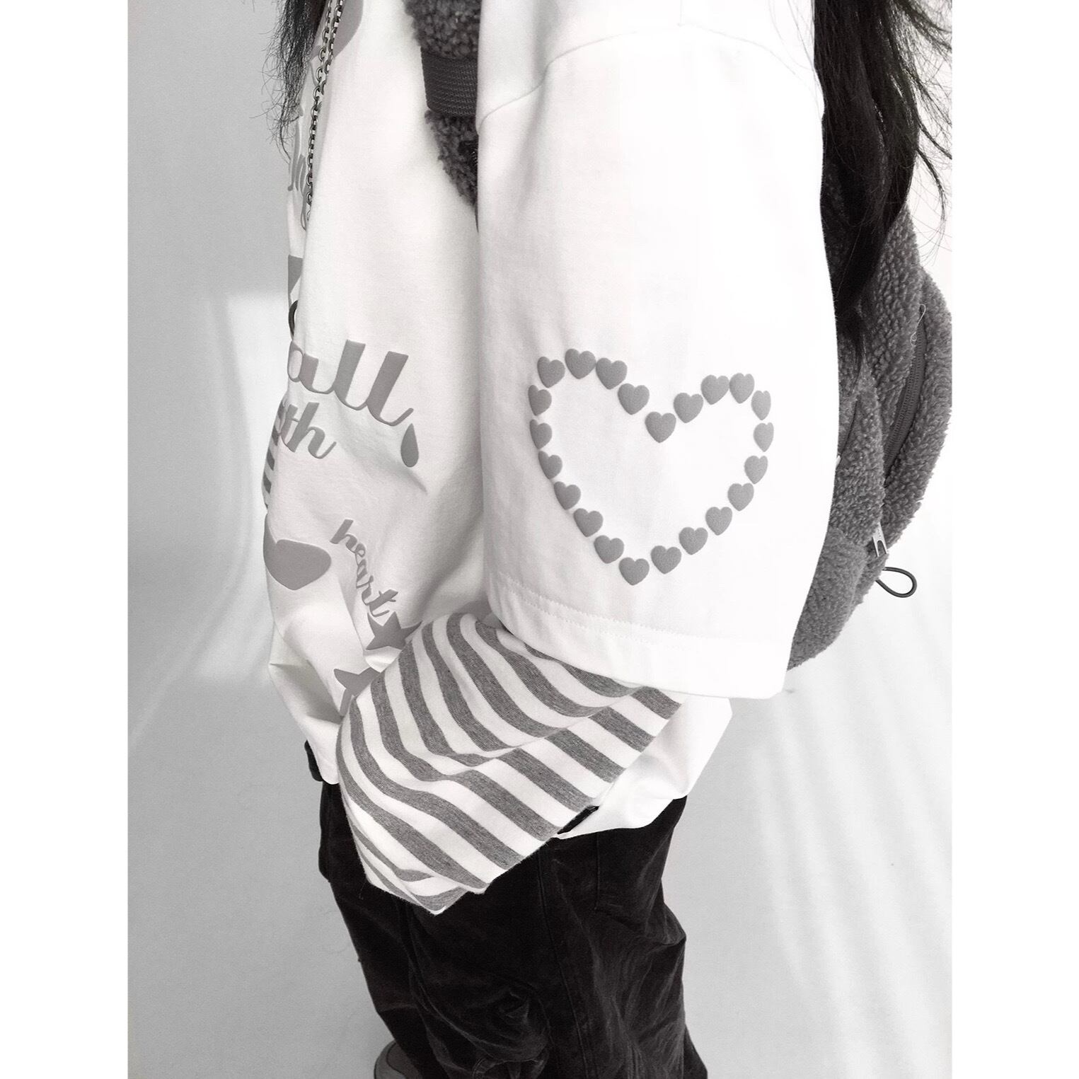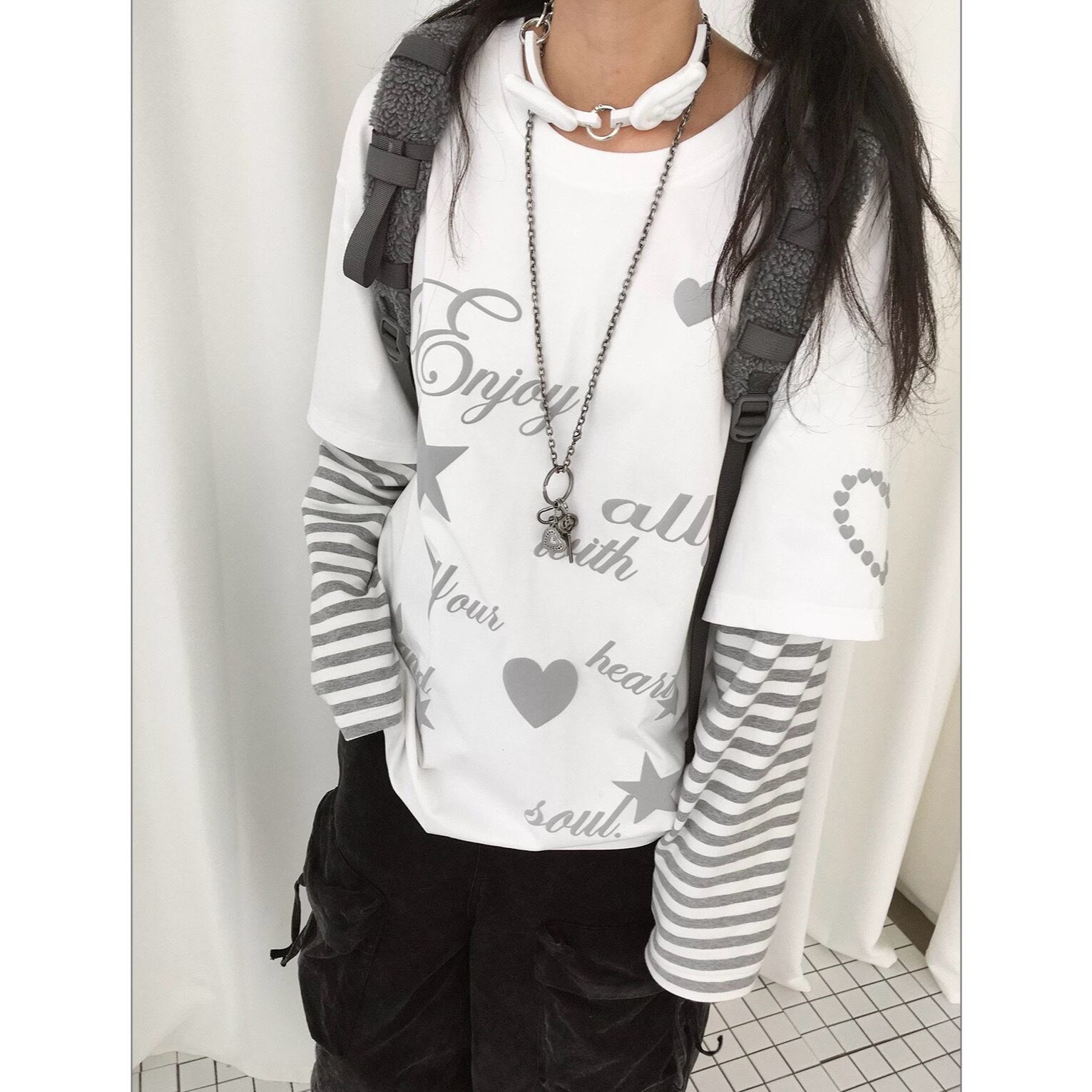 [Innomoood] Love Stars Fake Two-Piece Striped Top