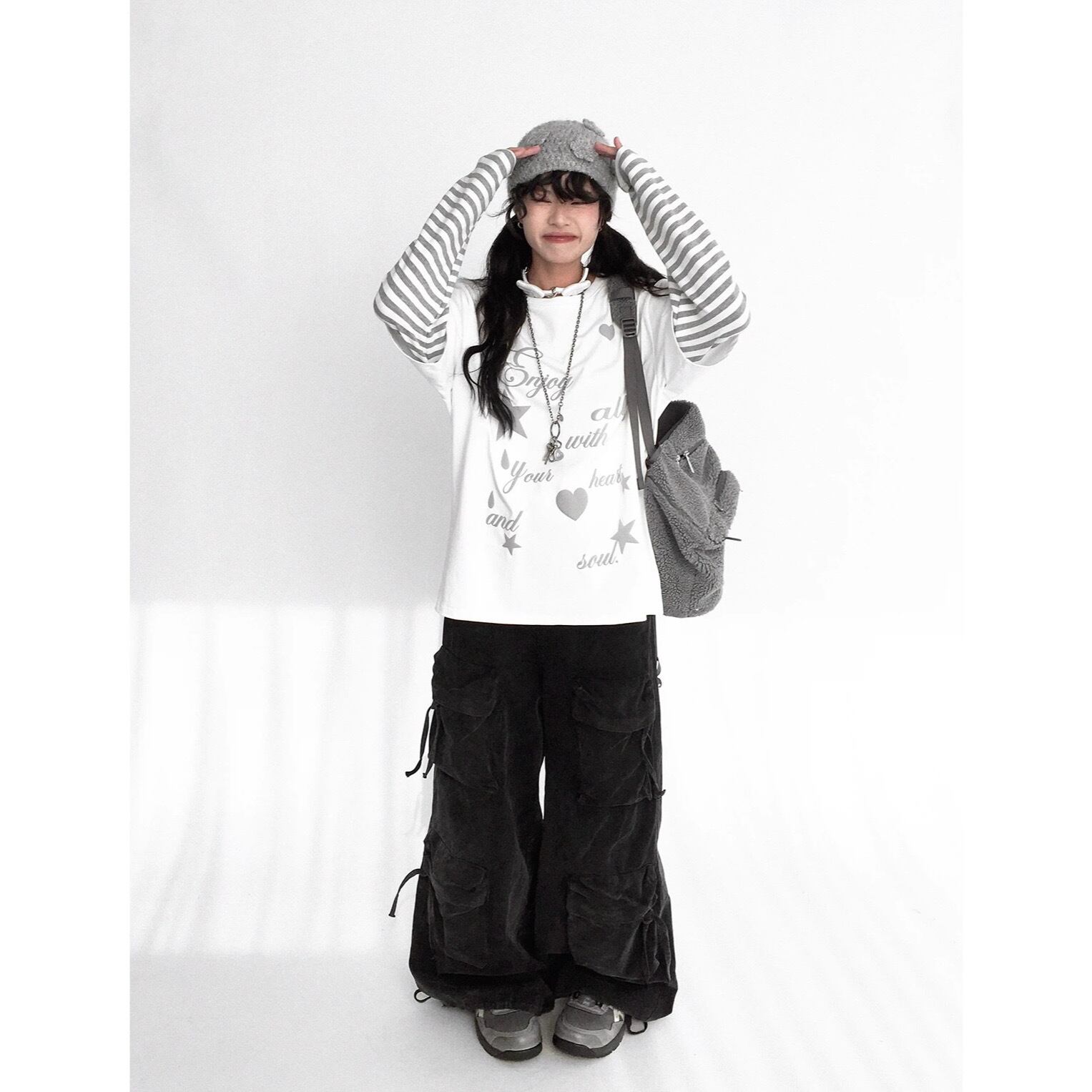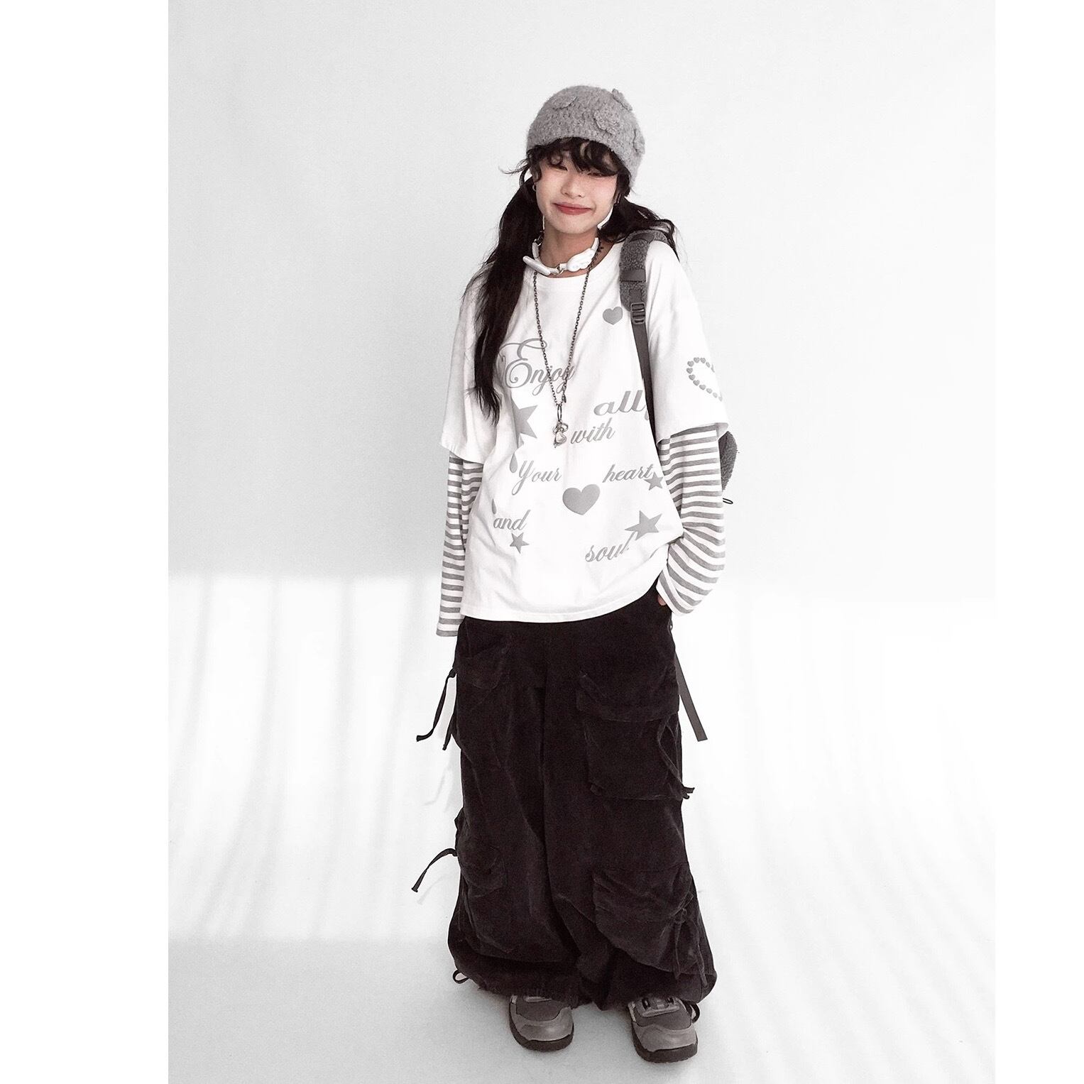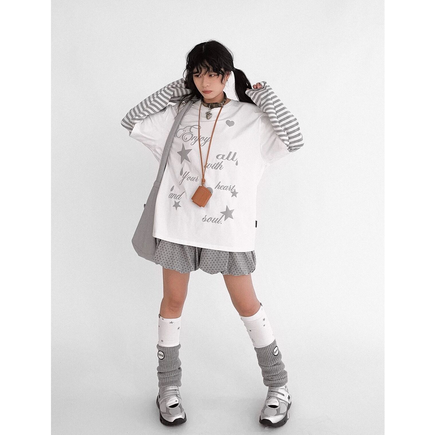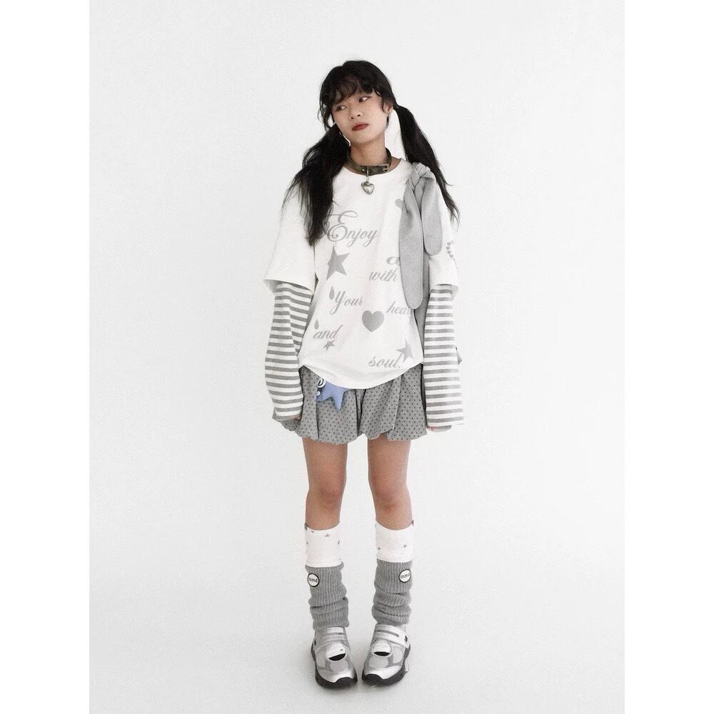 [Innomoood] Love Stars Fake Two-Piece Striped Top