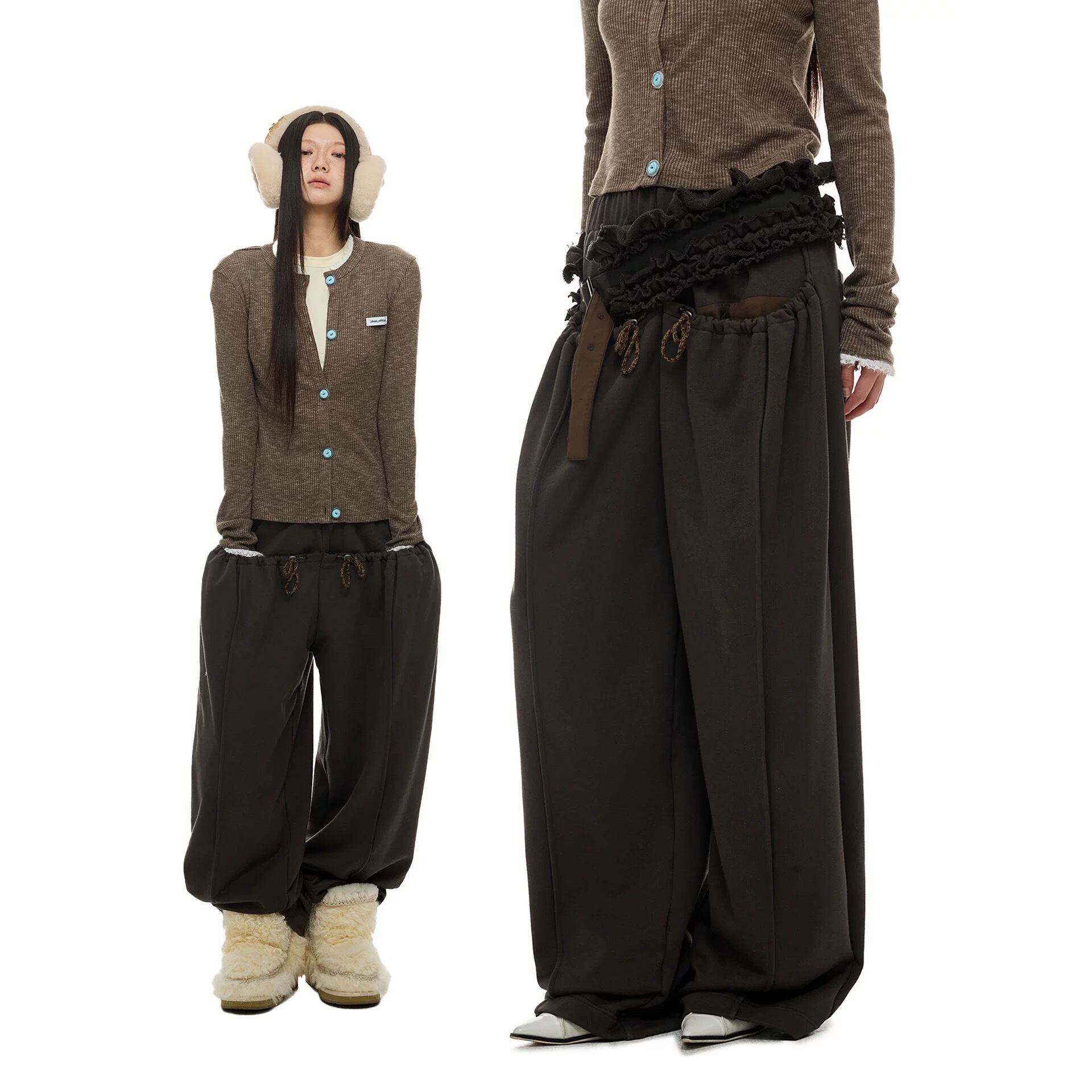 [JIKOO] Multi-layered Curtain Wide Leg Pants