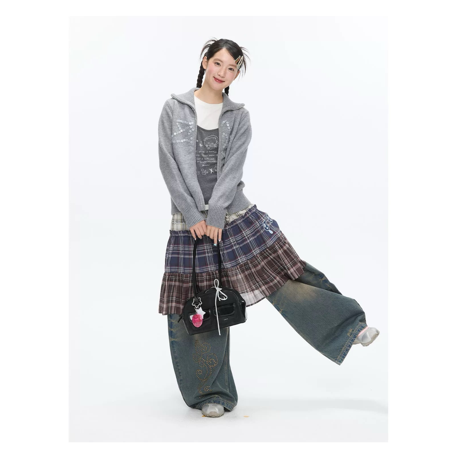 [BETWEENAND] Checkerboard Tiled Retro Skirt