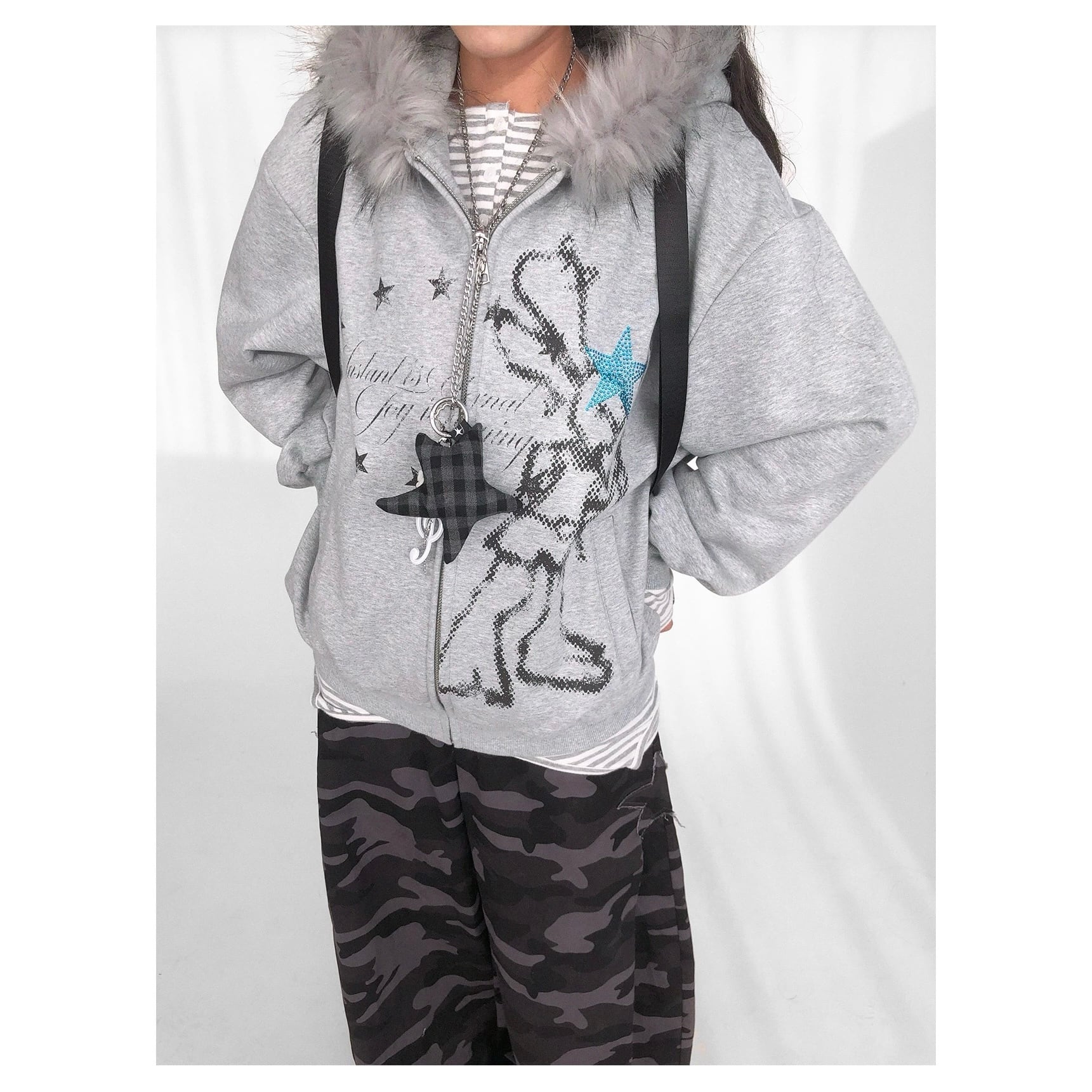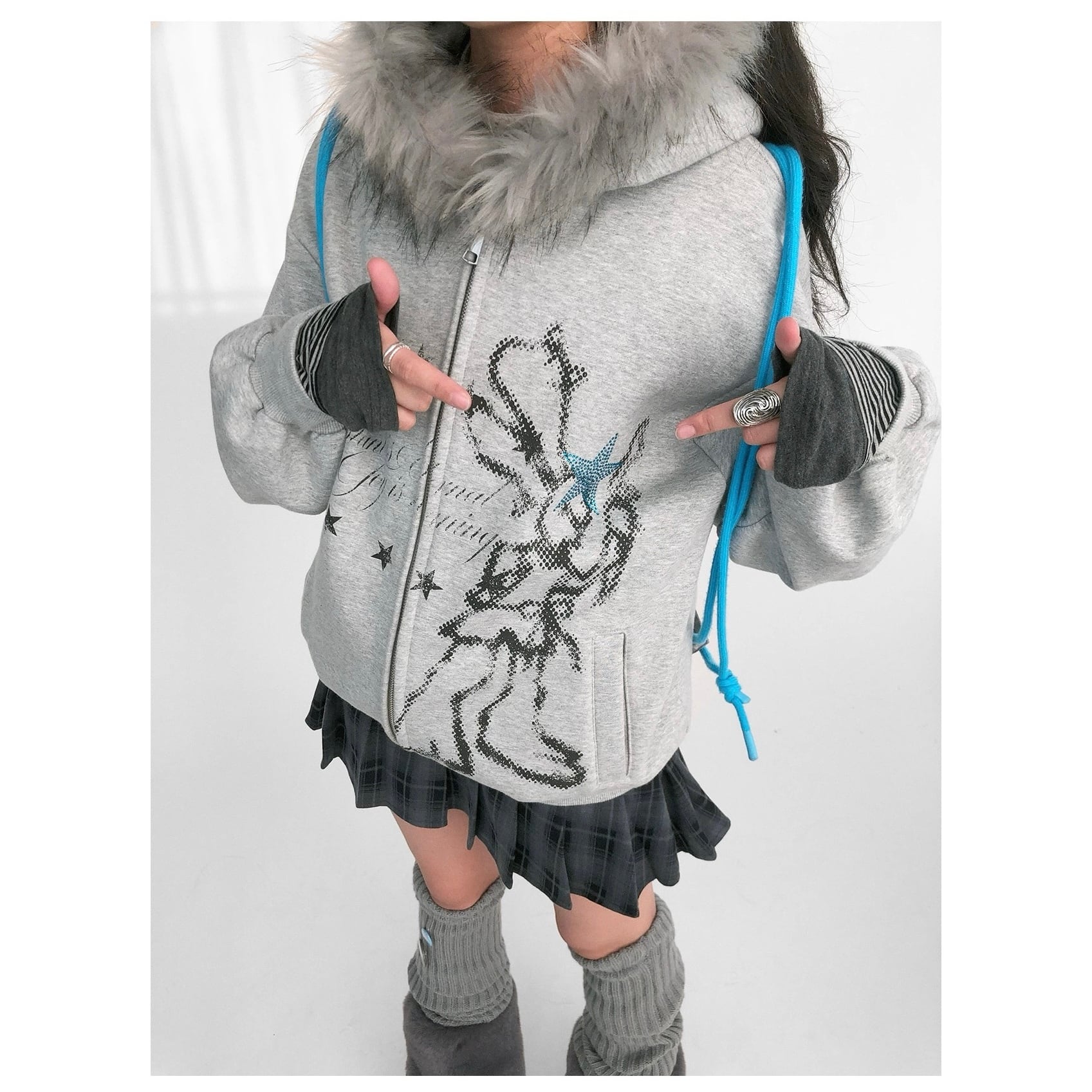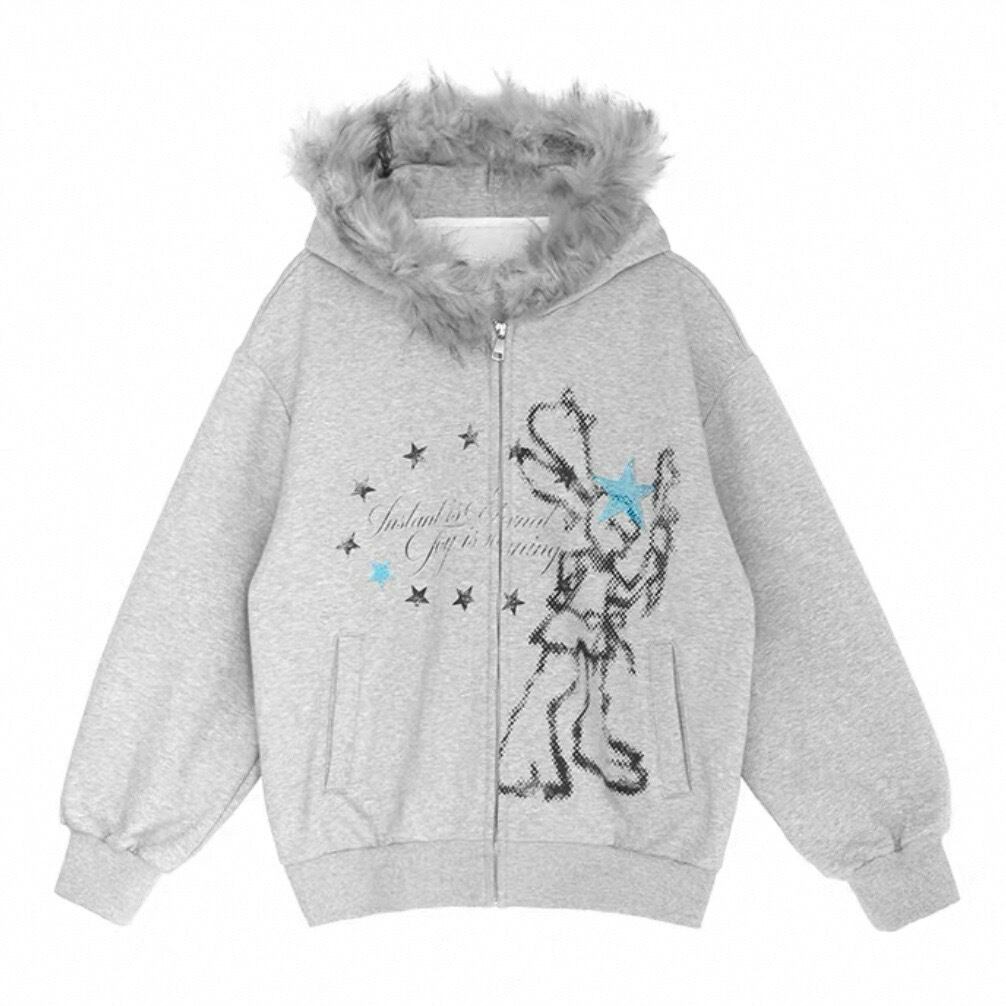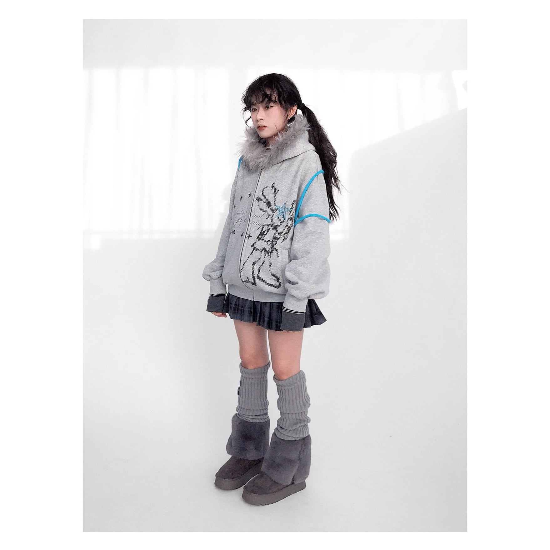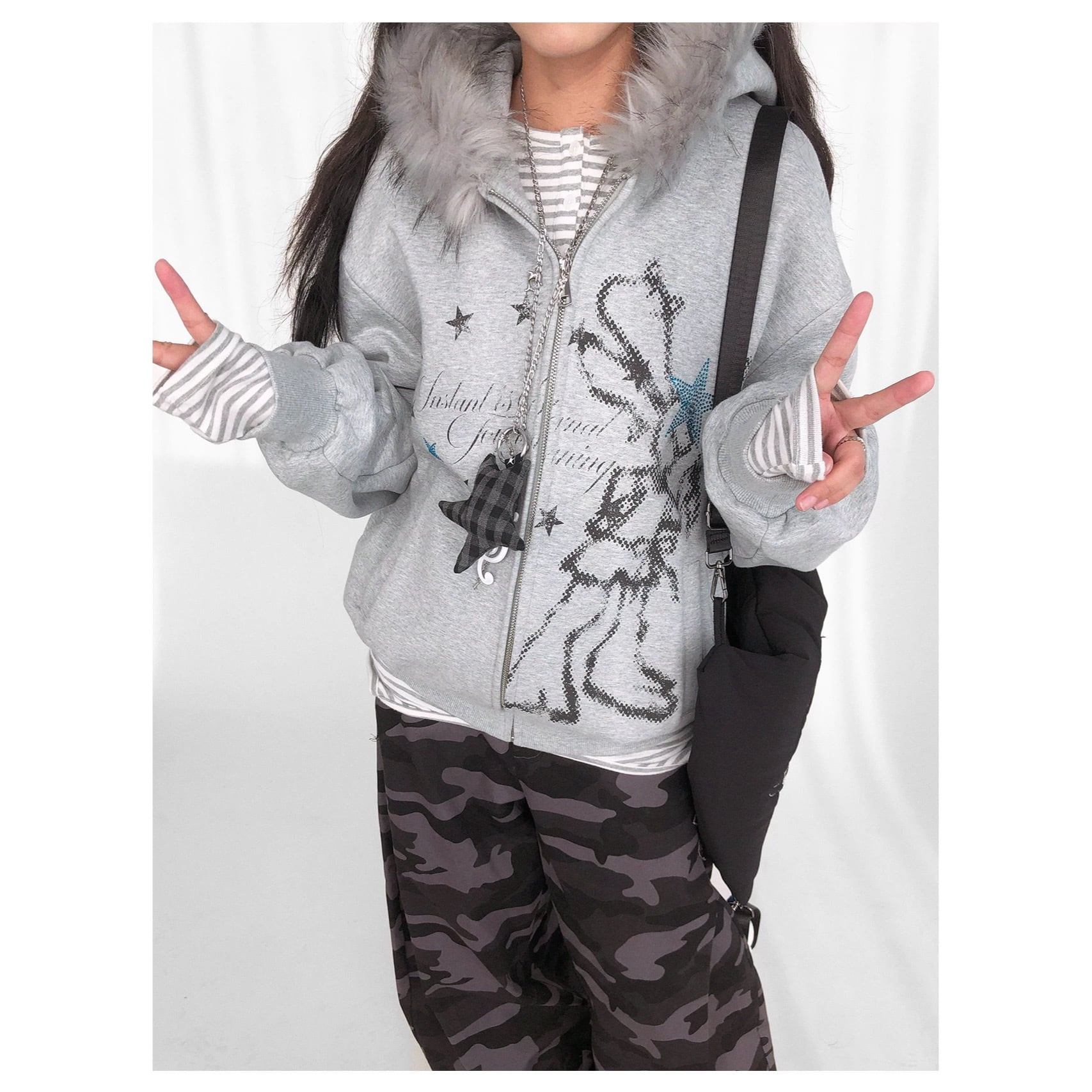 [innomoood] Pixel Drumming Rabbit Hooded Coat