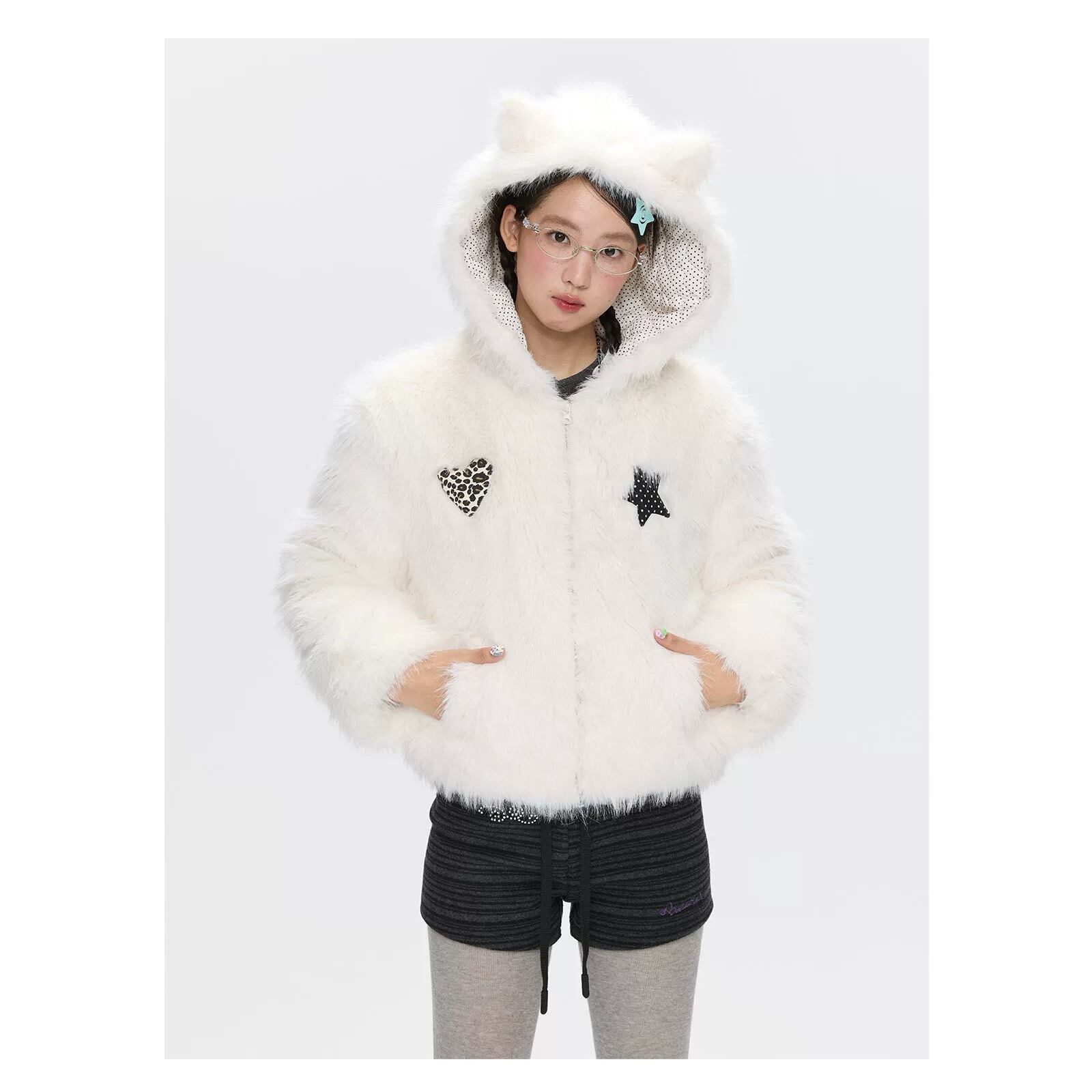 [BETWEENAND] Double-Sided Fleece Cat Ears Jacket