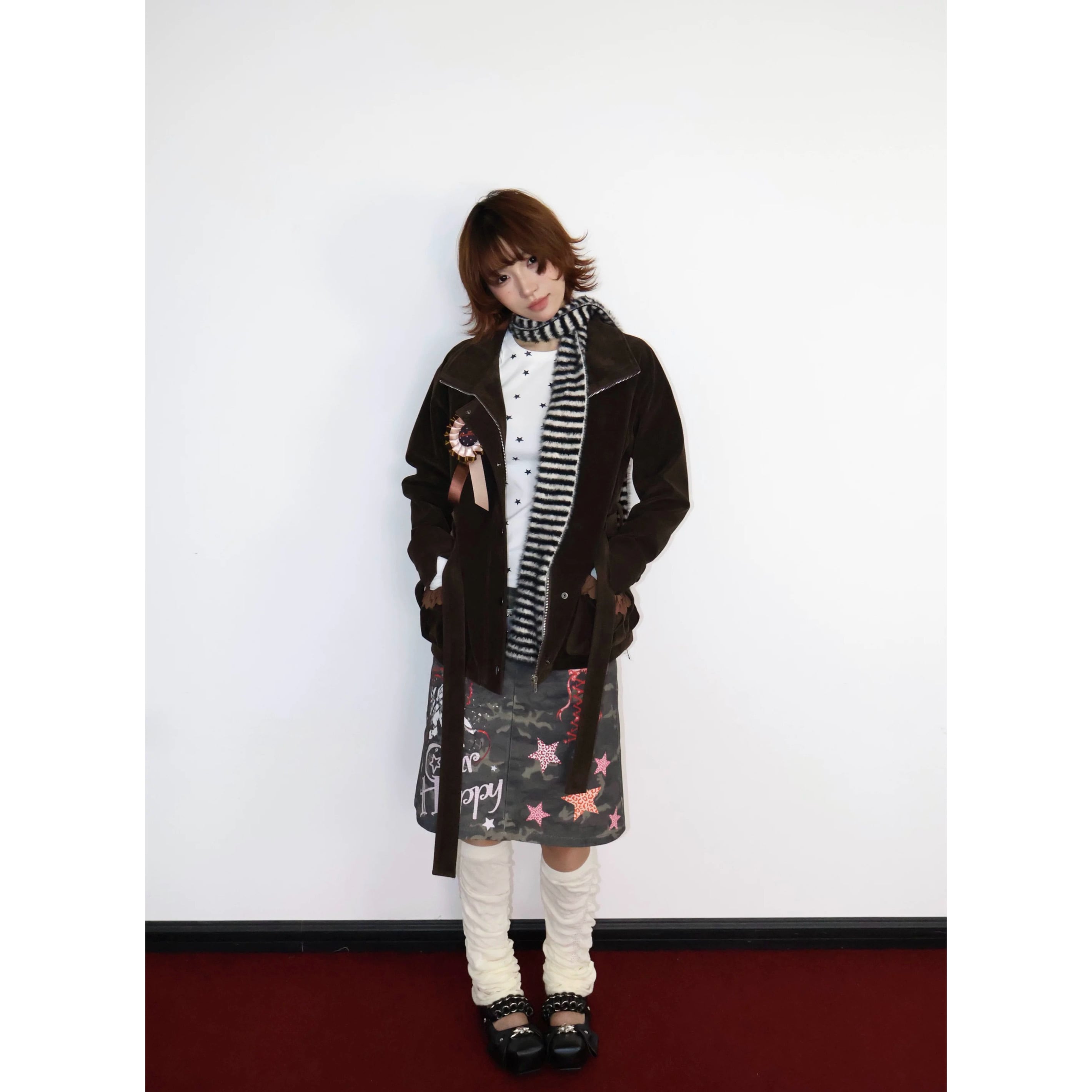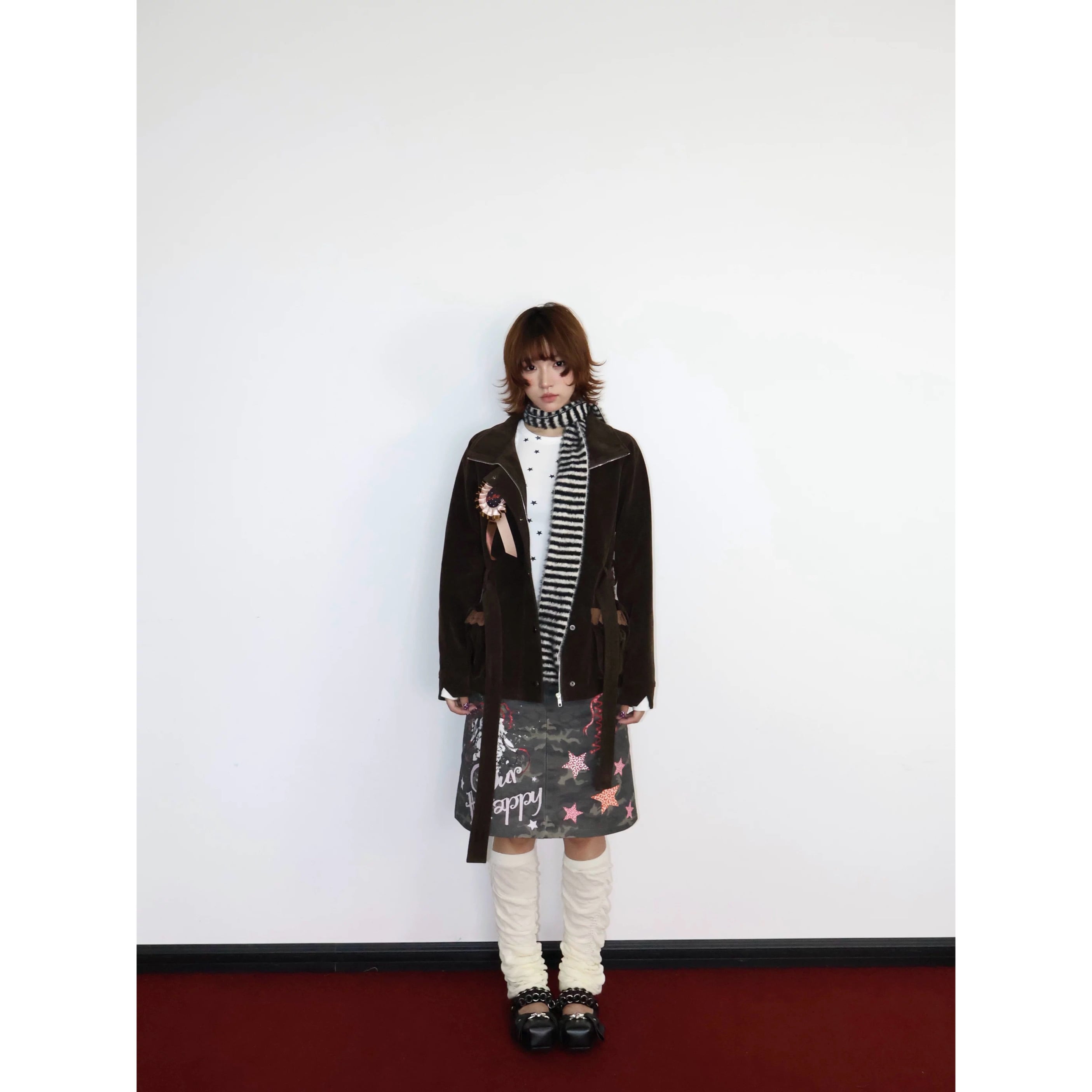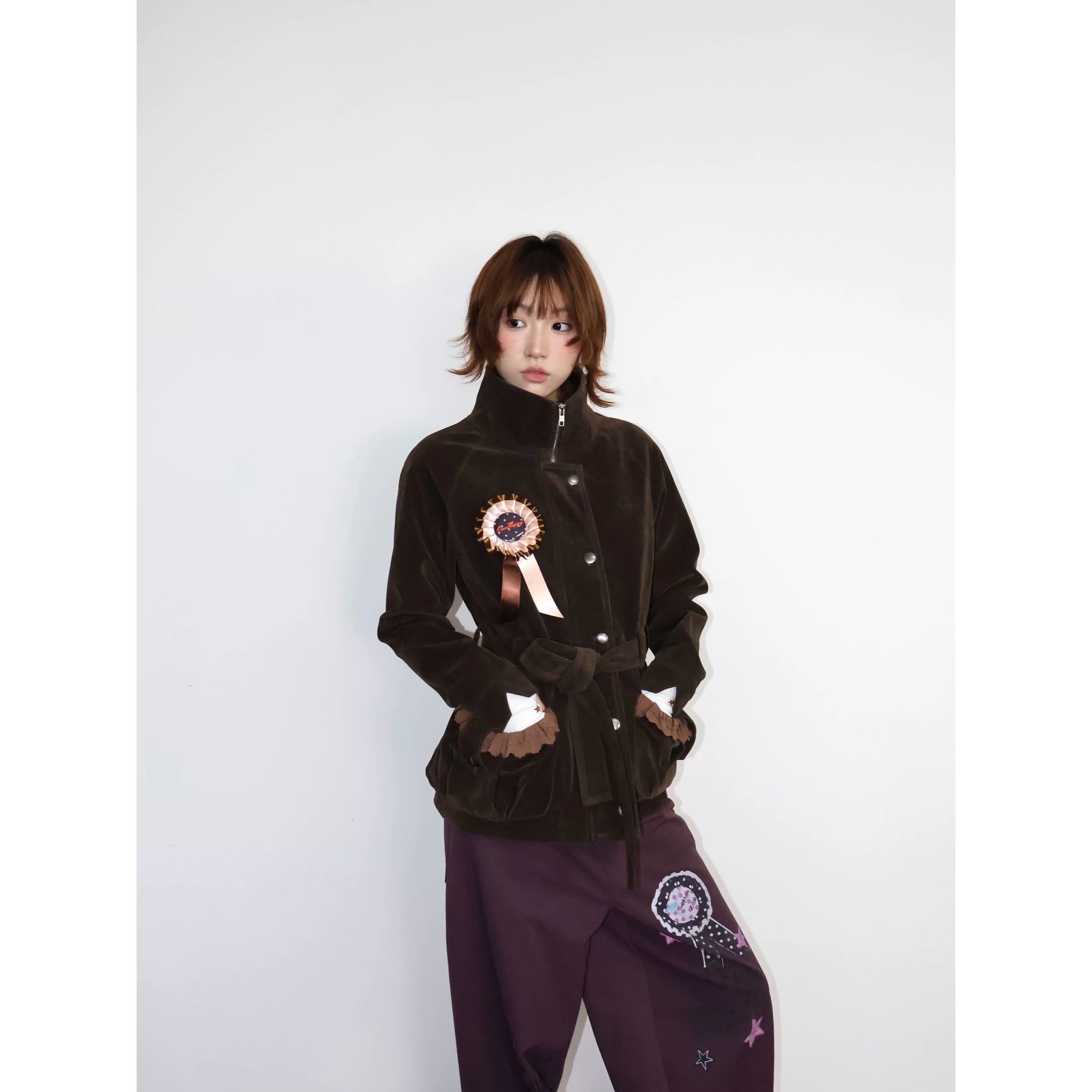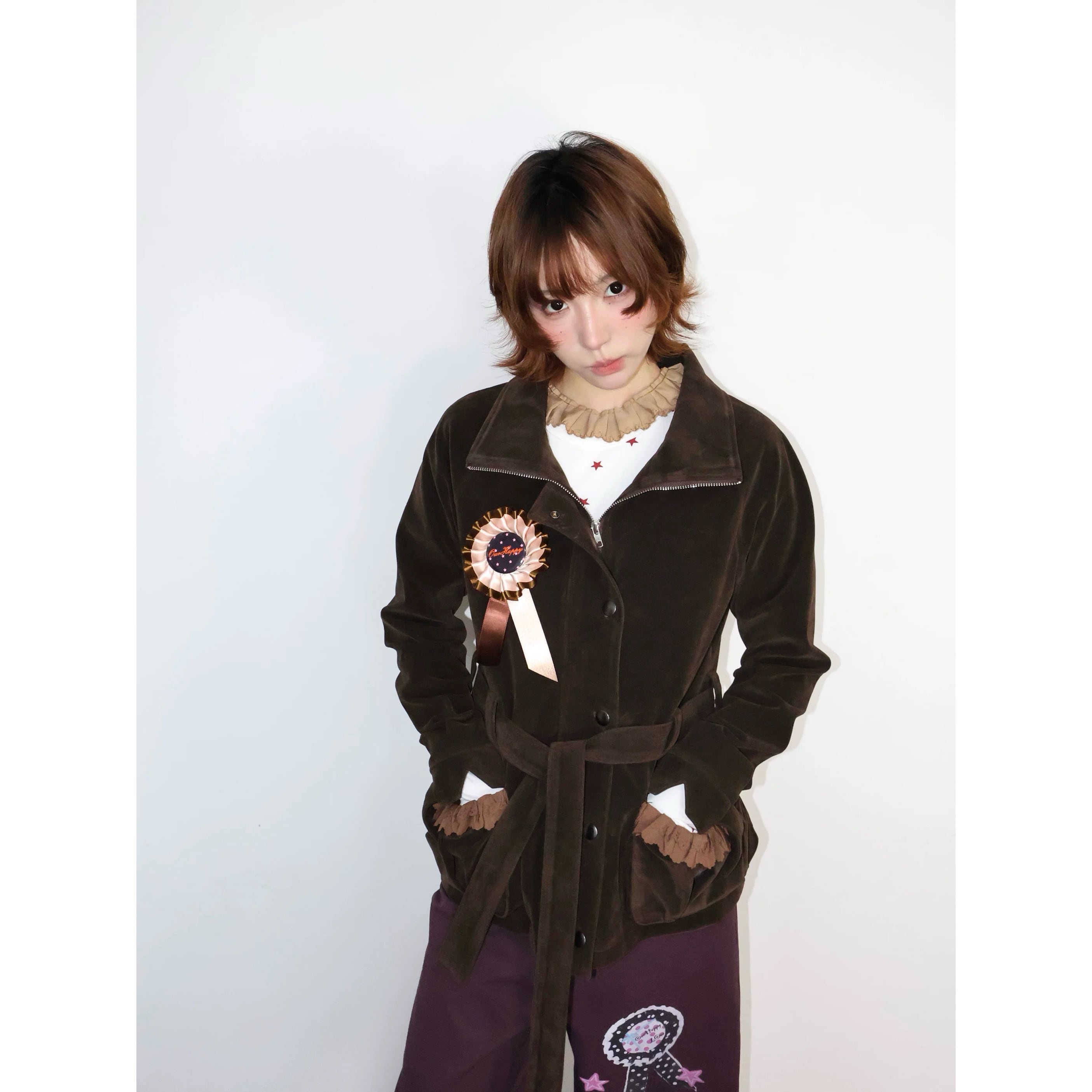 [OurHappy] Vintage Badge Suede Waistband Jacket