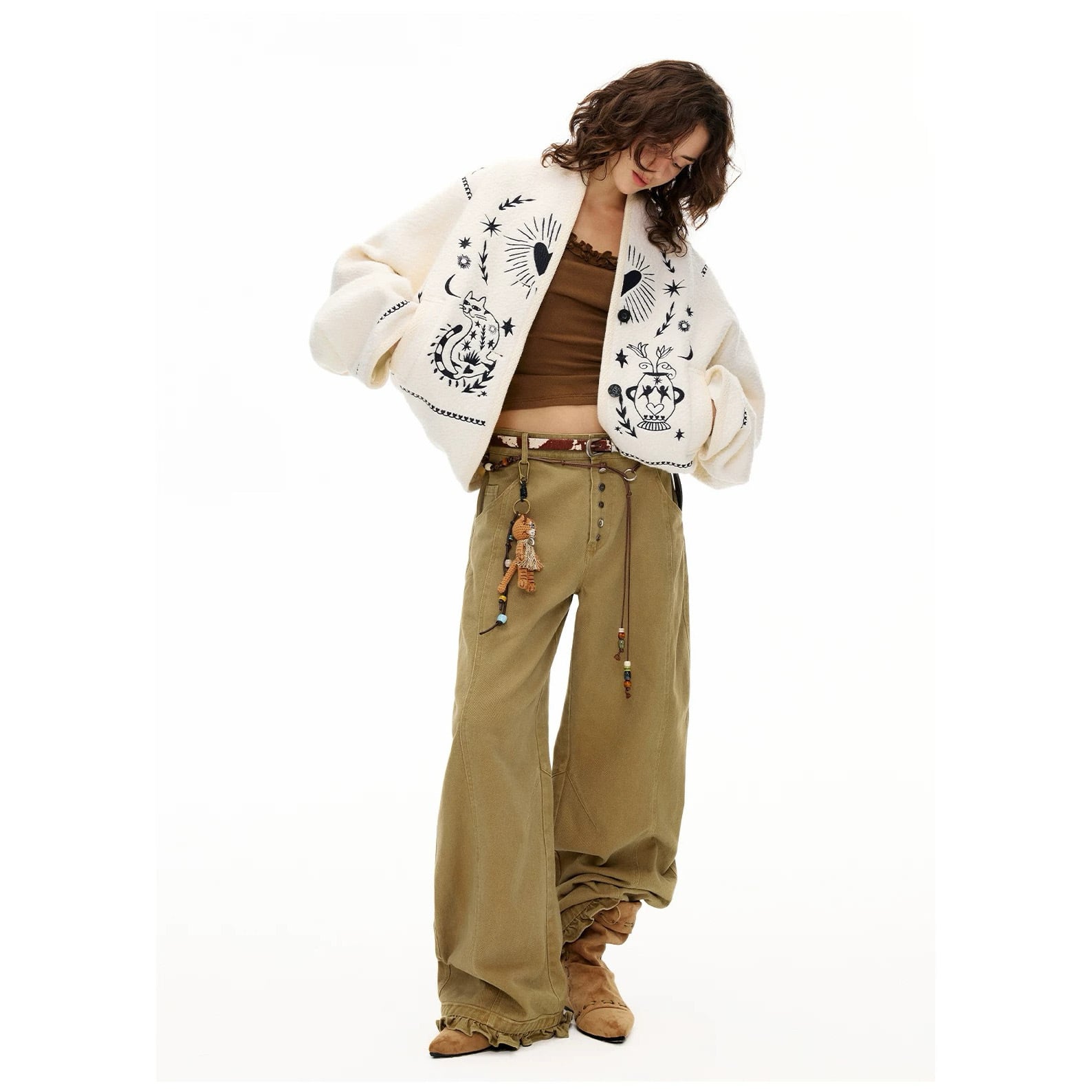 [Outthe Blue] Moonlight Cat embroidered wool jacket