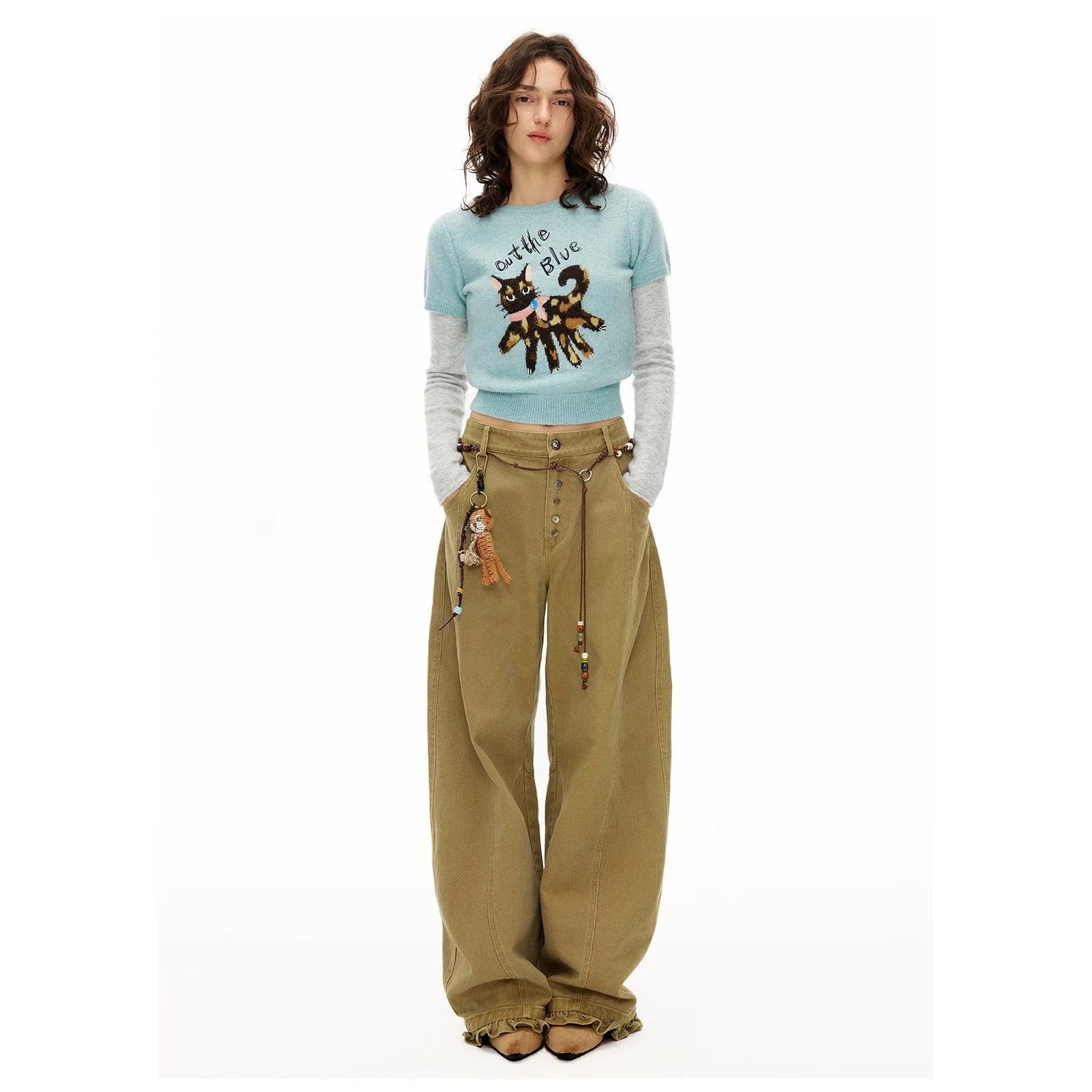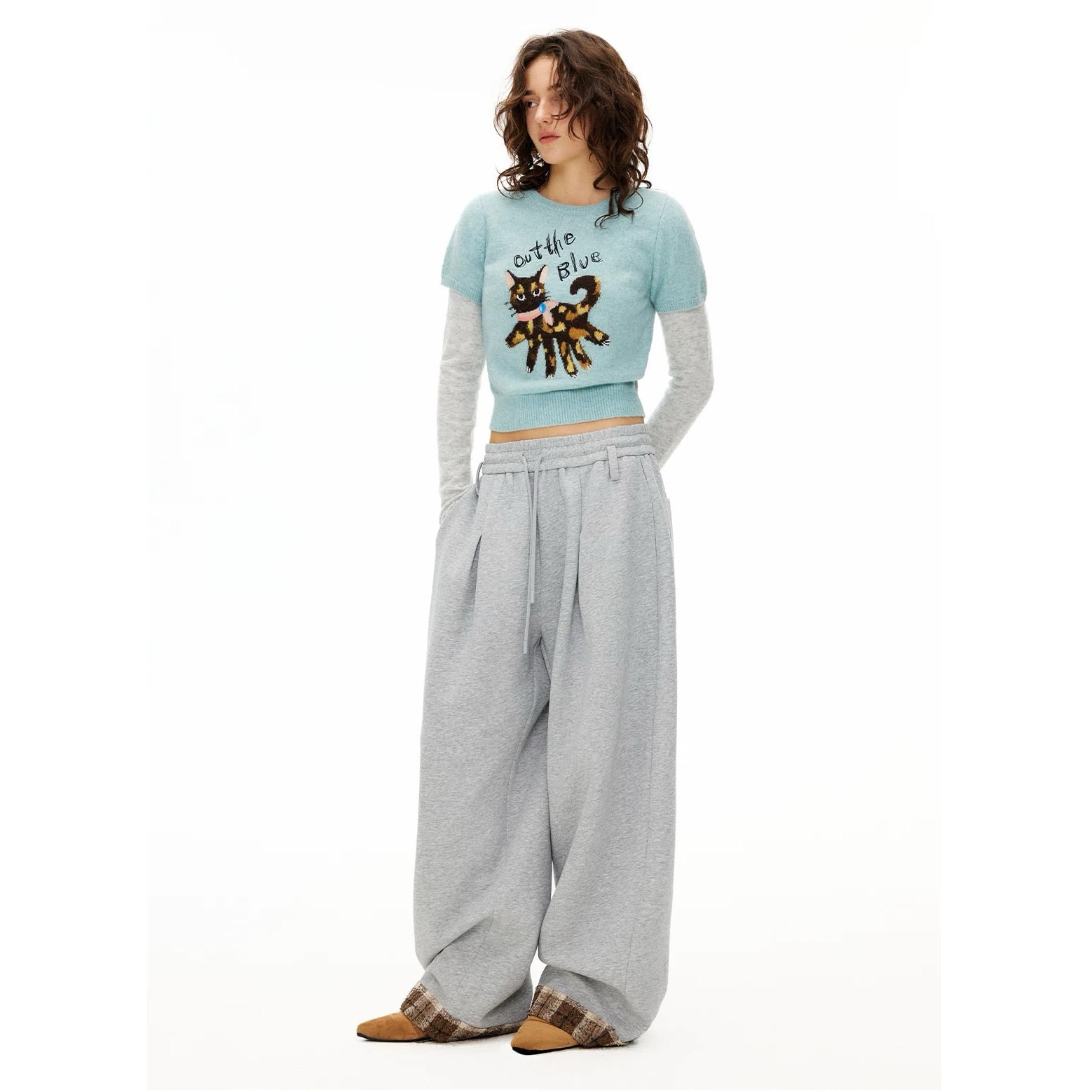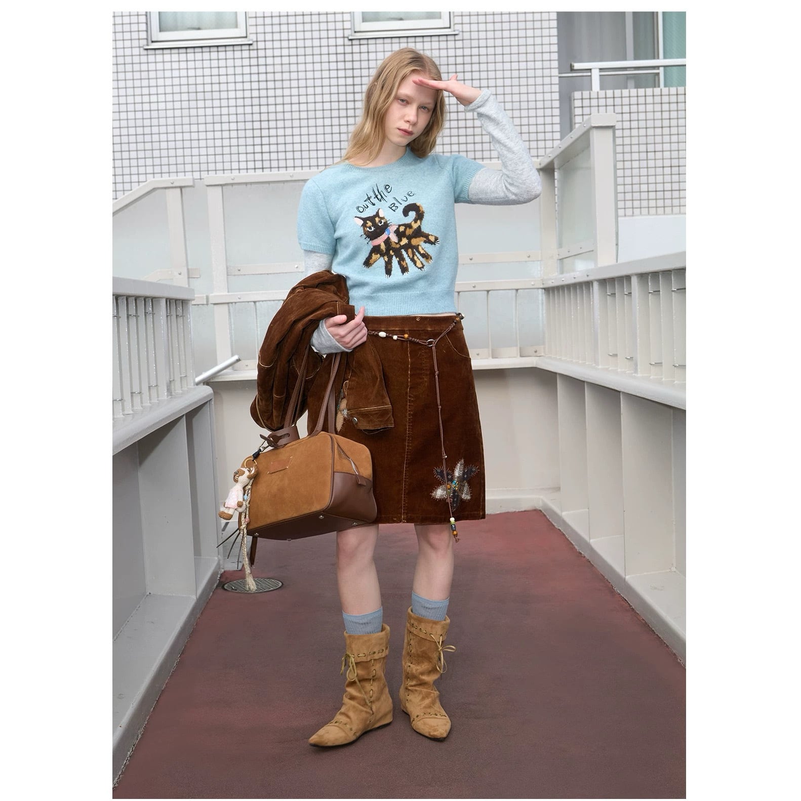 [Outthe Blue] Six-claw Cat Embroidered Fake Two-Piece Top