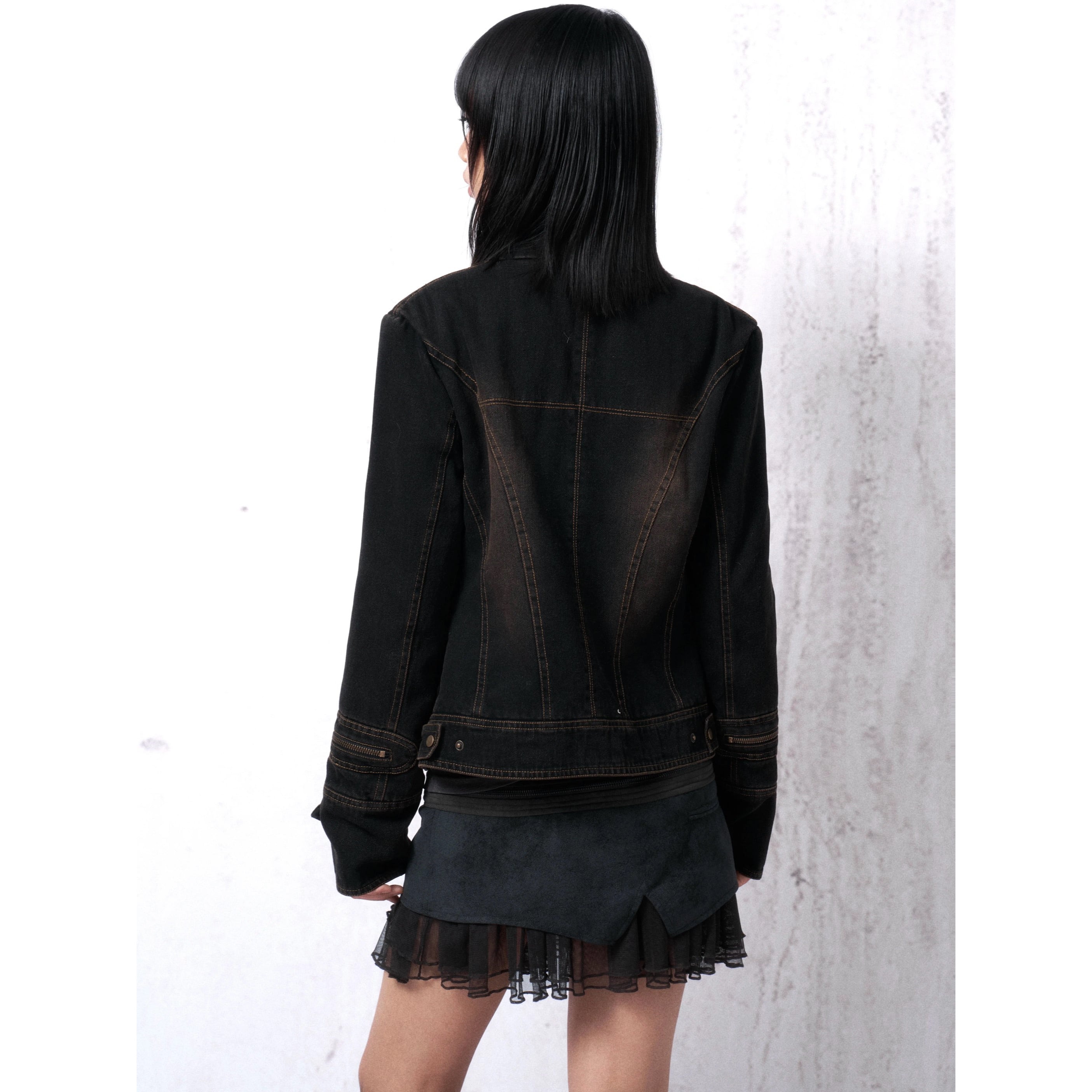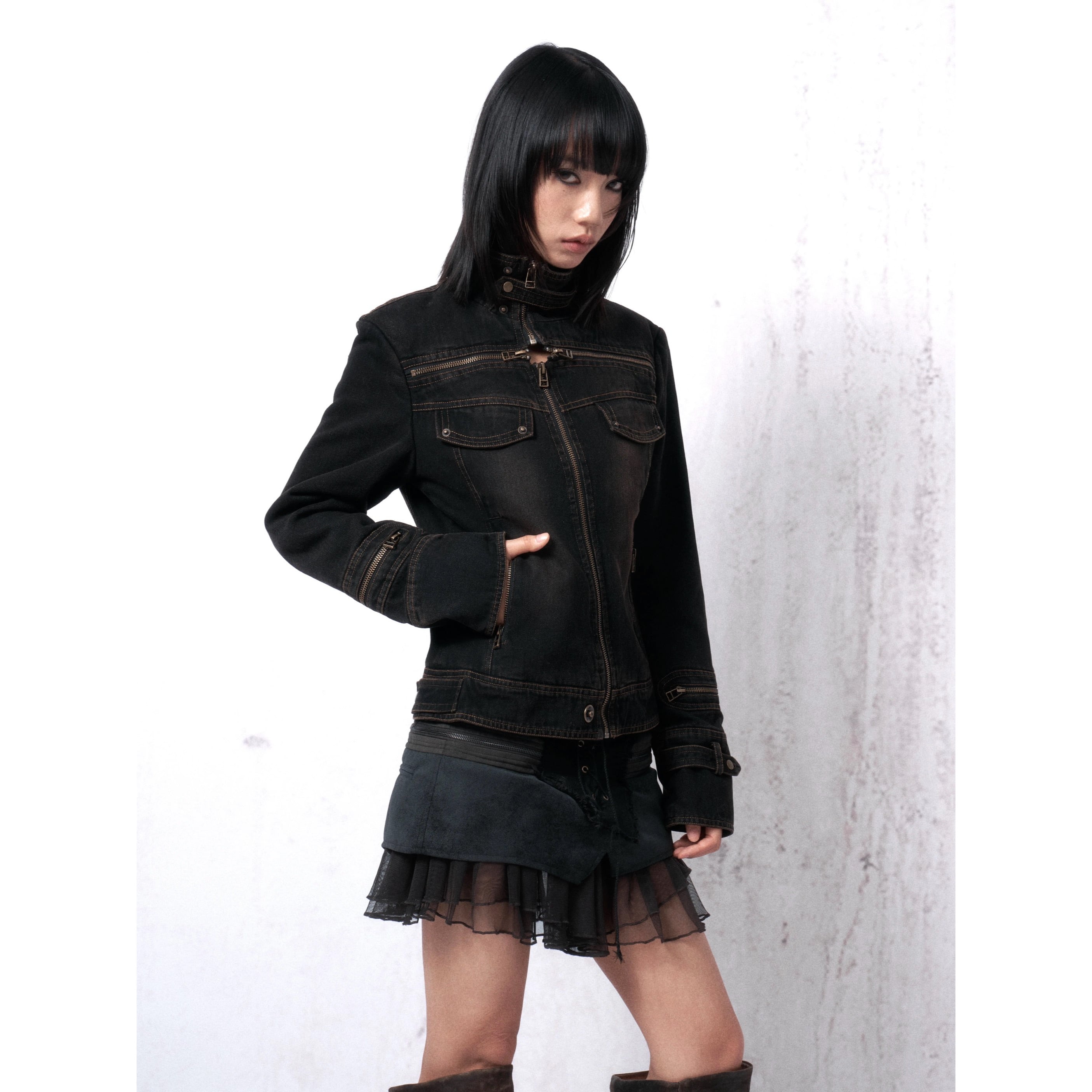 [OPEN AESTHETIC] Cross Zipper Washable Old Denim Jacket