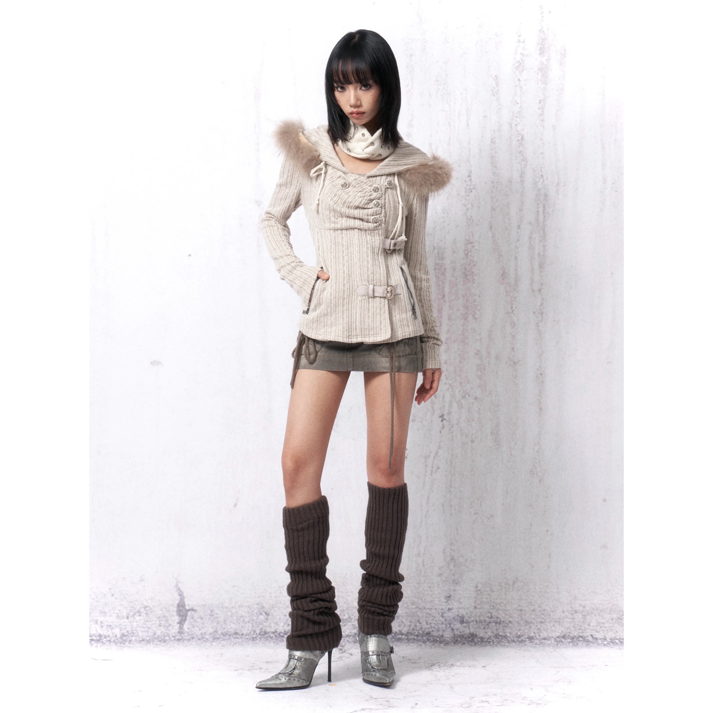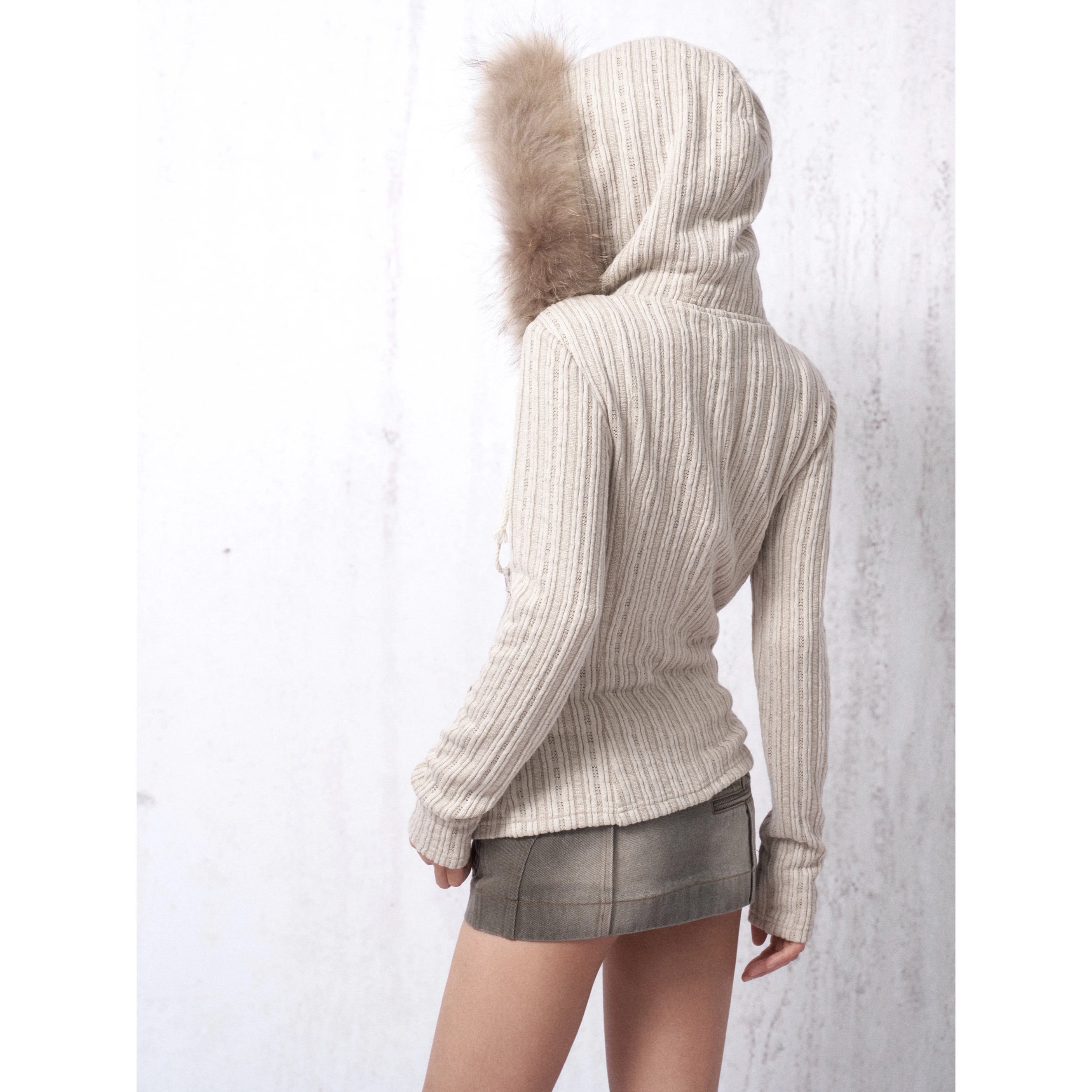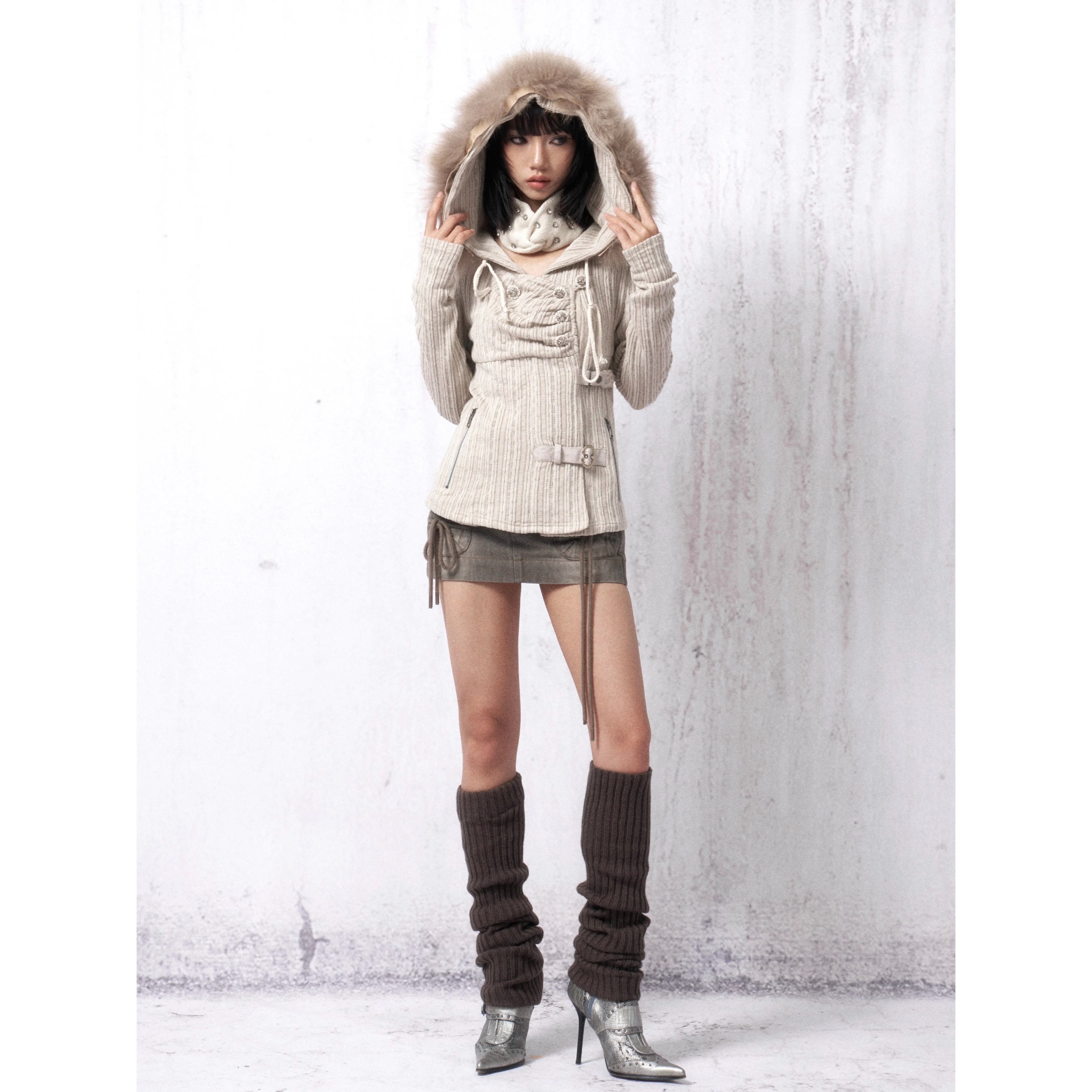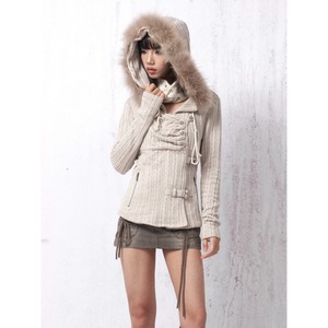 [OPEN AESTHETIC] Fleece Collar Hooded Knit Top
