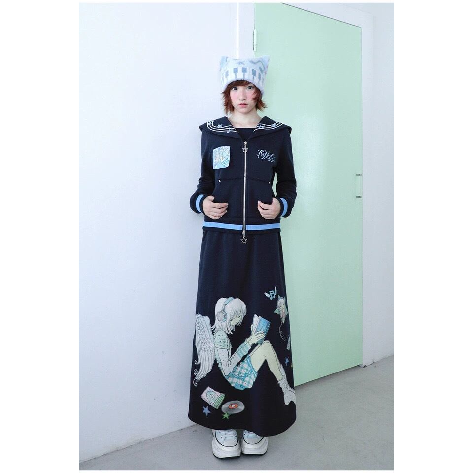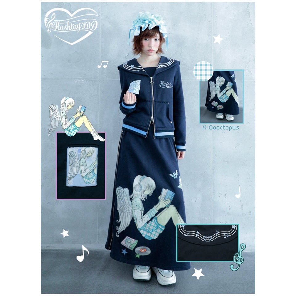 [Hashtag DDD] Ancient Blue Angel Double-Sided Zip Skirt