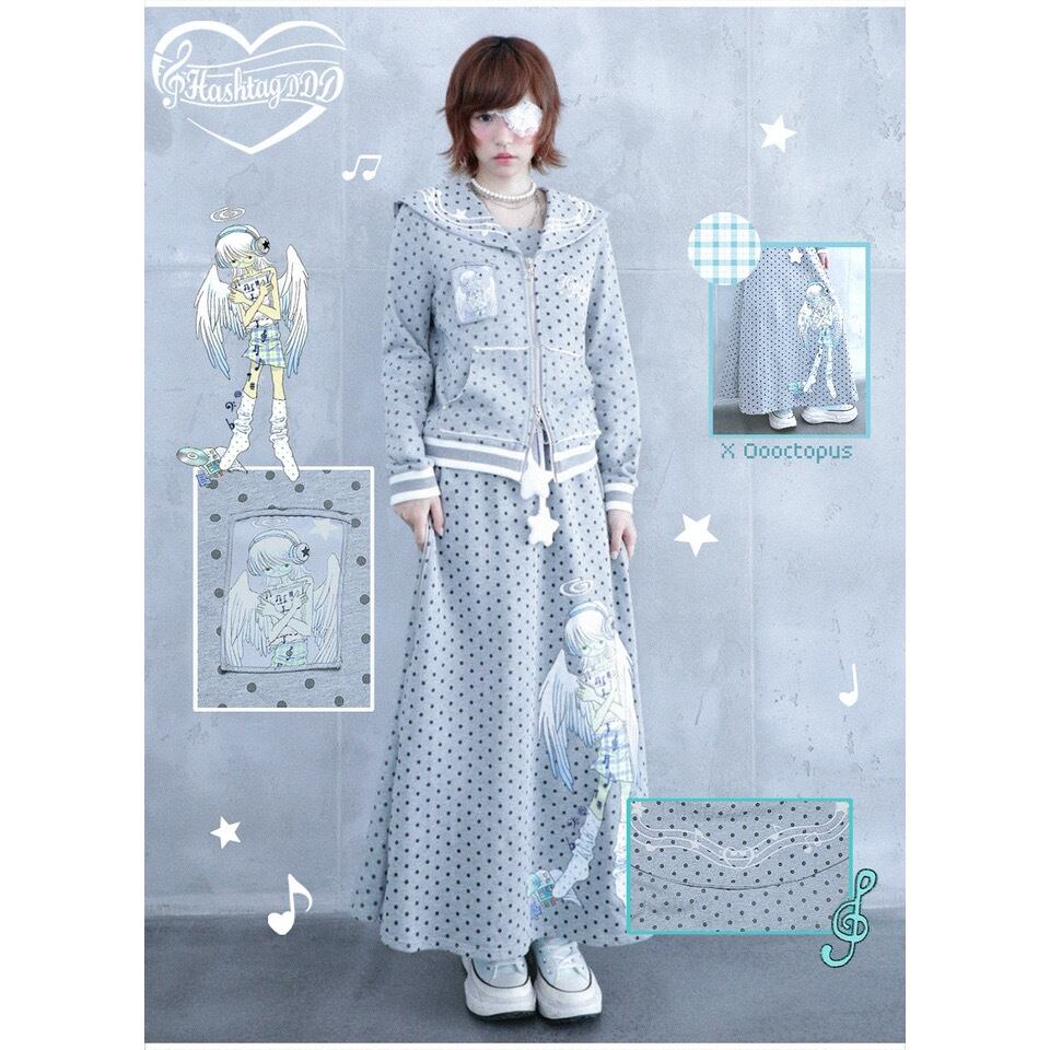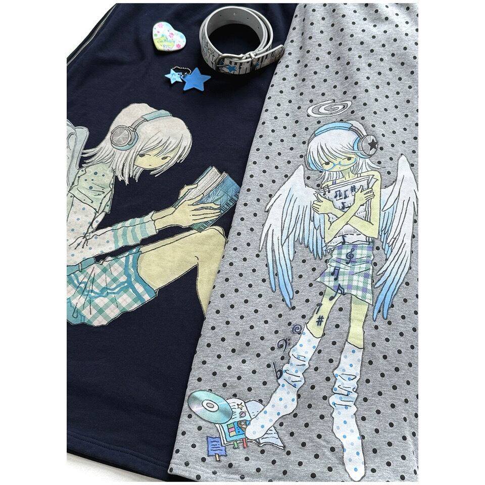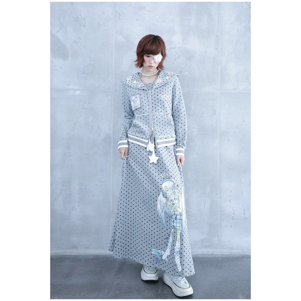 [Hashtag DDD] Ancient Gray Angel Double-Sided Zip Skirt