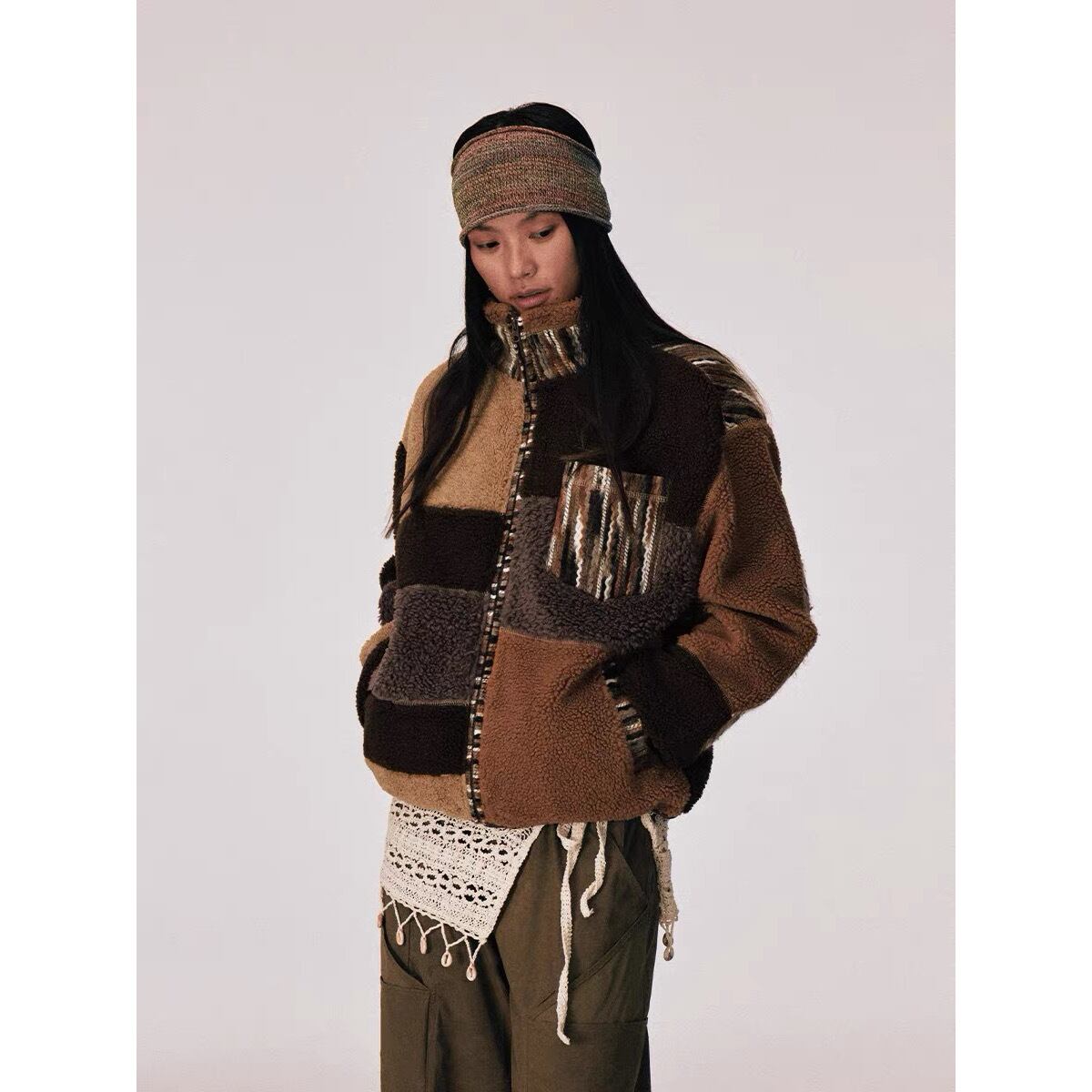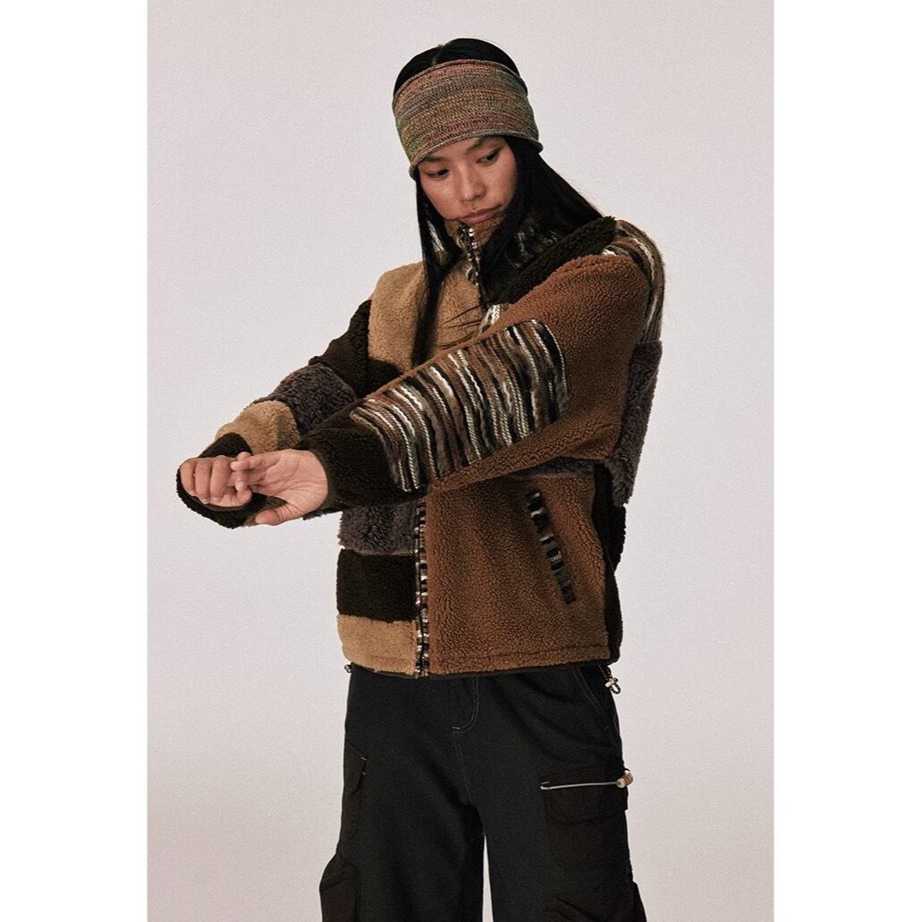 [CONP] Stitched Striped Lamb Wool Jacket