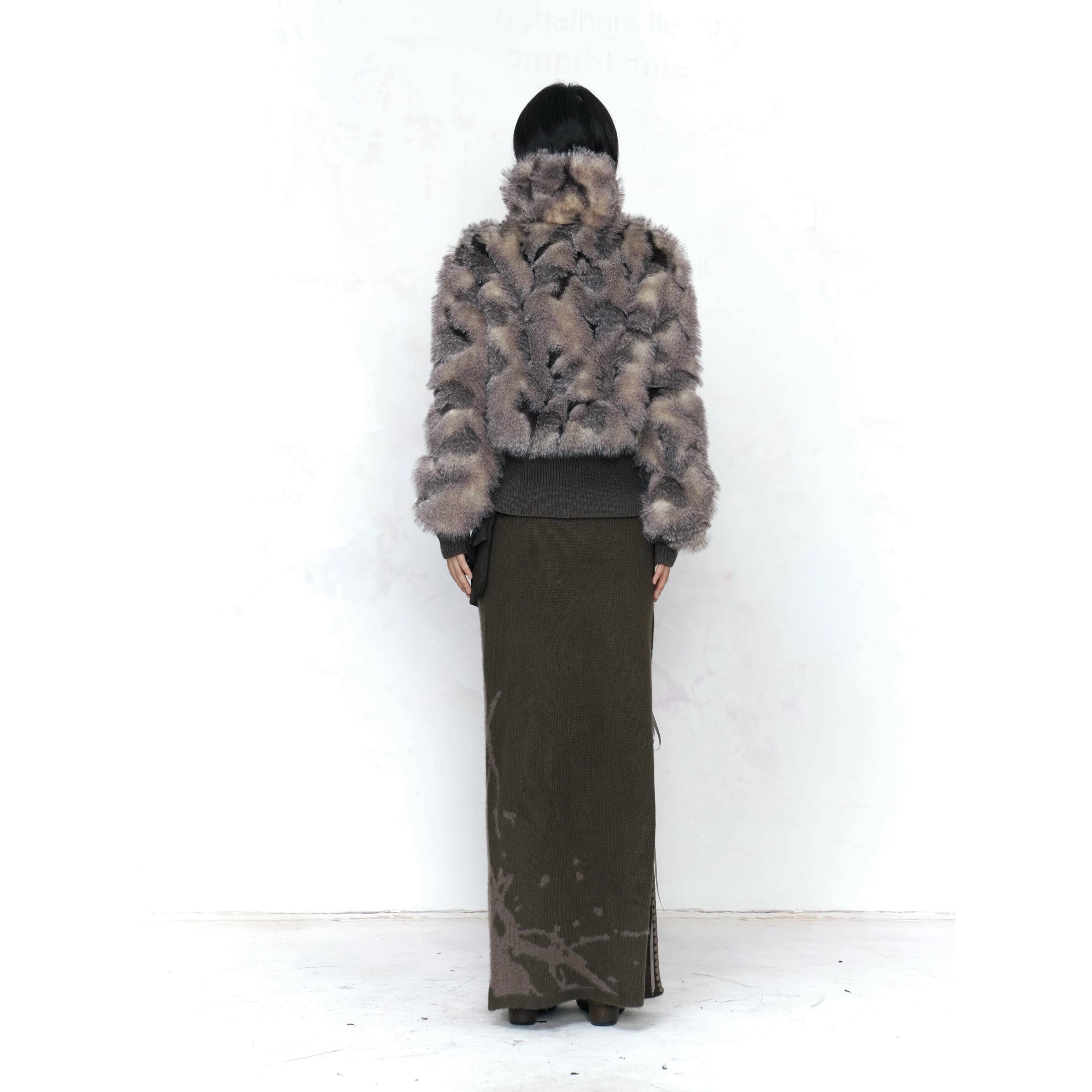 [Flowers birds market] Gray-Violet Knit Suede Jacket