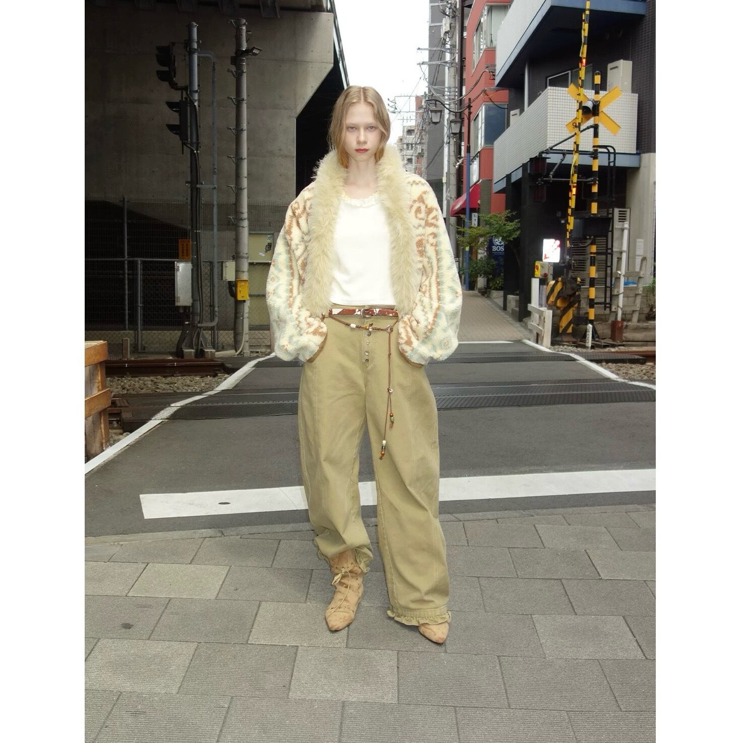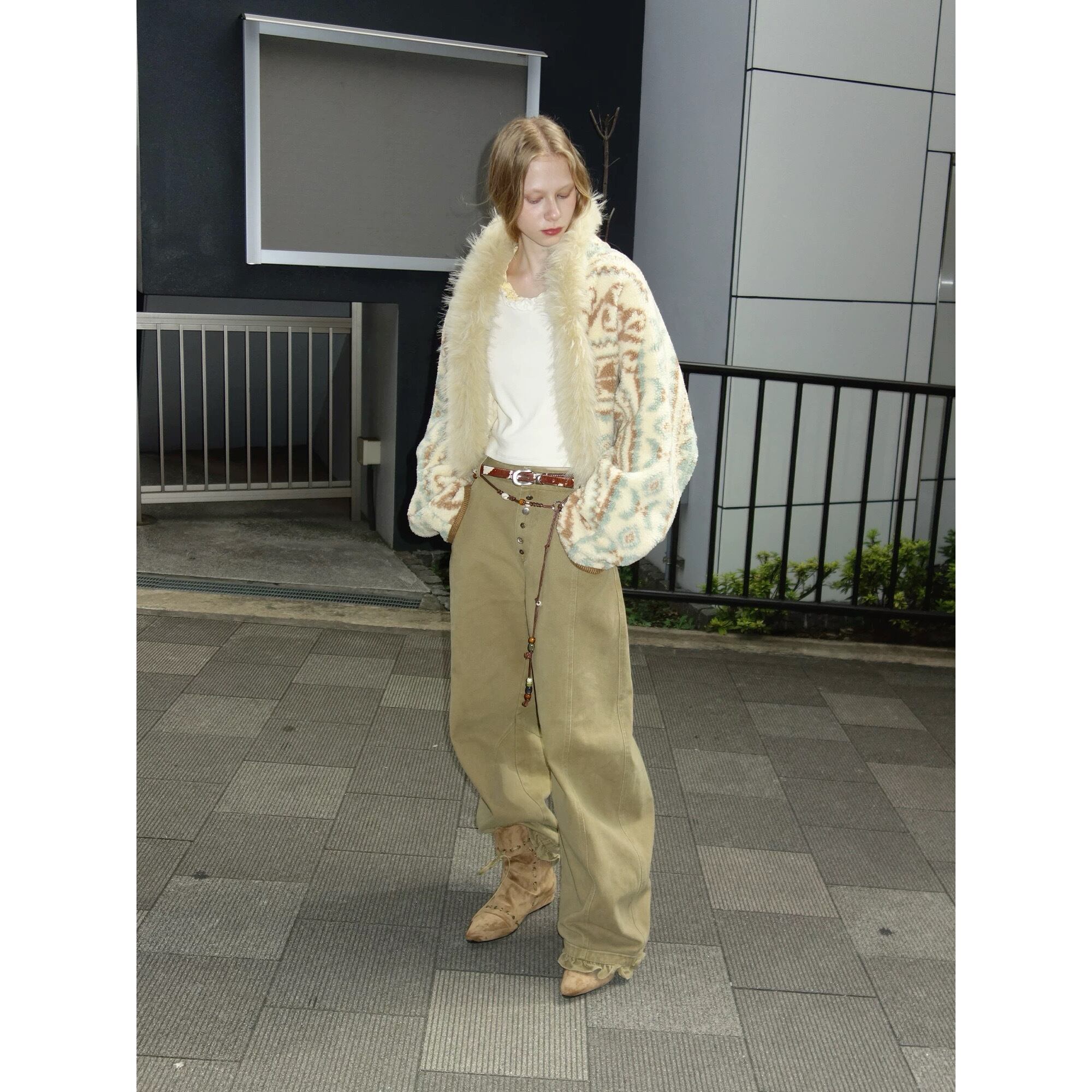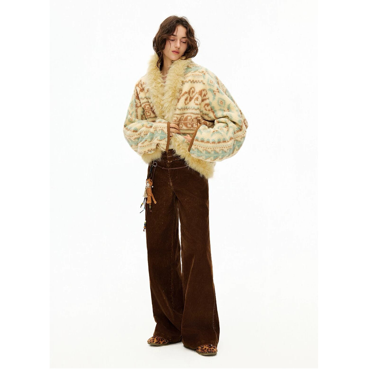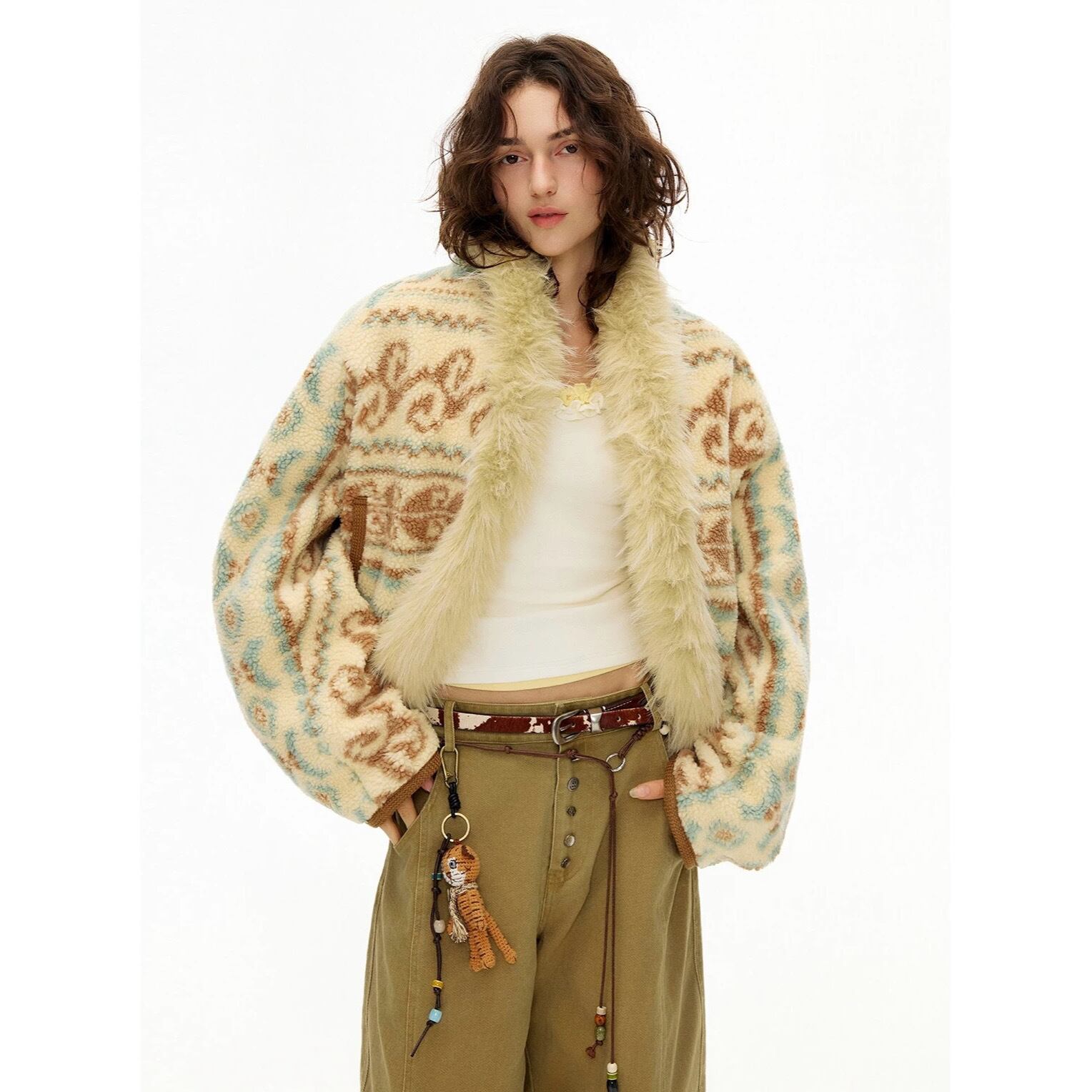 [Outthe Blue] Beige Brown Lamb Fur Collar Jacket
