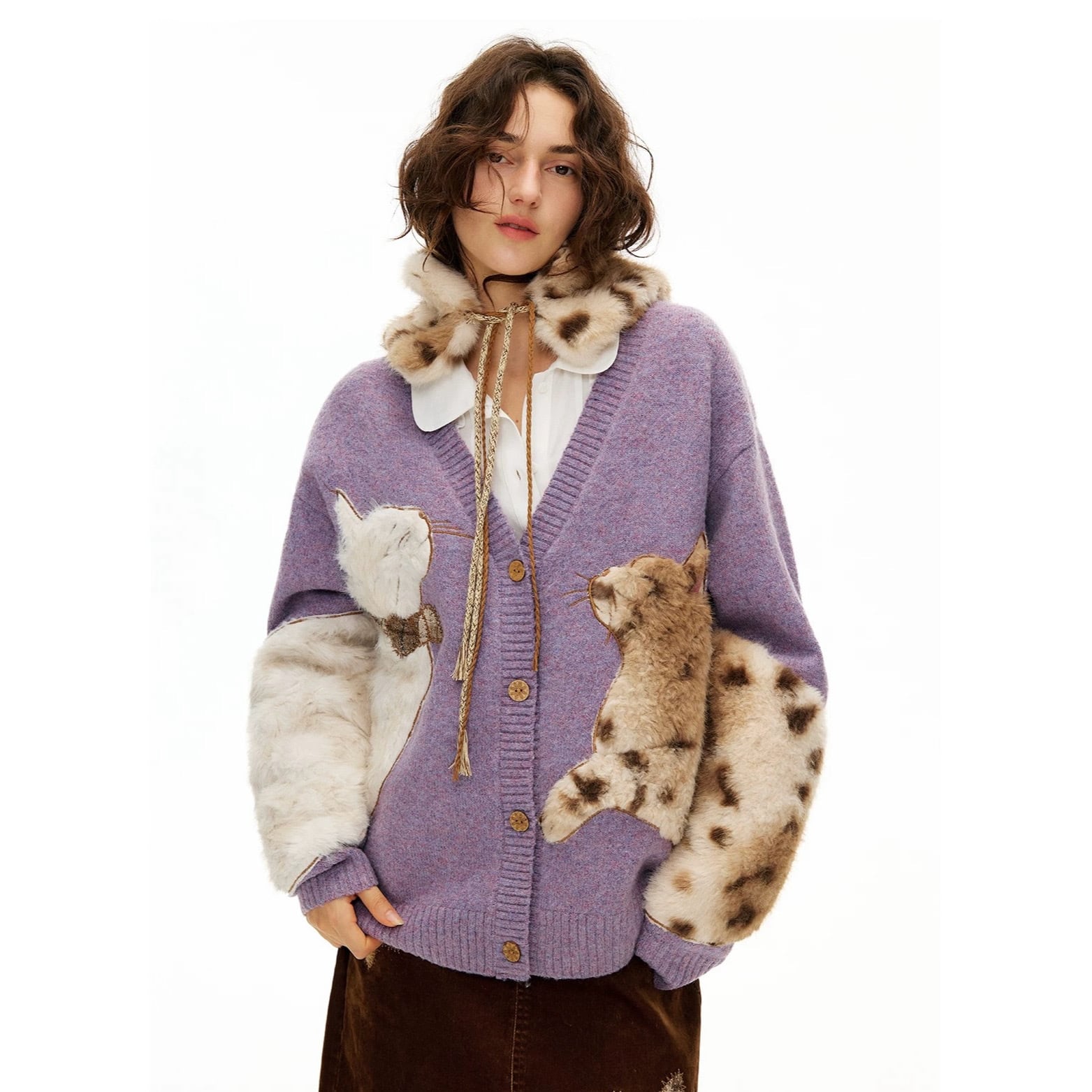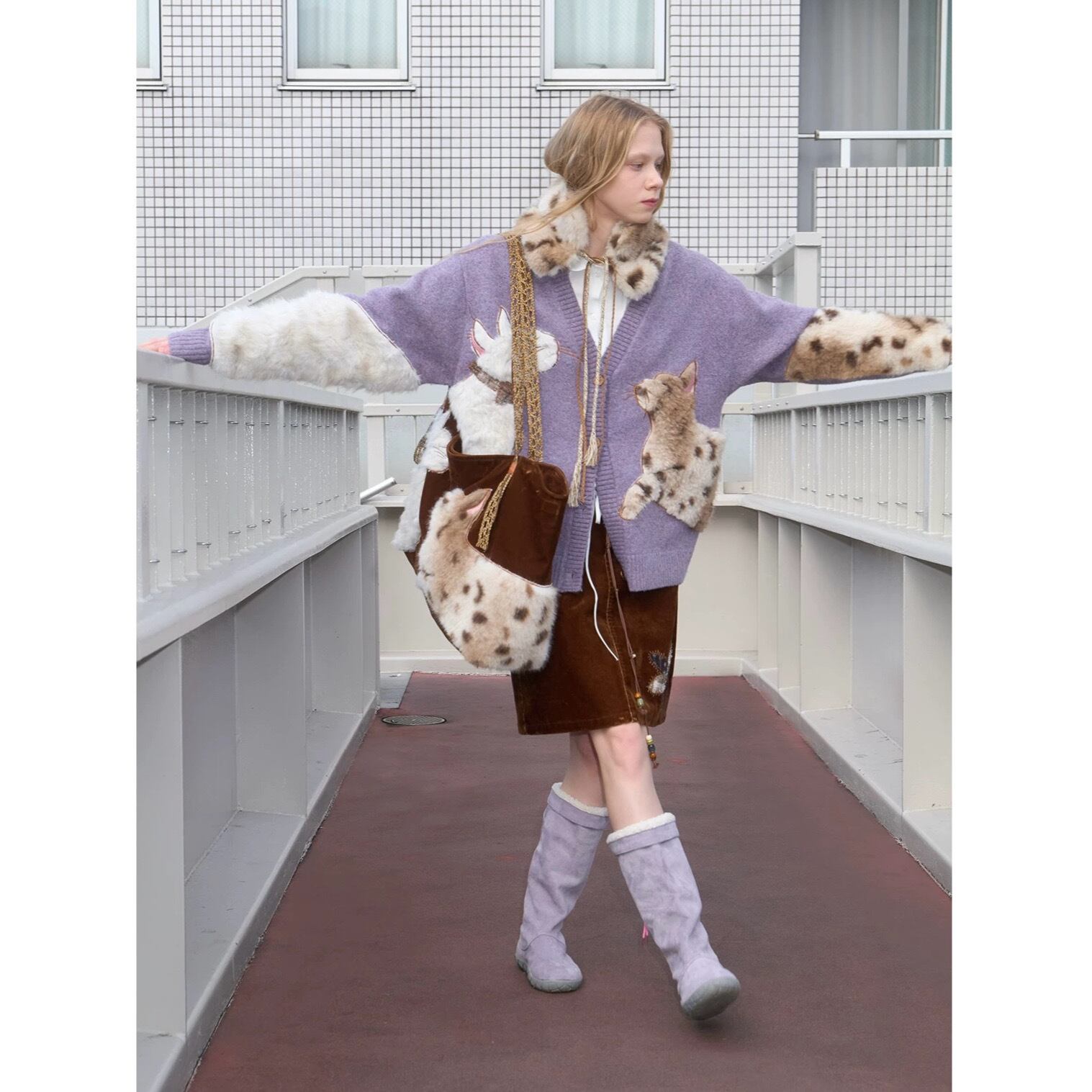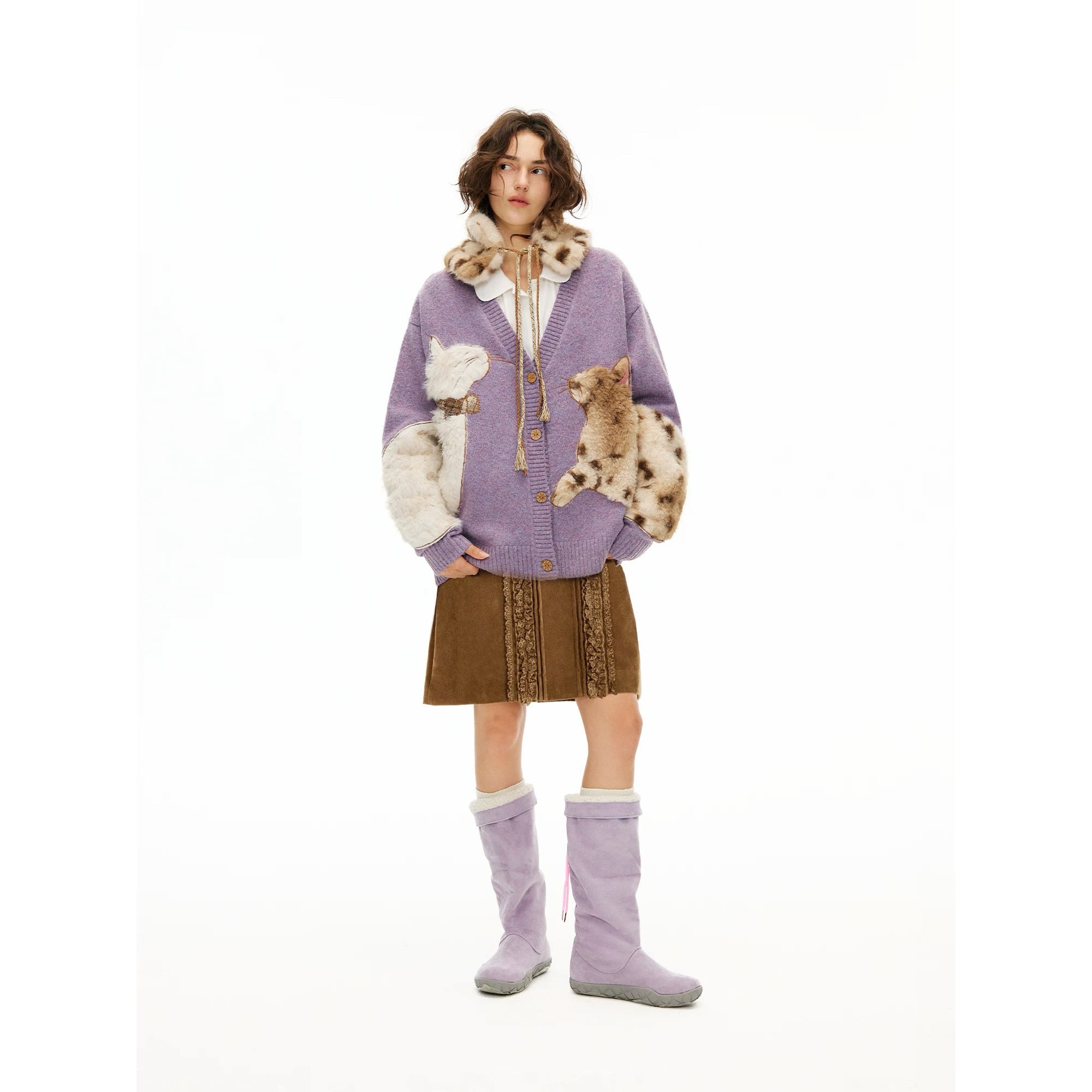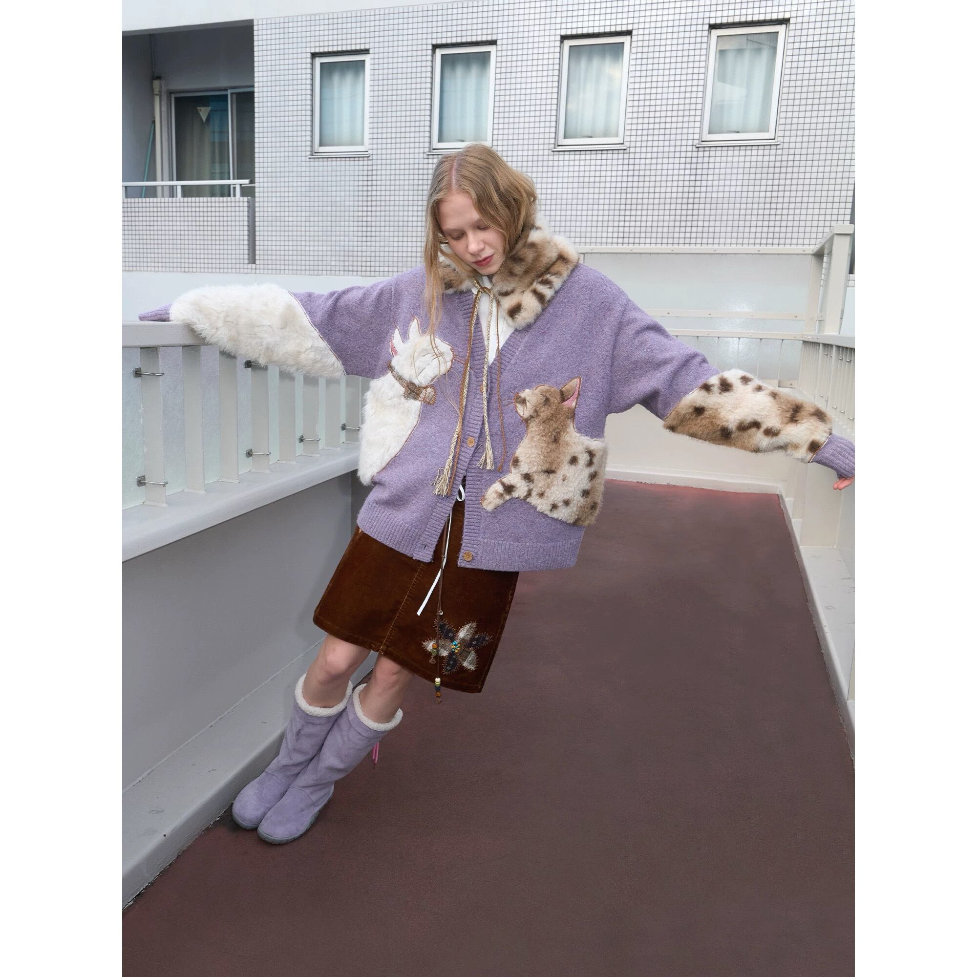 [Outthe Blue] Velvet Cat Purple Knit Cardigan