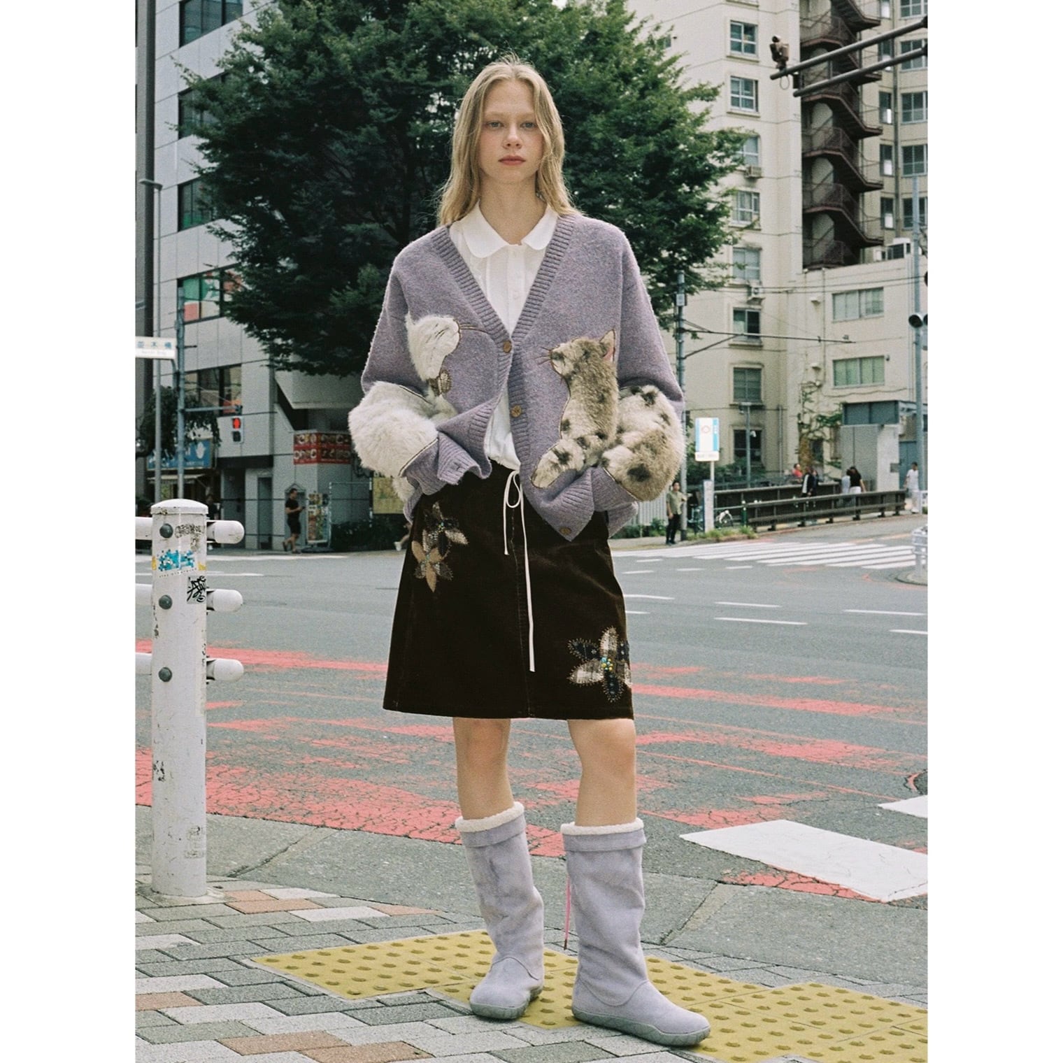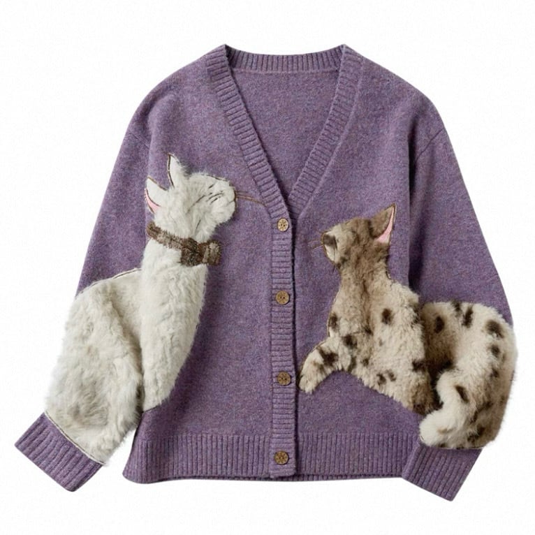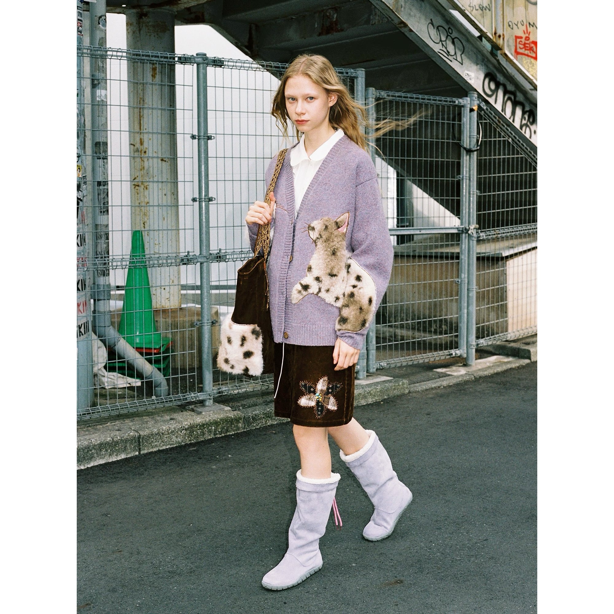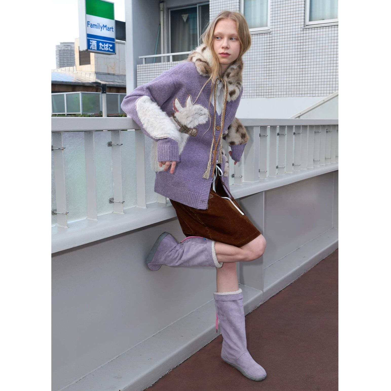 [Outthe Blue] Velvet Cat Purple Knit Cardigan