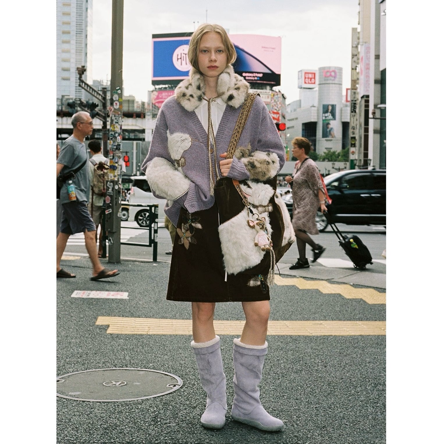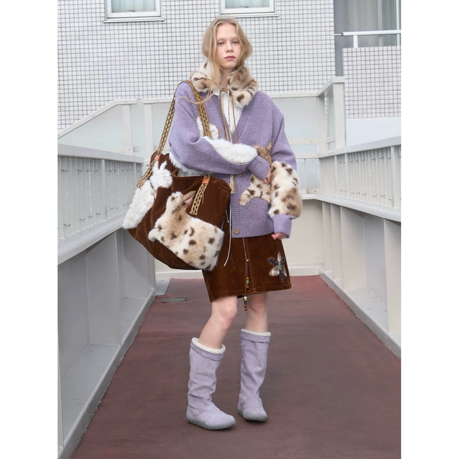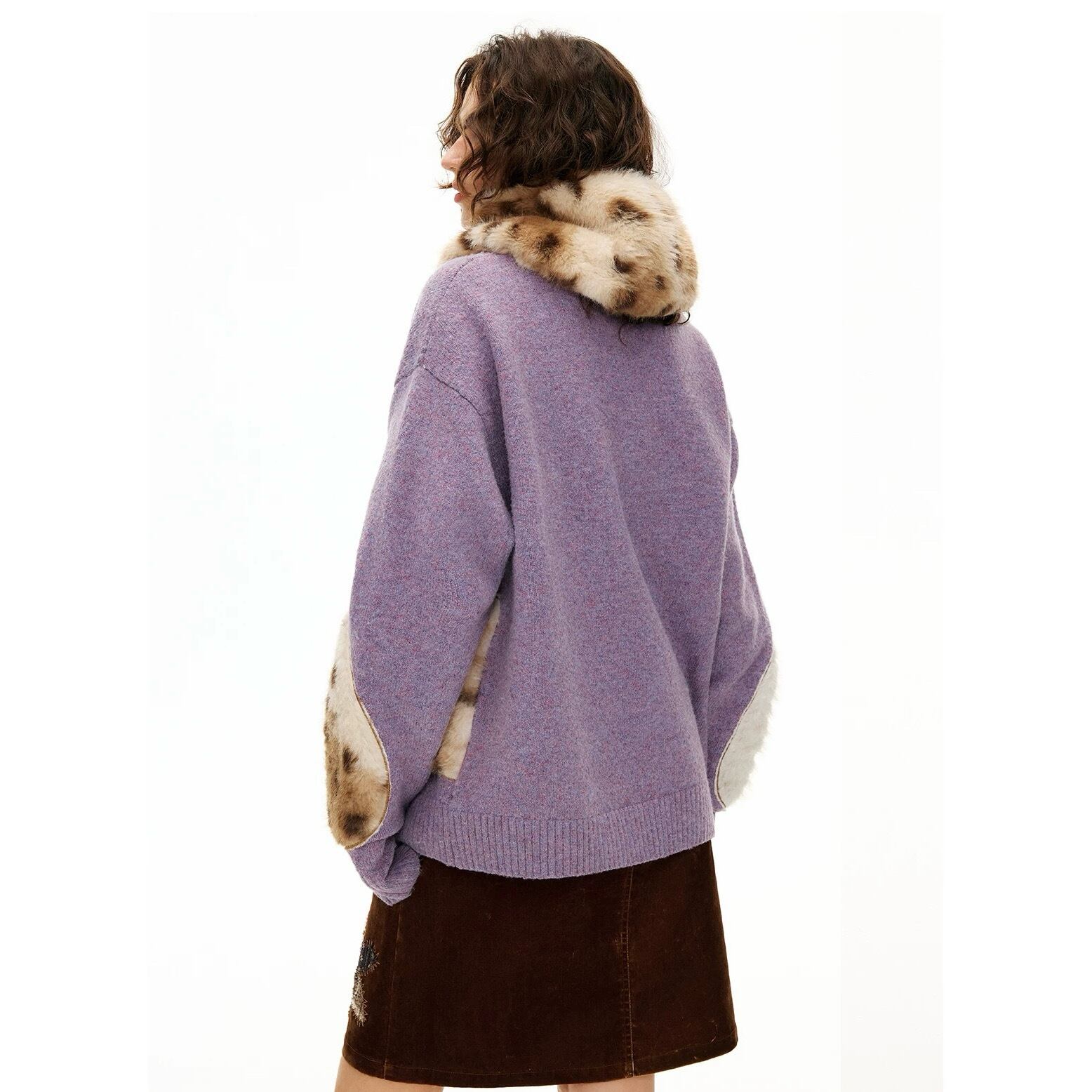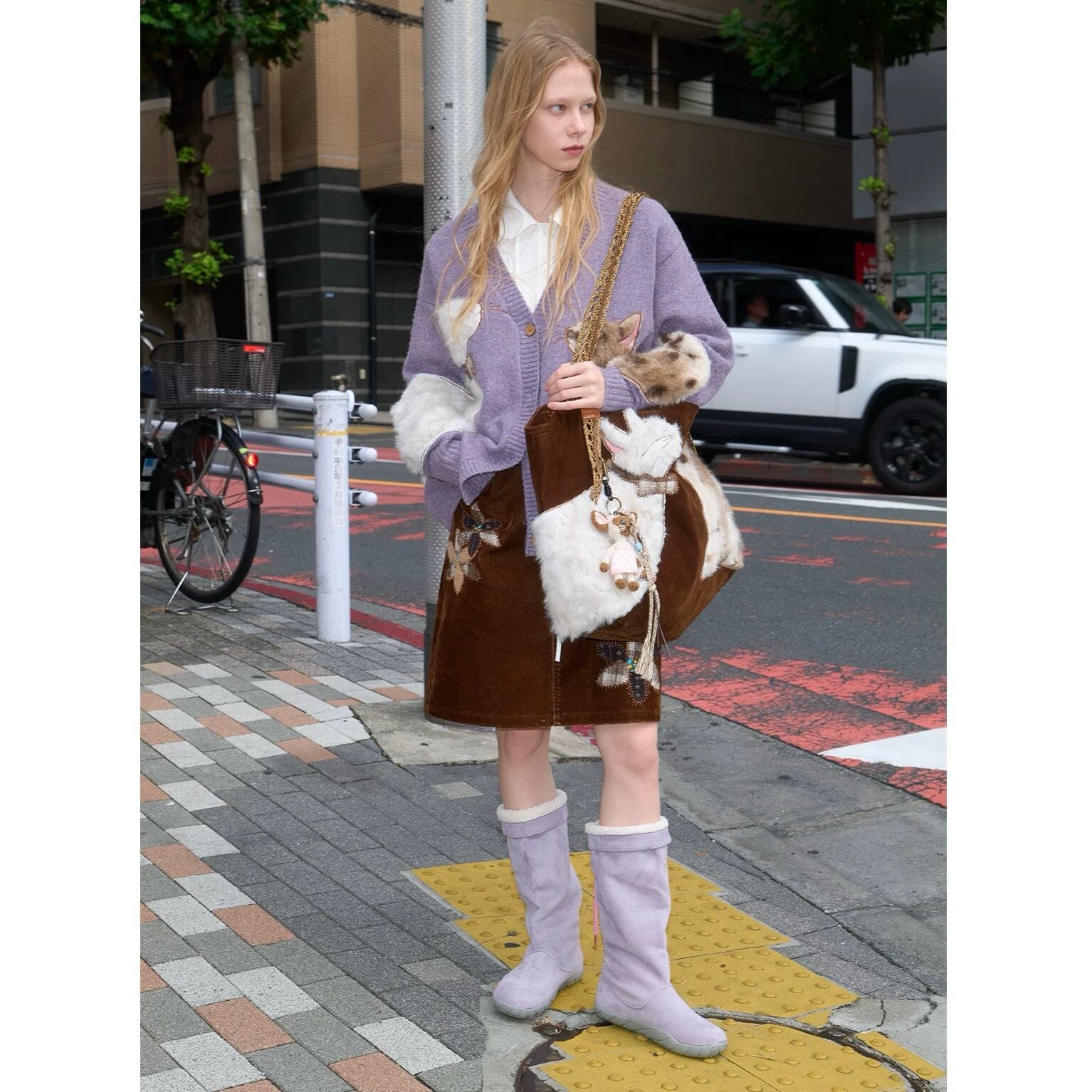 [Outthe Blue] Velvet Cat Purple Knit Cardigan