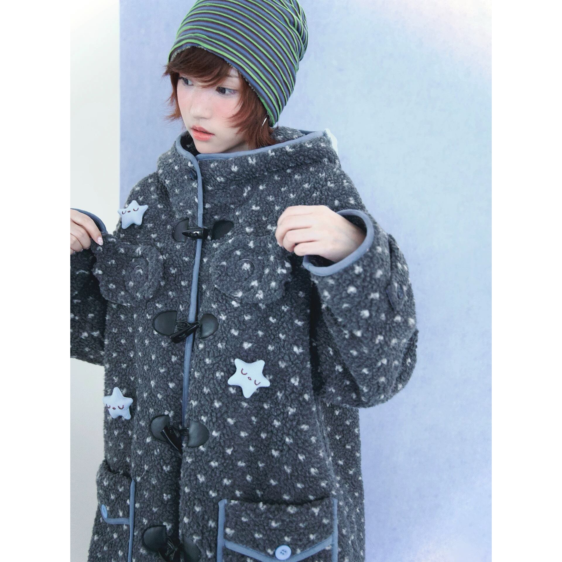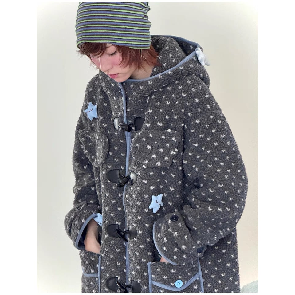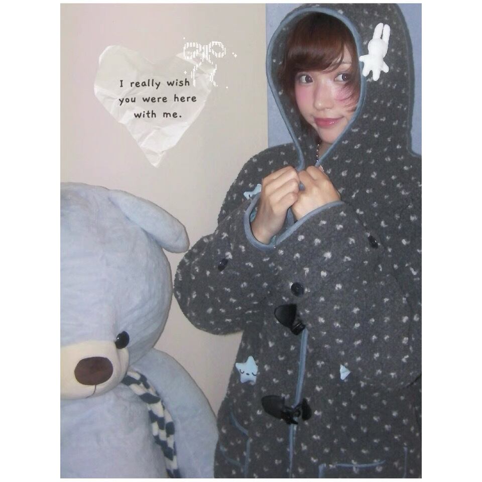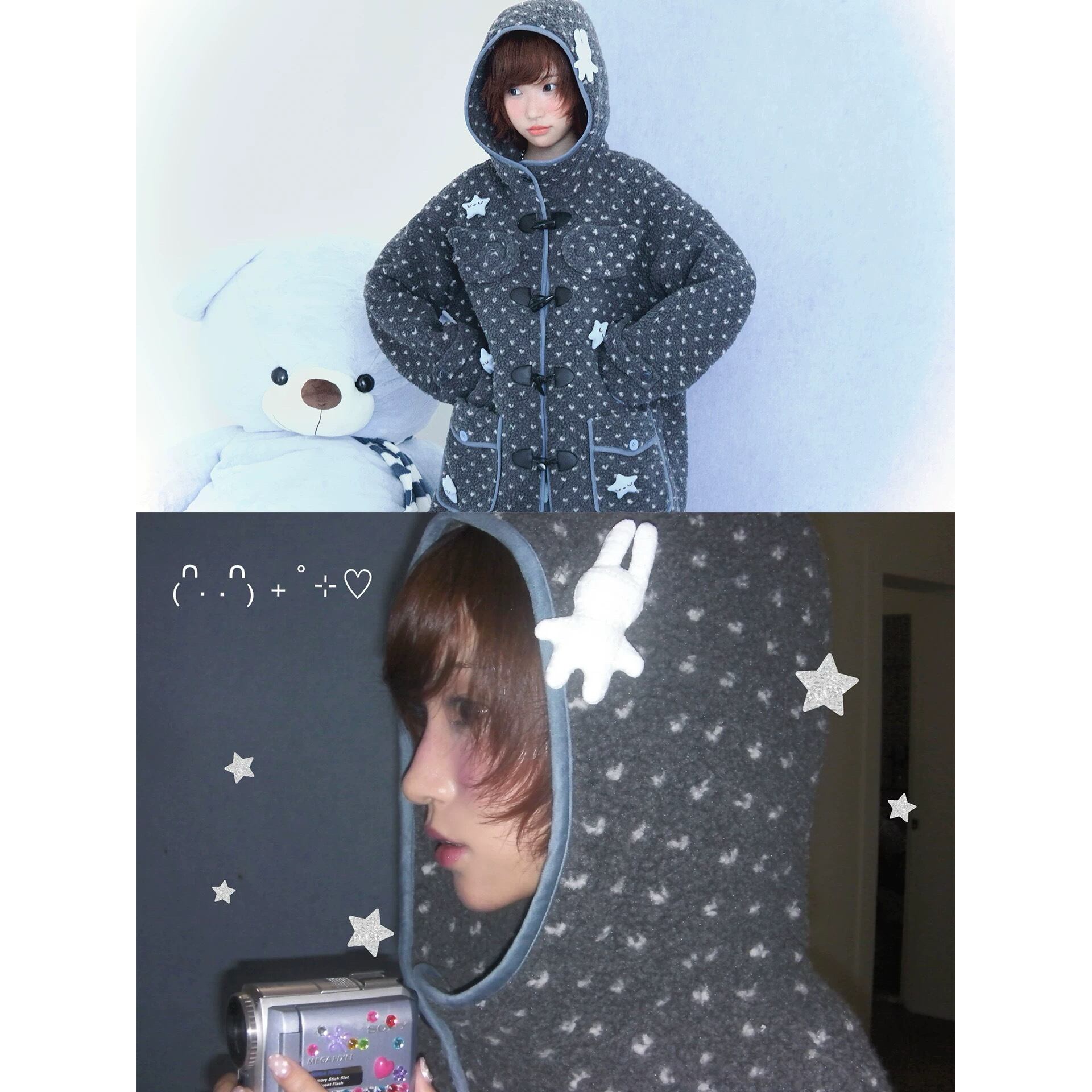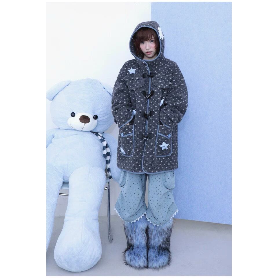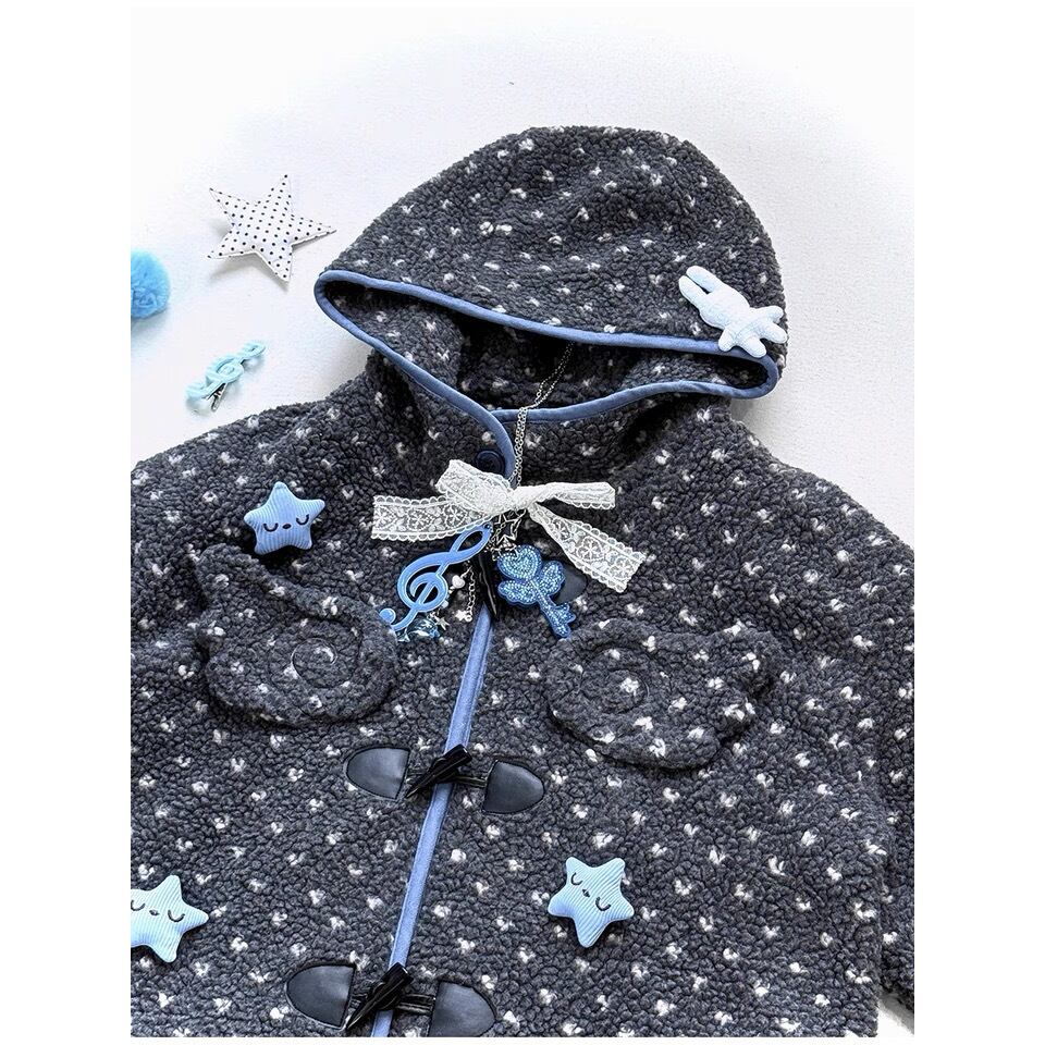 [Hashtag DDD] Gray Horned Star Angel Wings Hooded Jacket