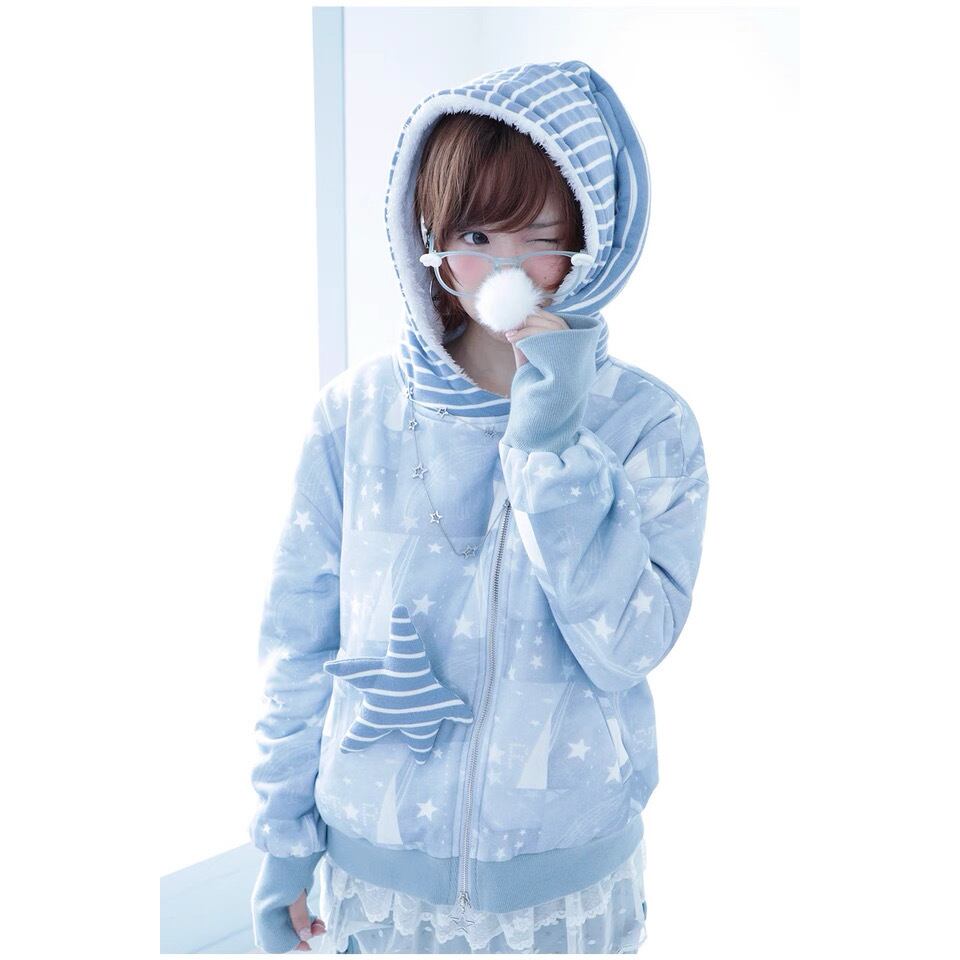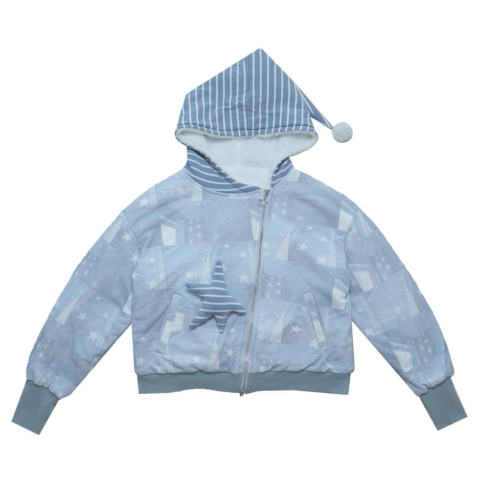[Hashtag DDD] Dream Core Fleece Star Zip Hooded Jacket