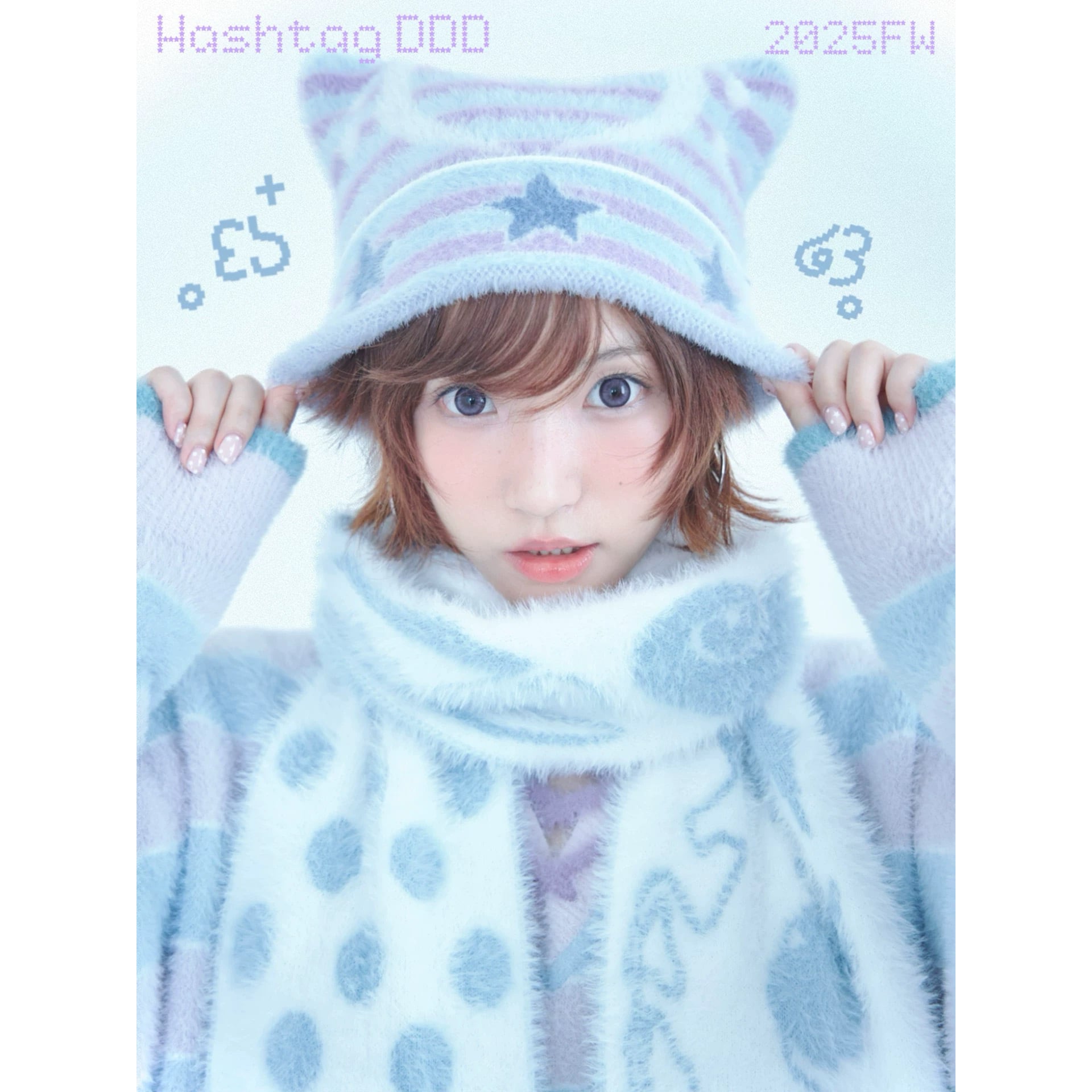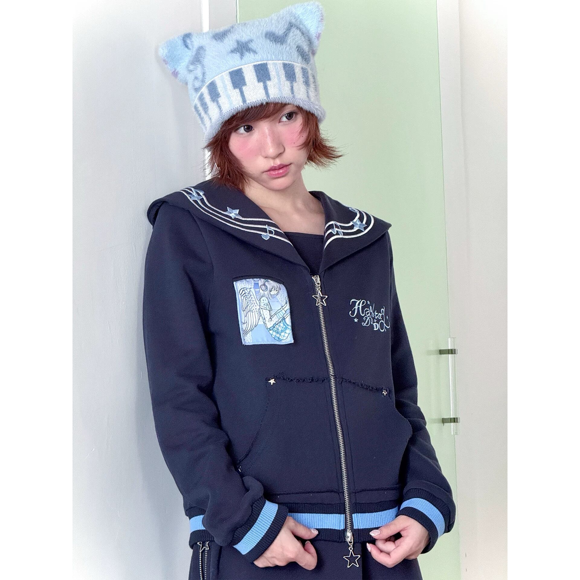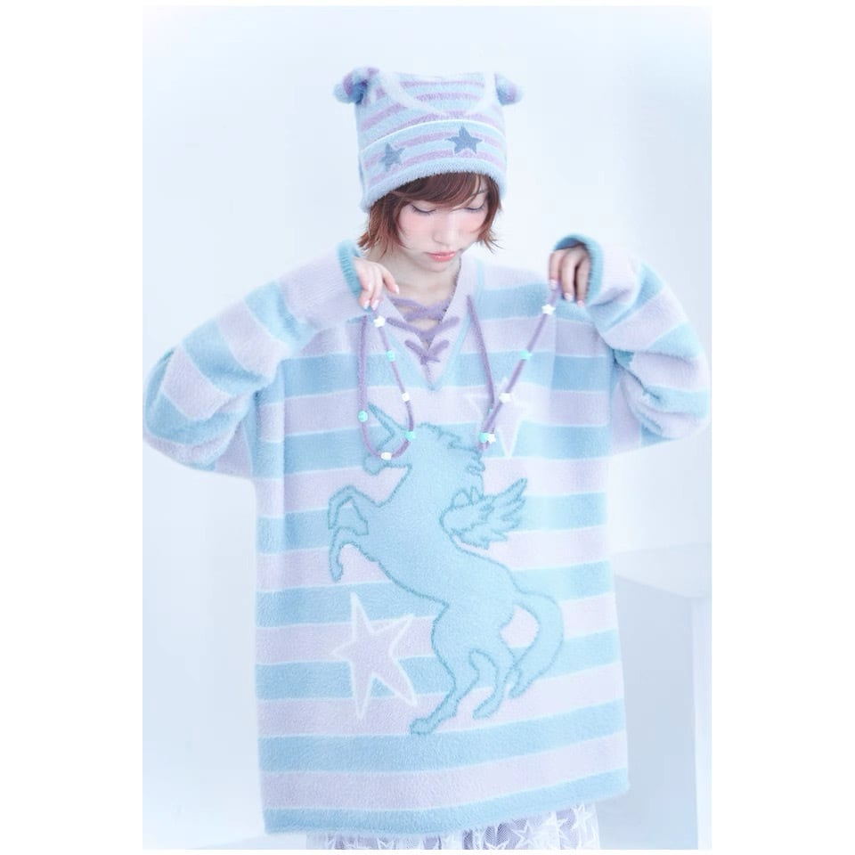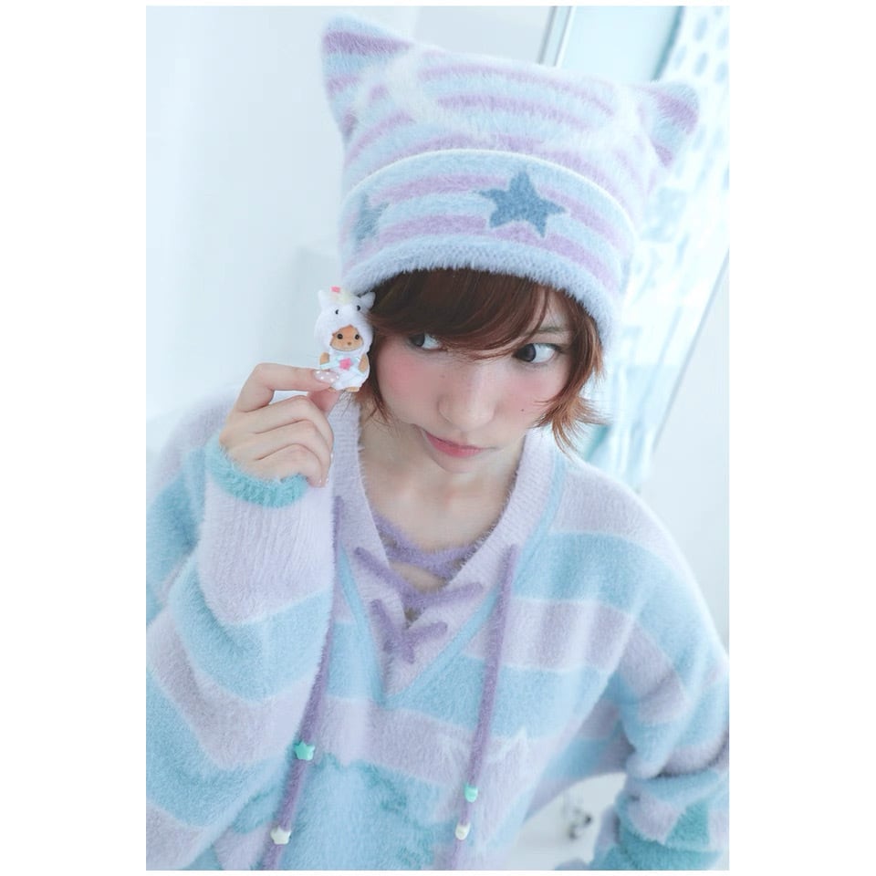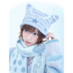 [Hashtag DDD] Music Star Striped Knit Cat Ear Cap