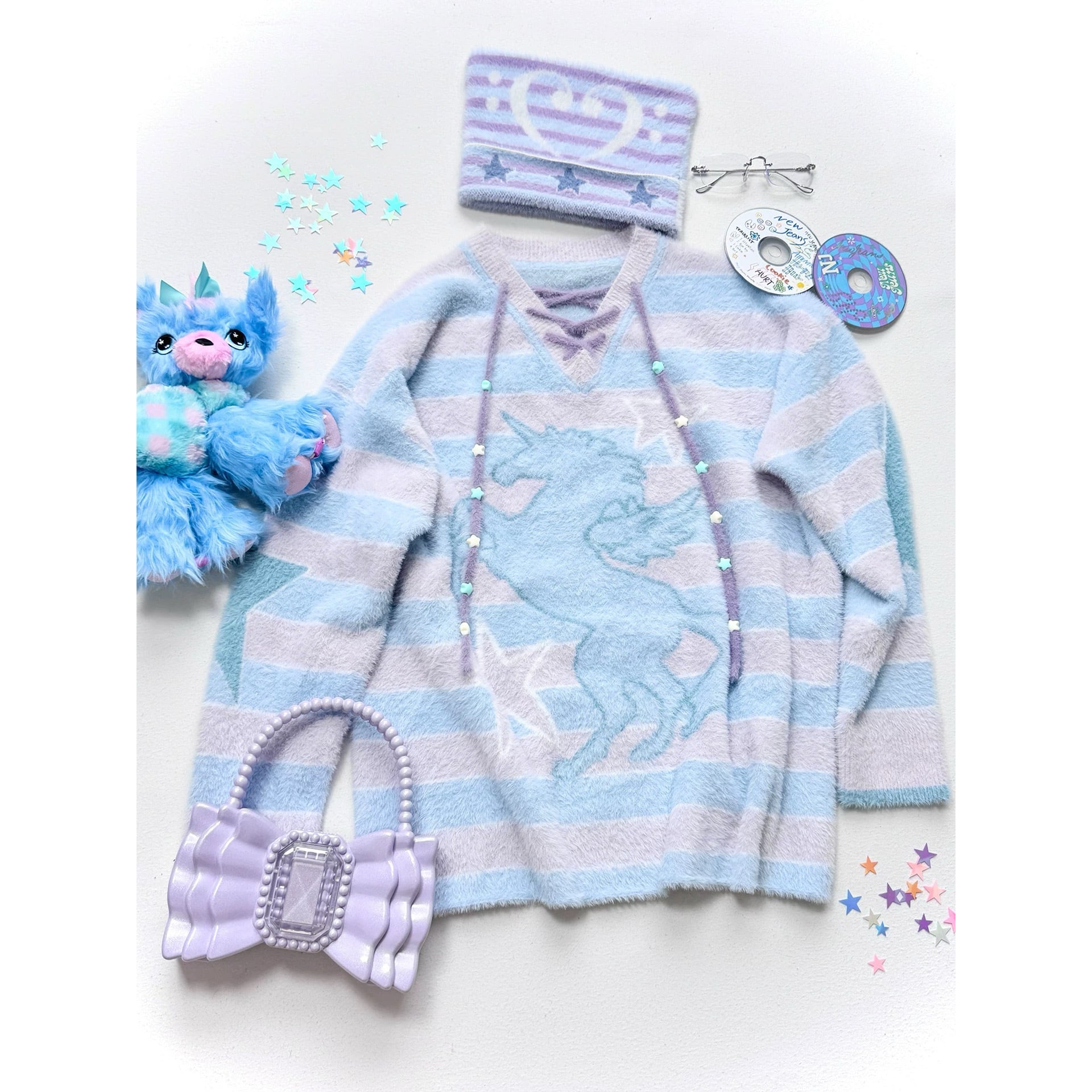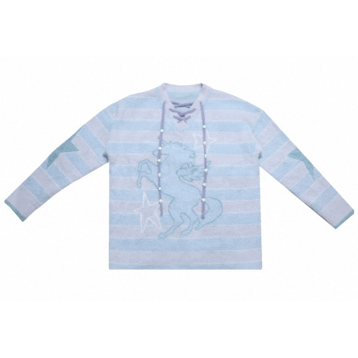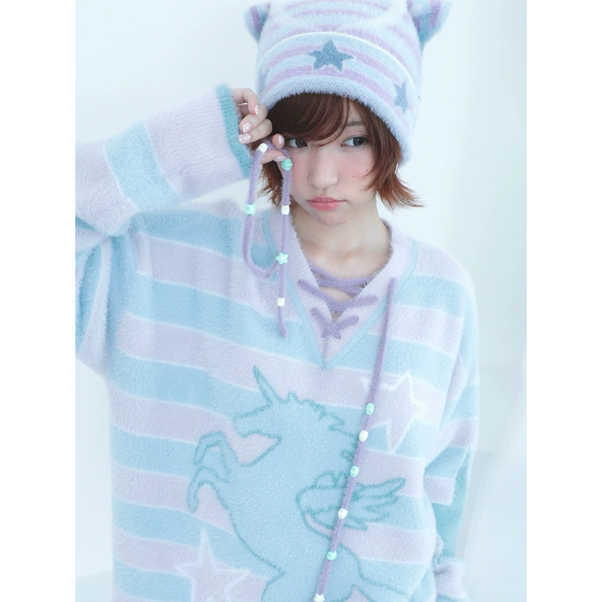 [Hashtag DDD] Unicorn Stripe V-Neck Knit Sweater