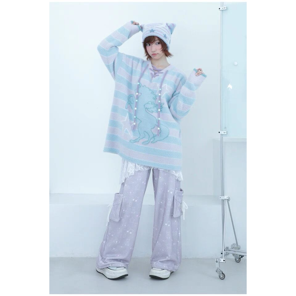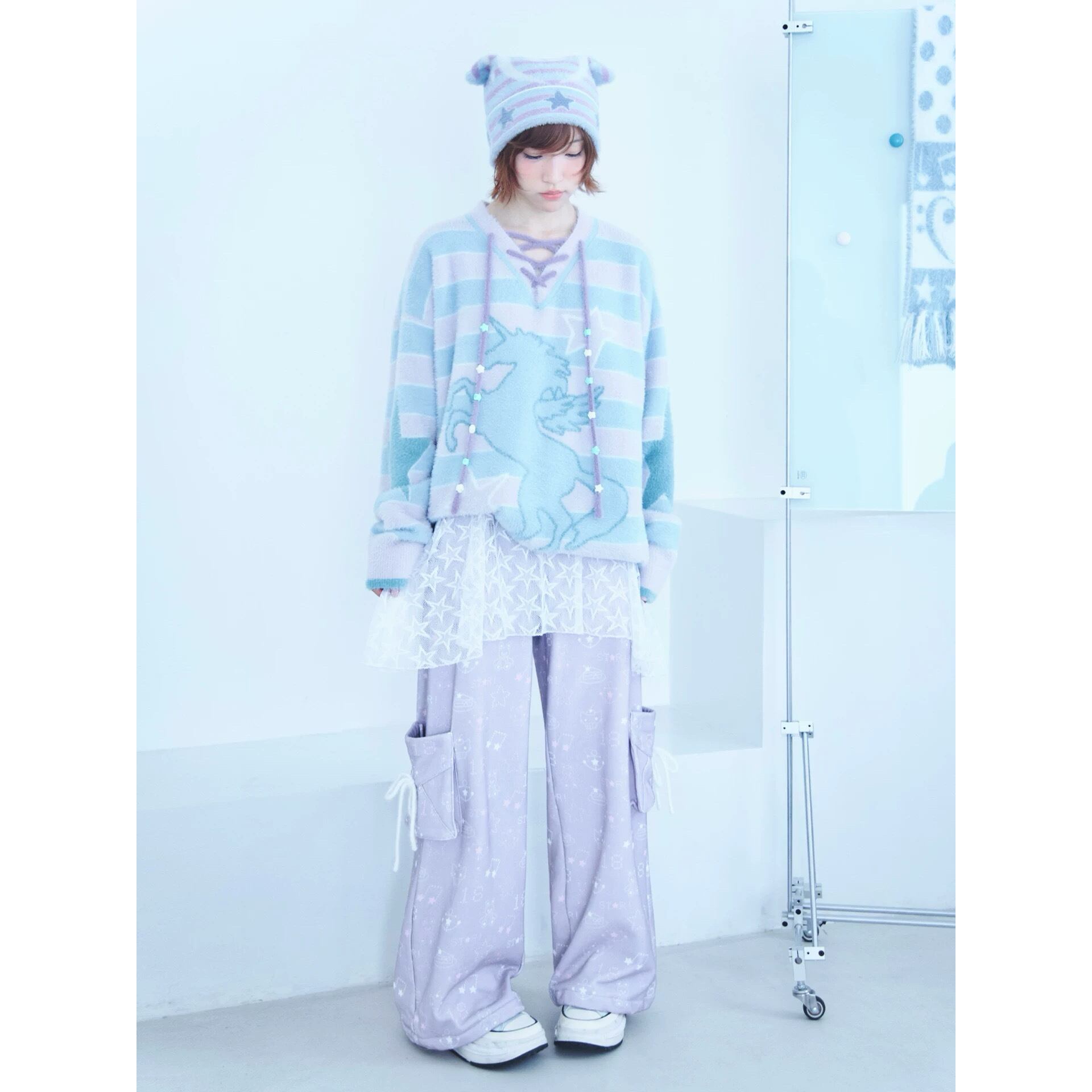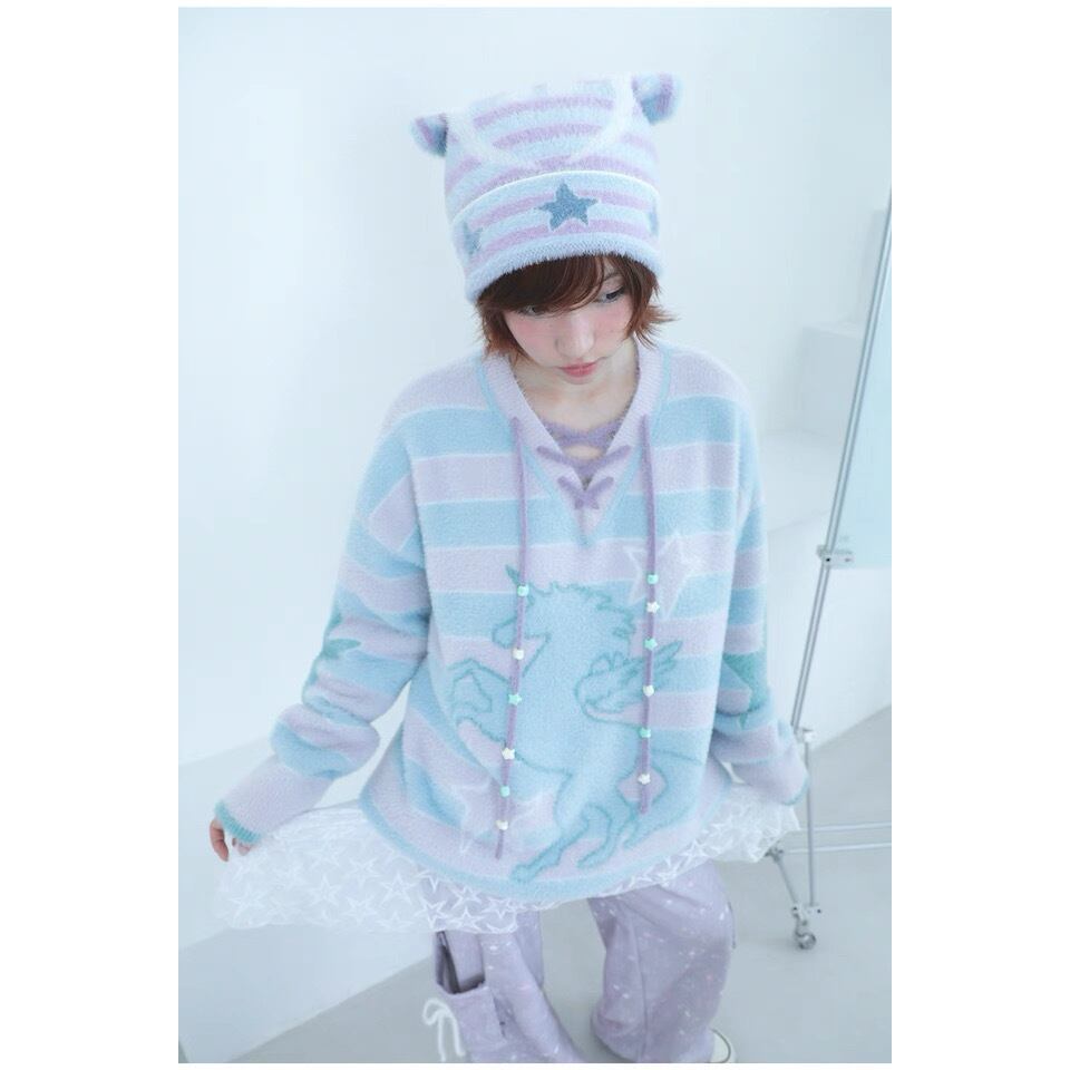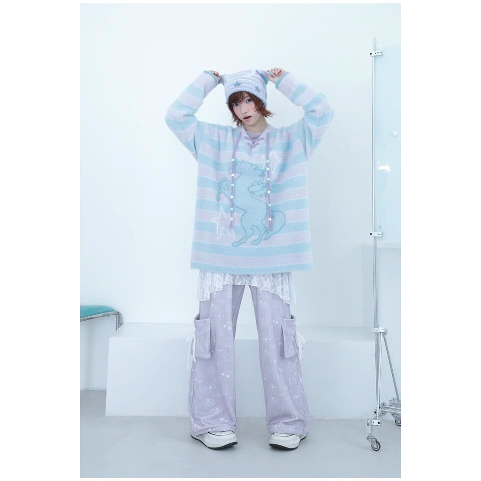 [Hashtag DDD] Unicorn Stripe V-Neck Knit Sweater