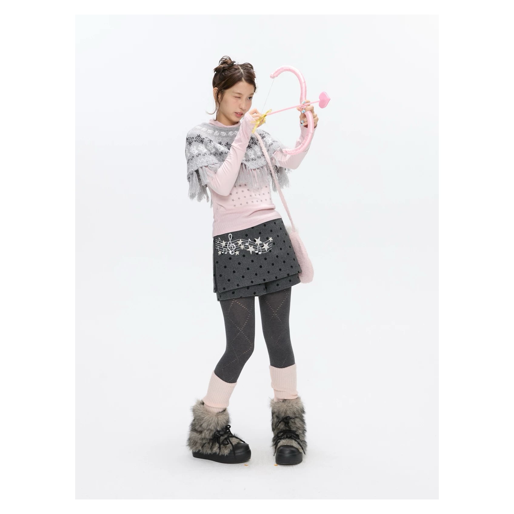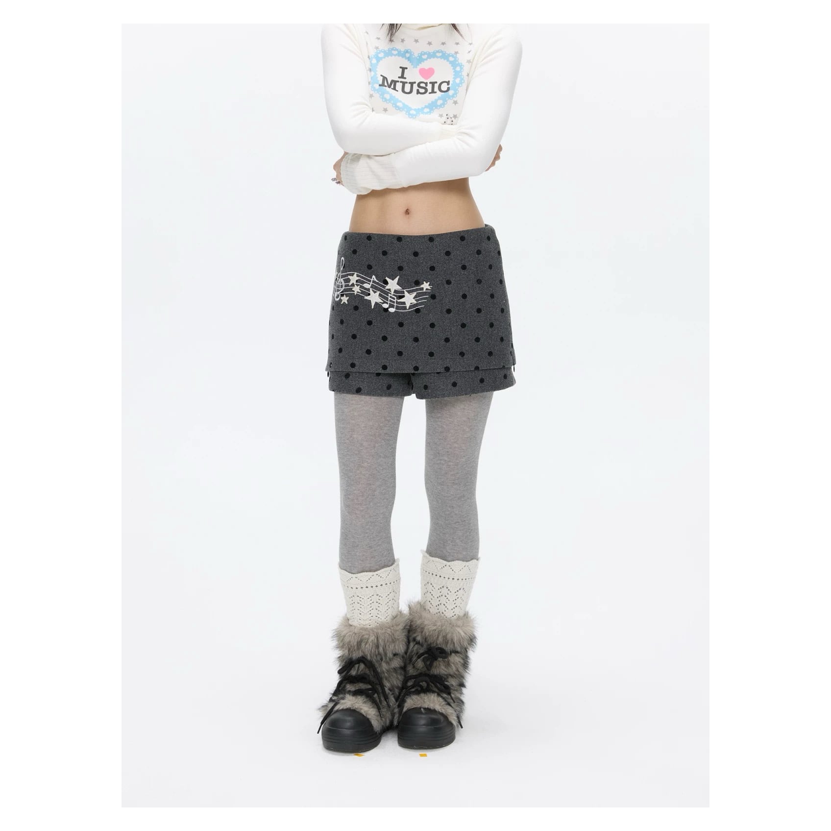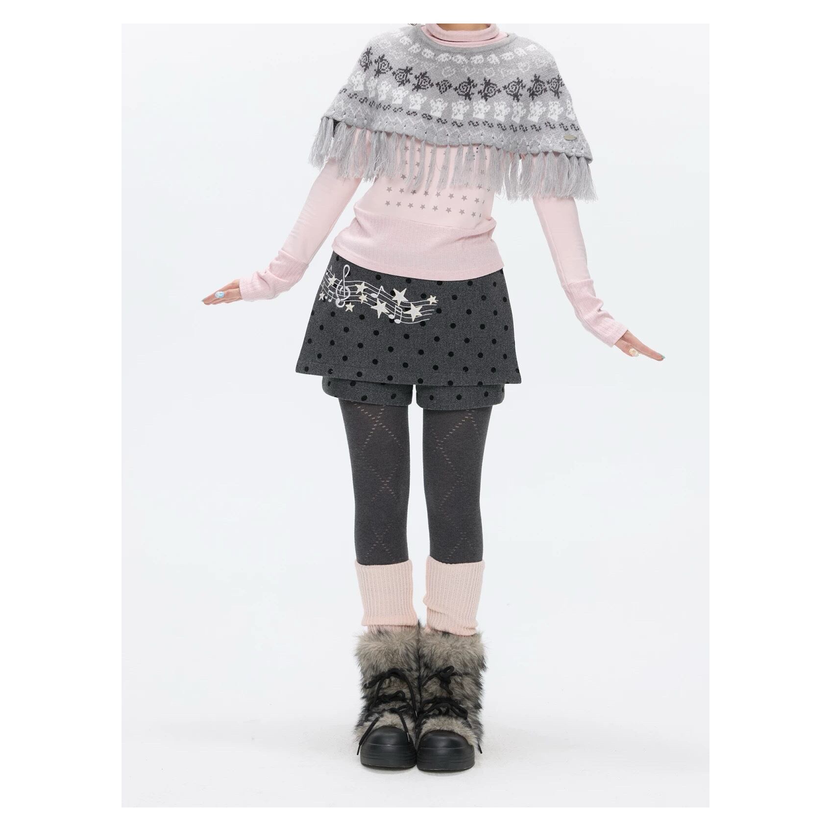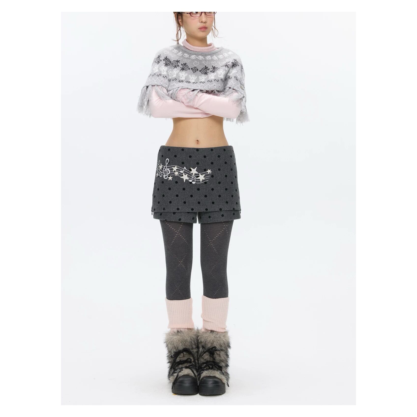 [BETWEENAND] Winter Gray Note Dot Wool Skirt Pants