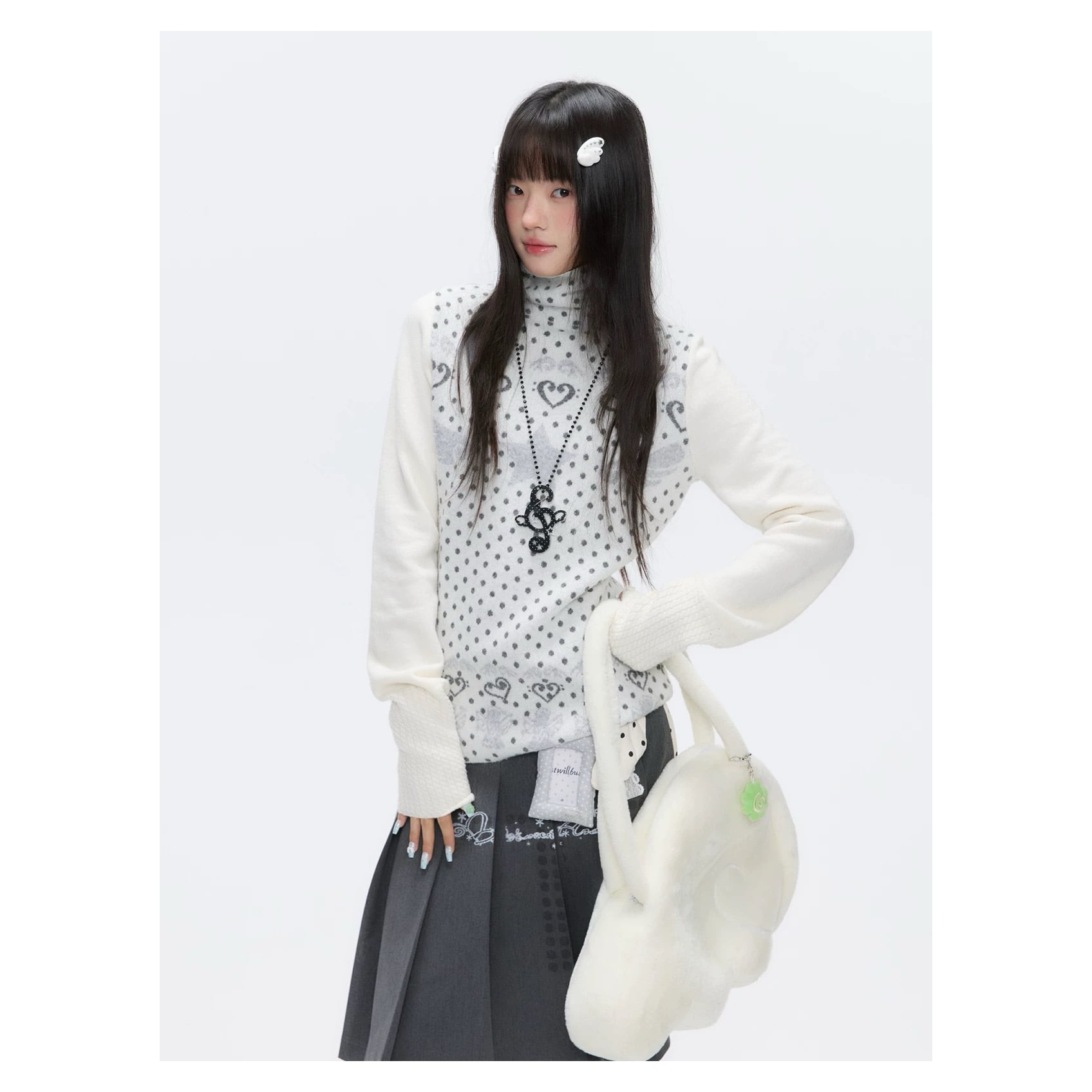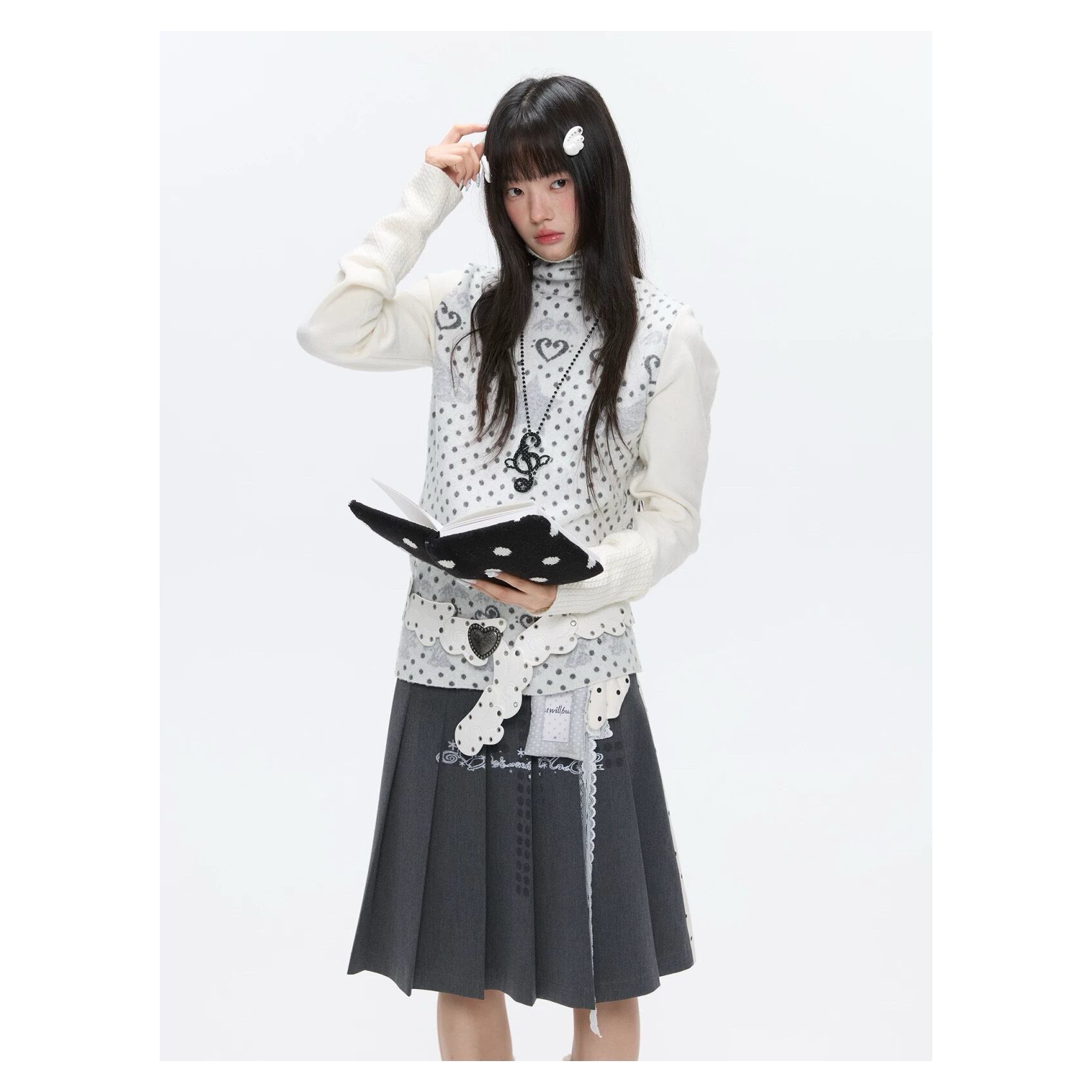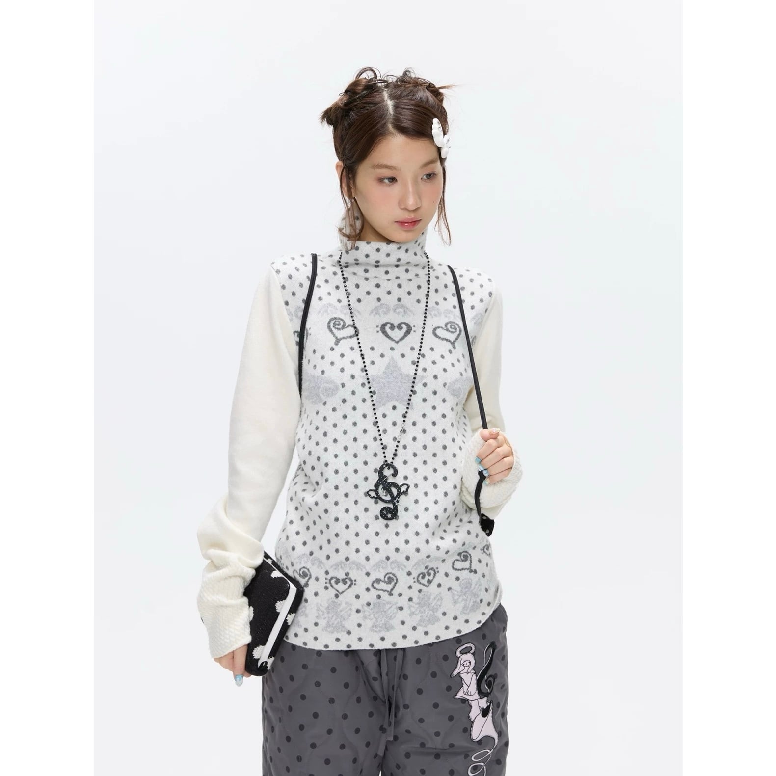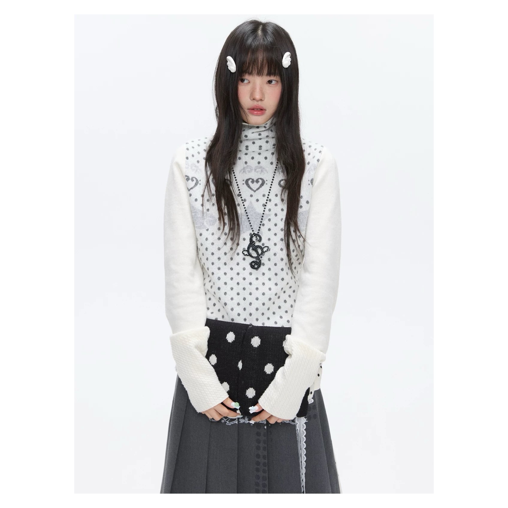 [BETWEENAND] First Snow High-Neck White Dot Sweater