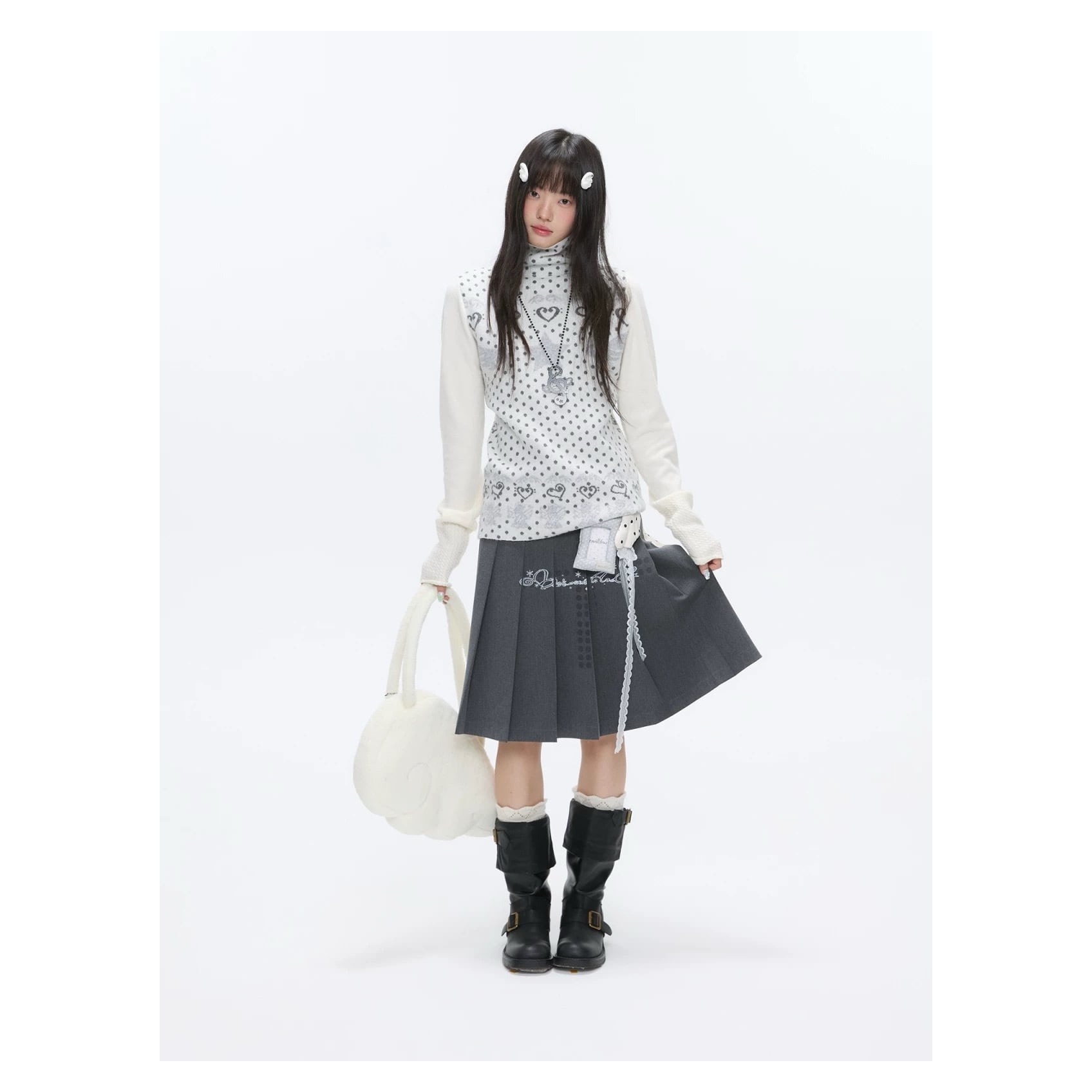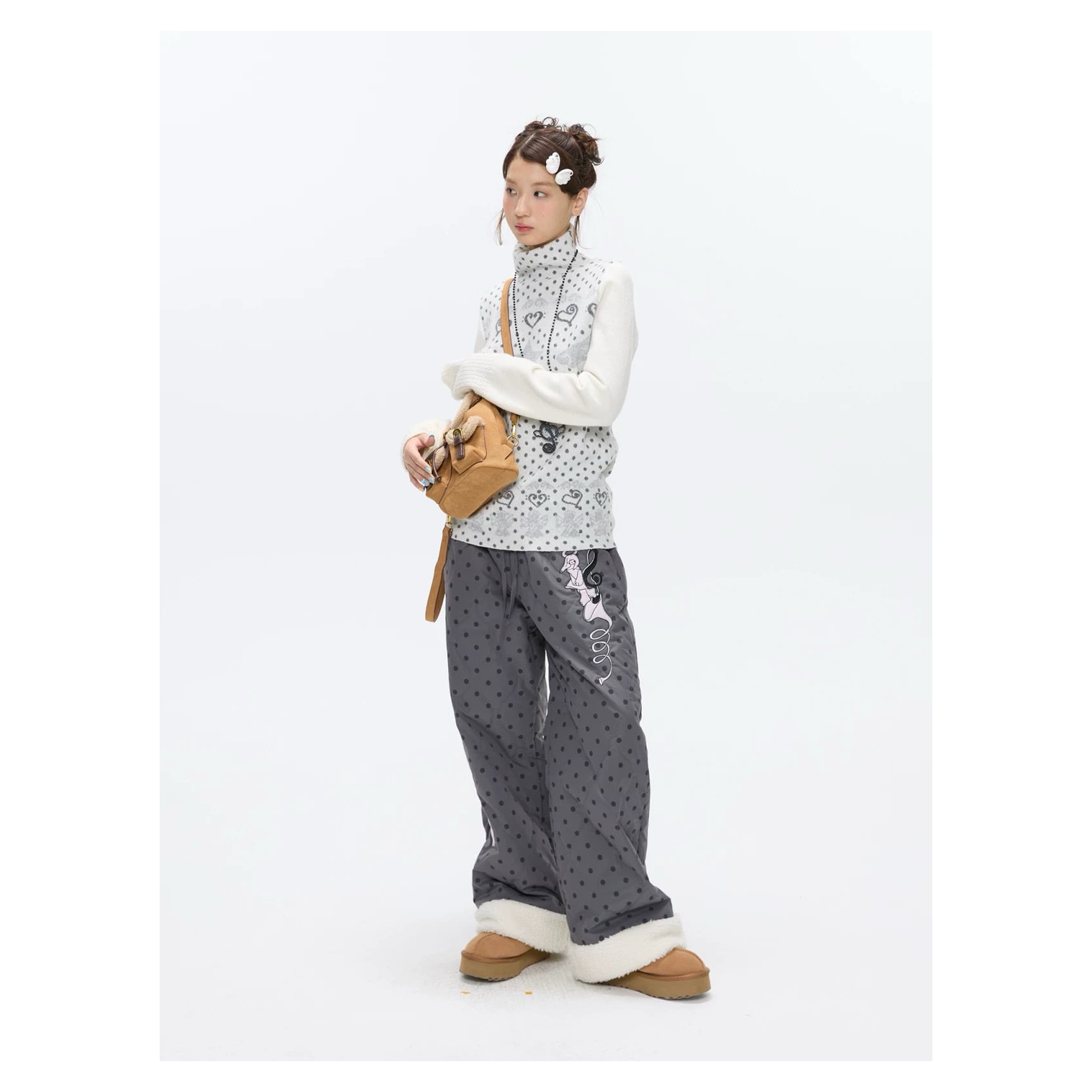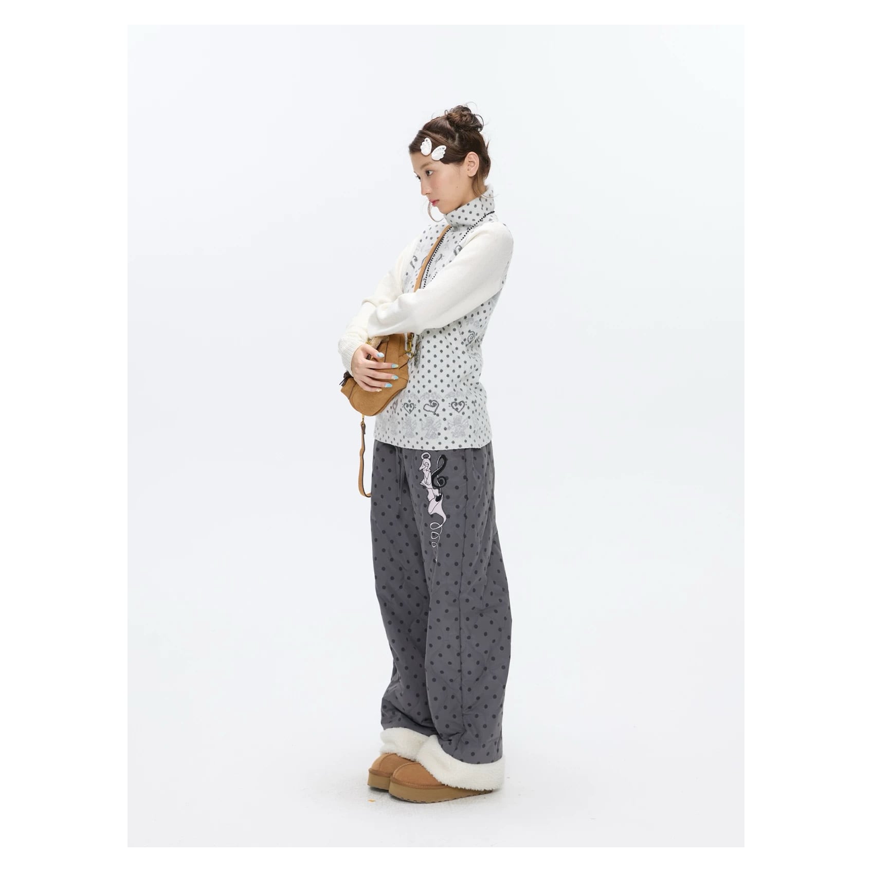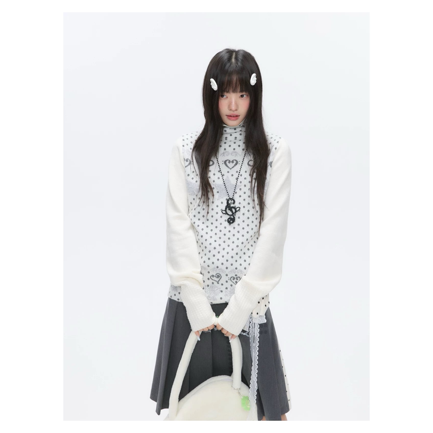 [BETWEENAND] First Snow High-Neck White Dot Sweater