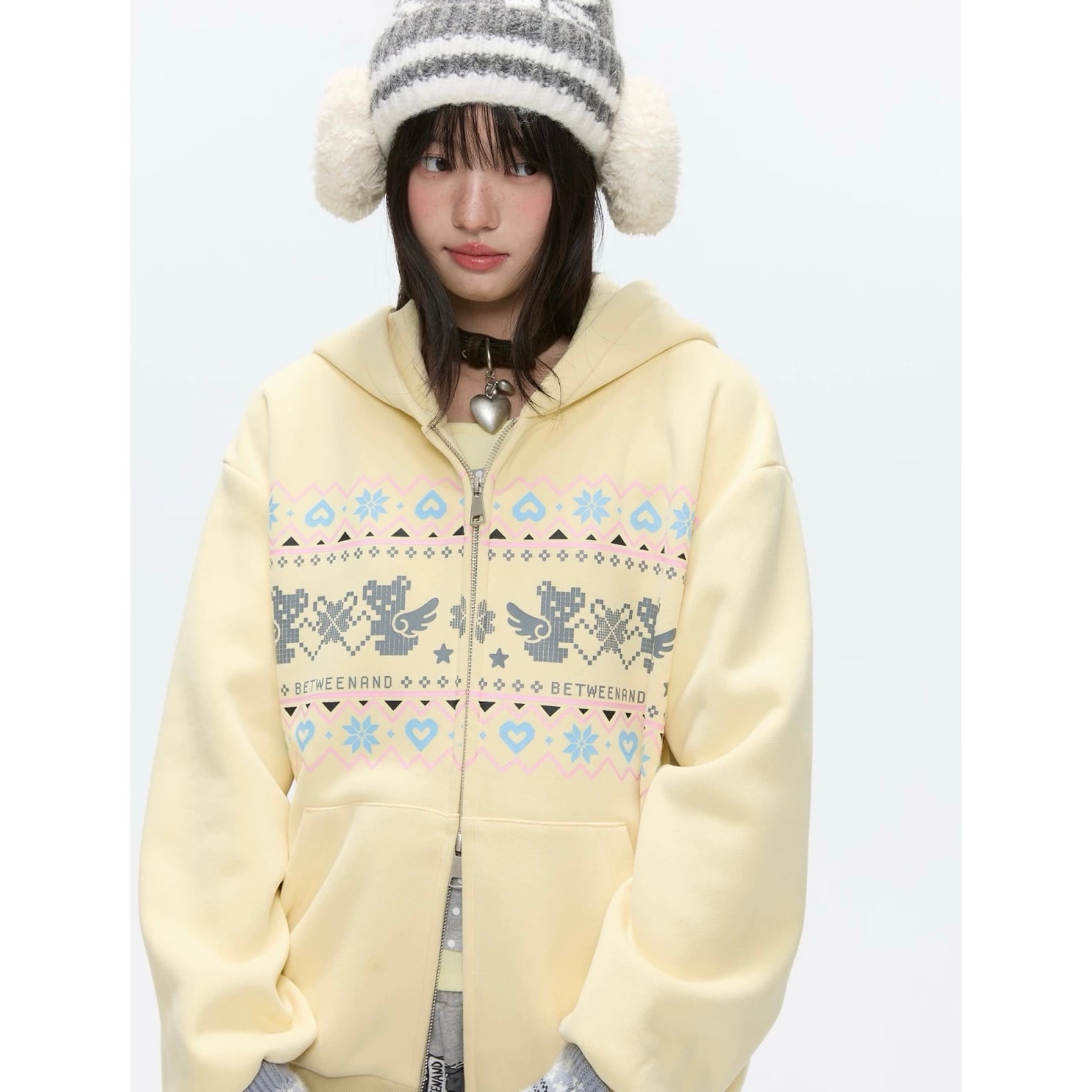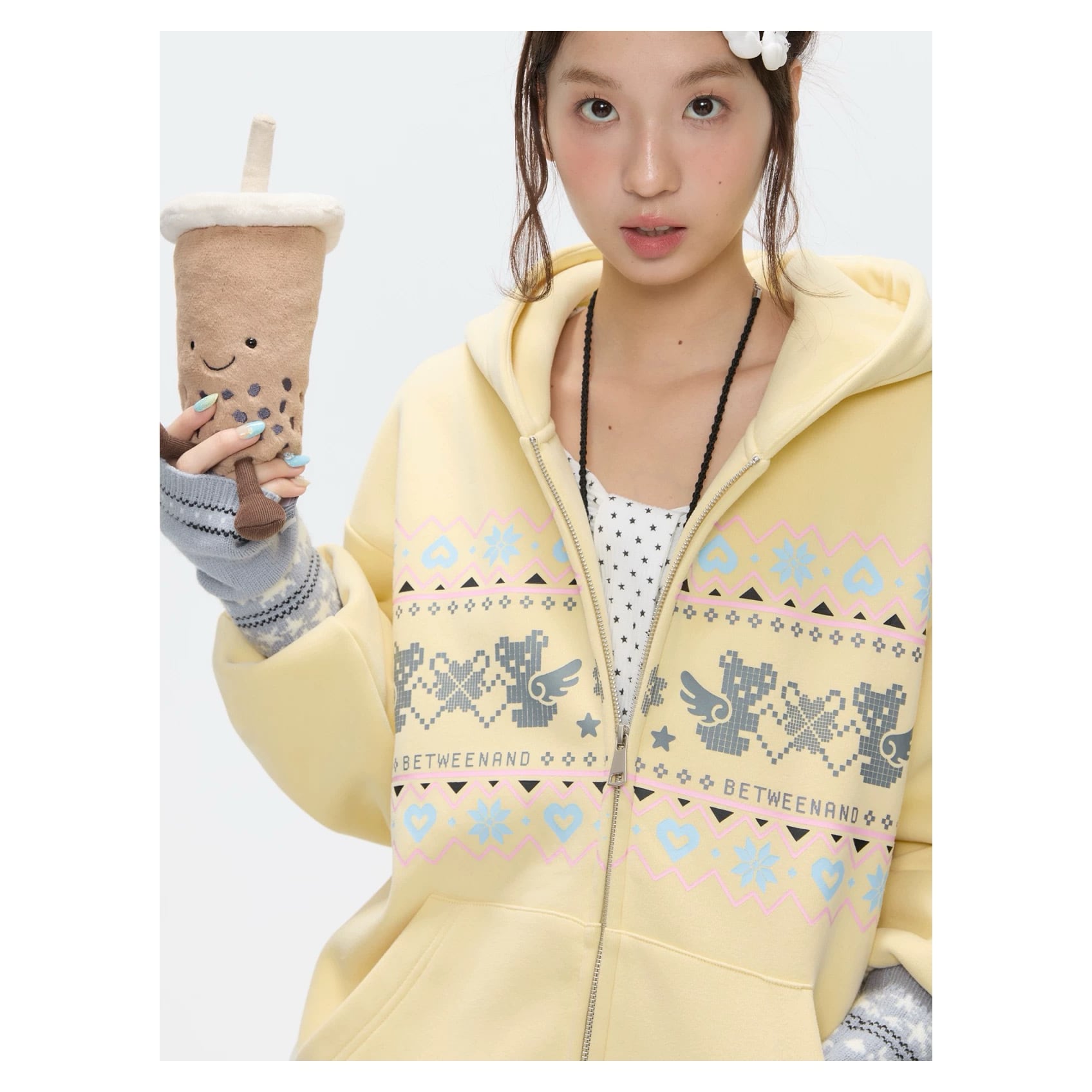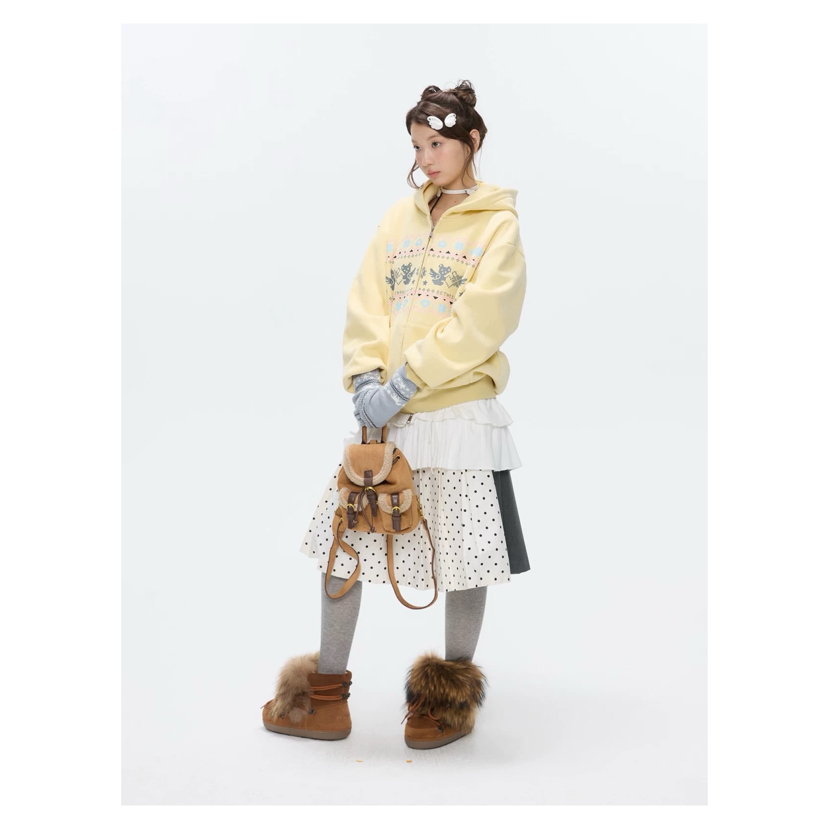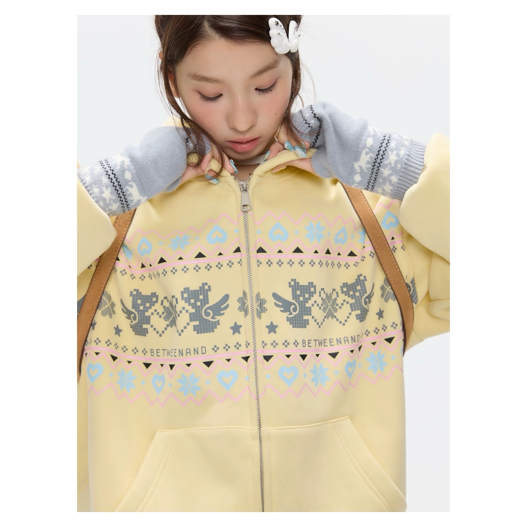 [BETWEENAND] Winter Lucky Bear Yellow Fleece Hoodie