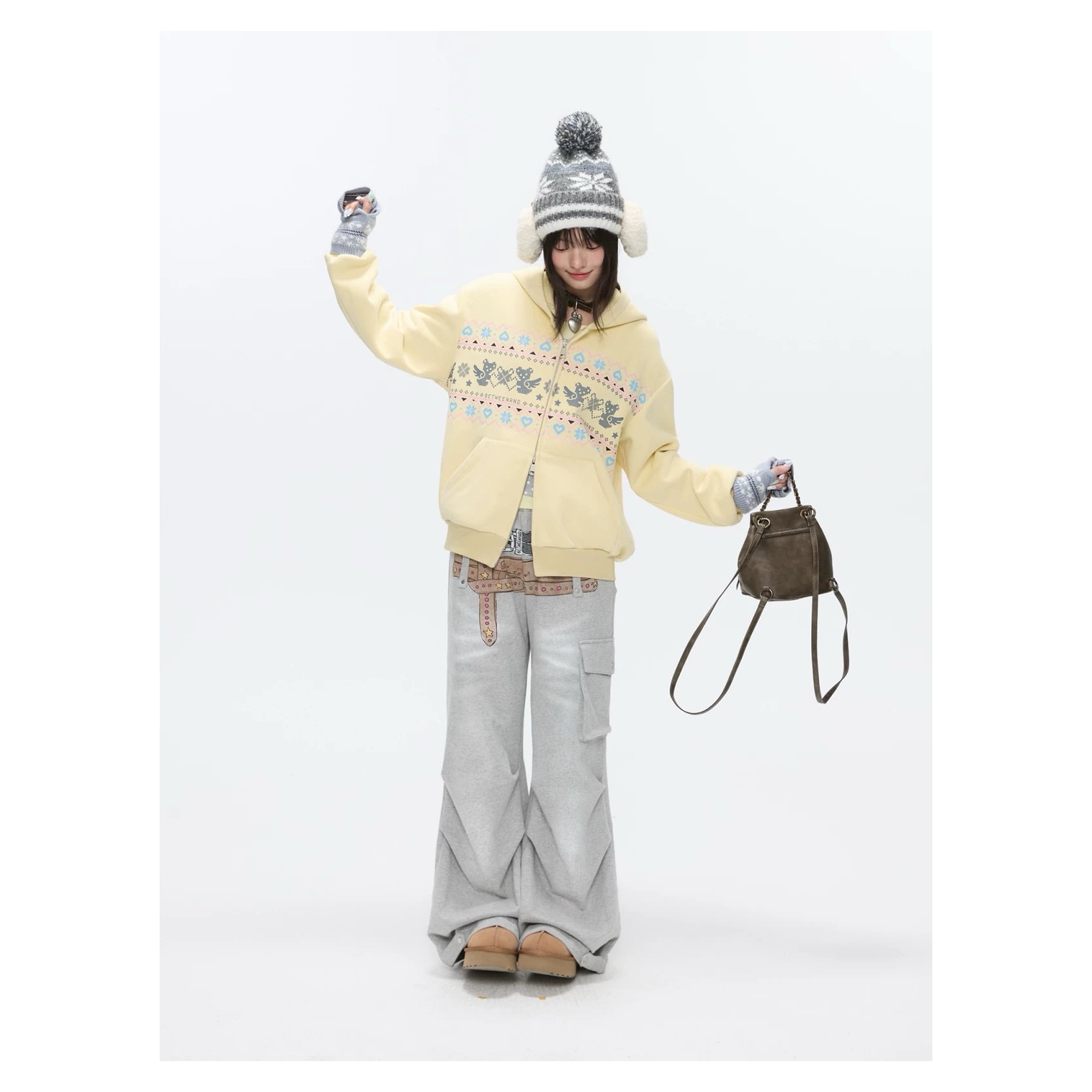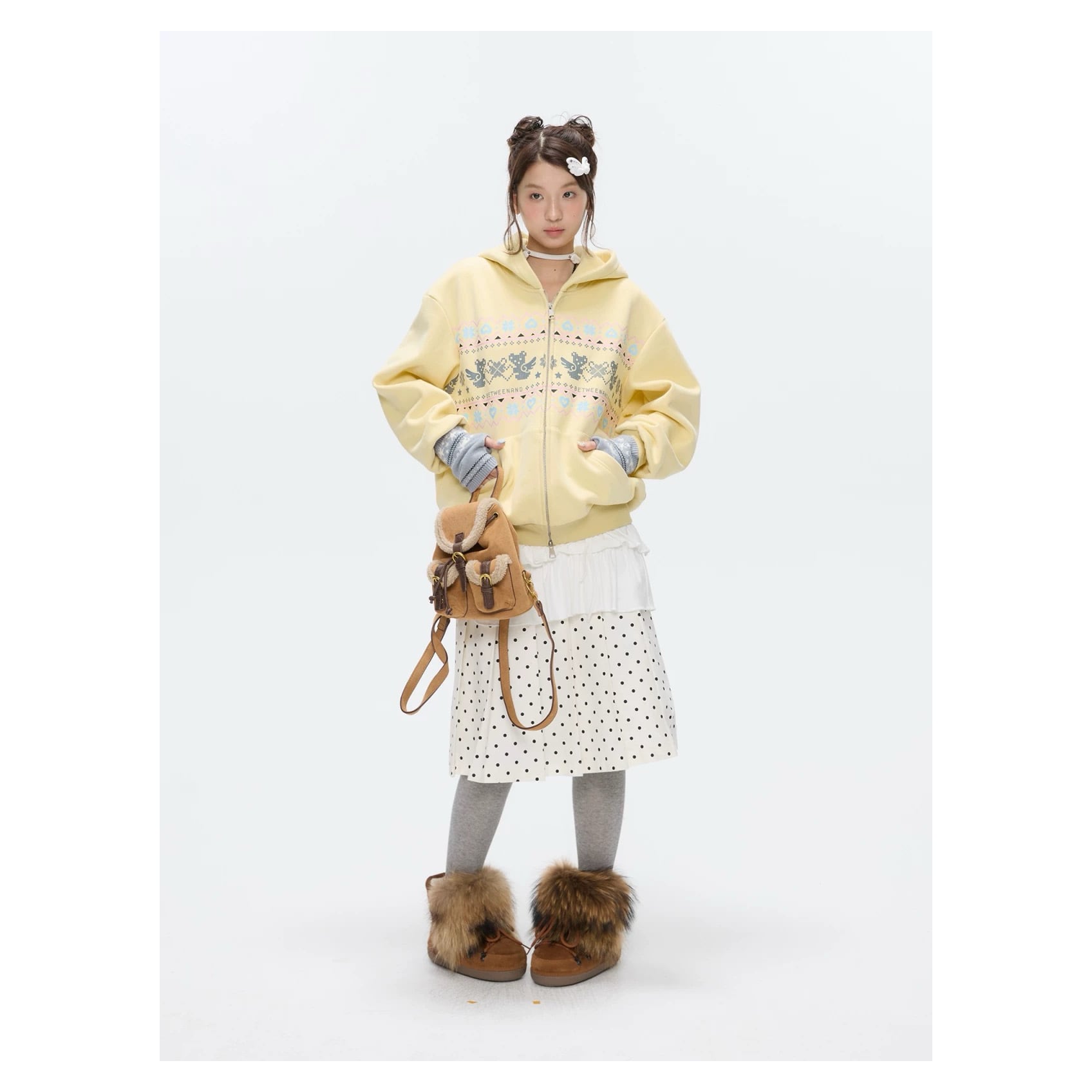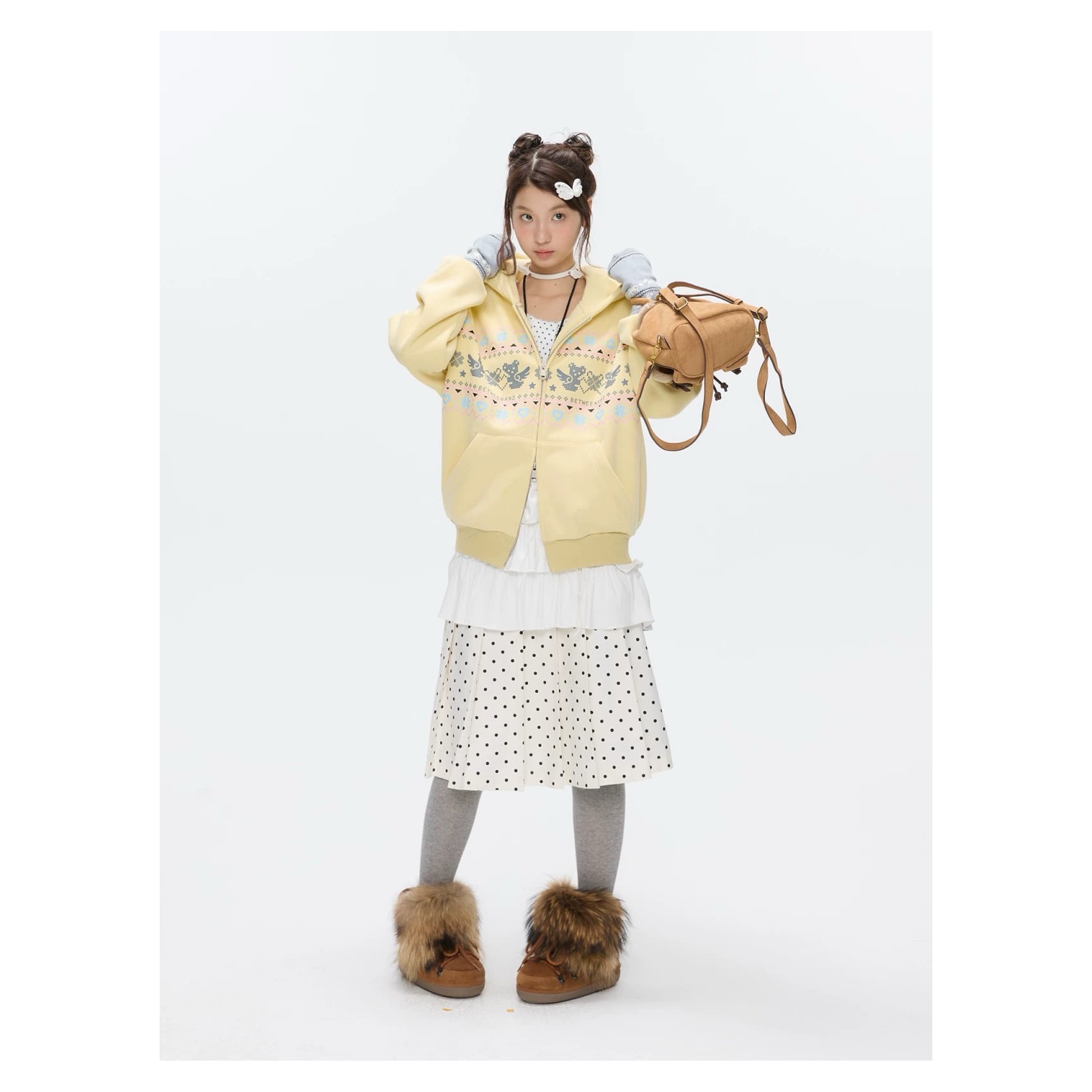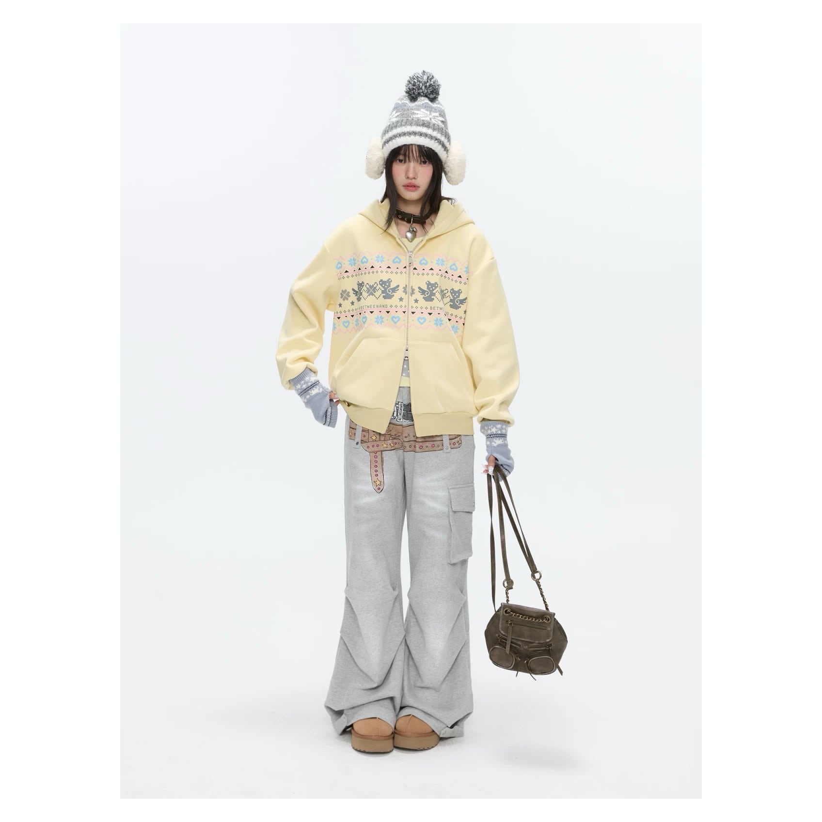 [BETWEENAND] Winter Lucky Bear Yellow Fleece Hoodie