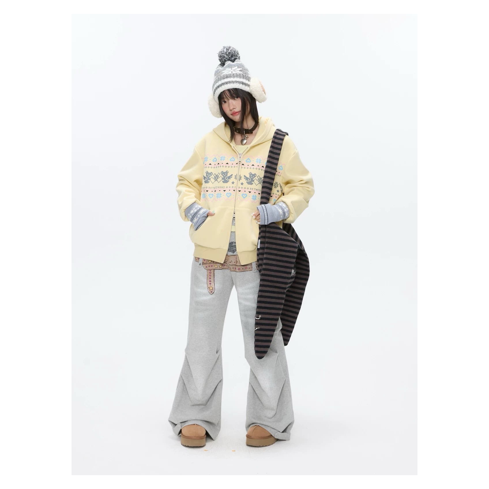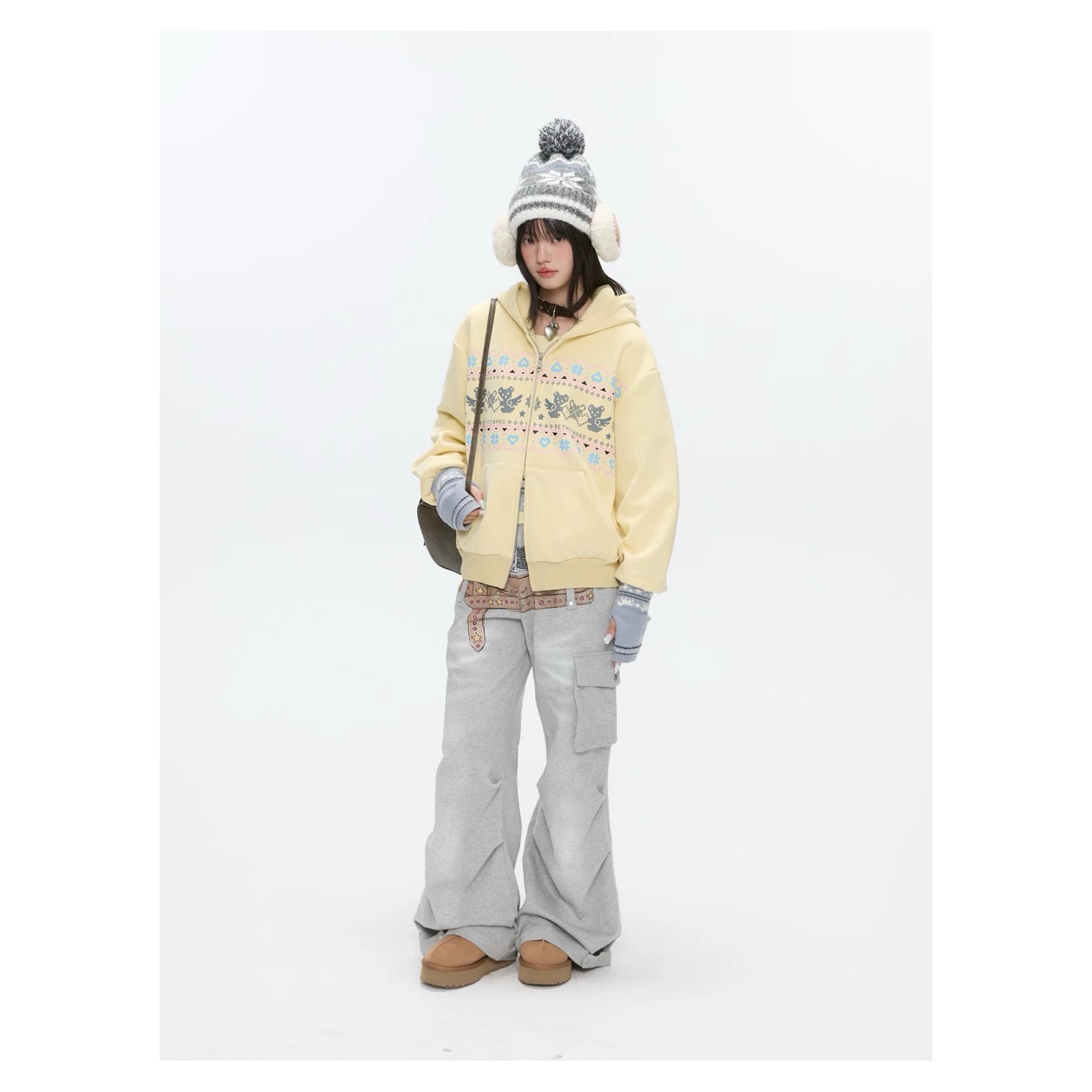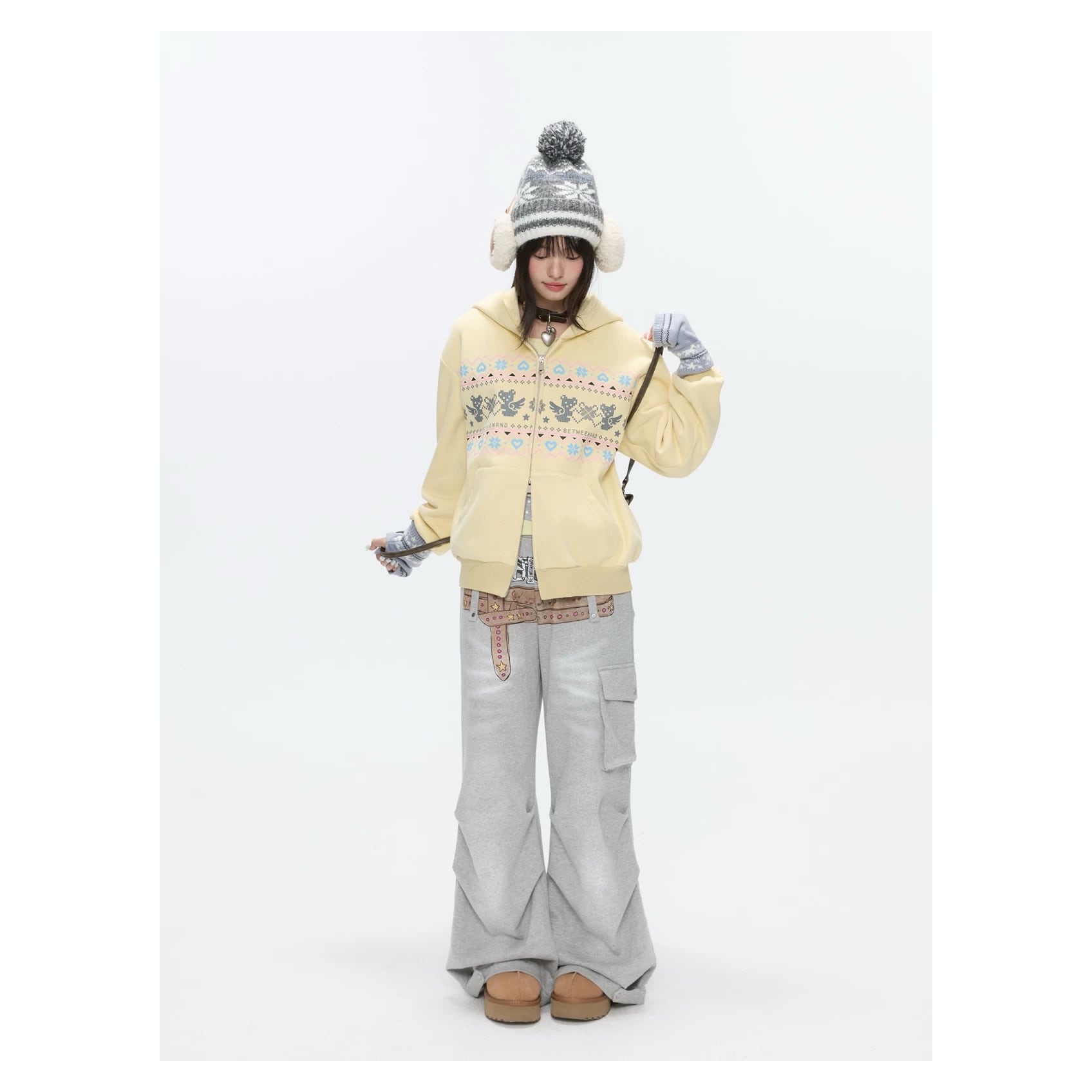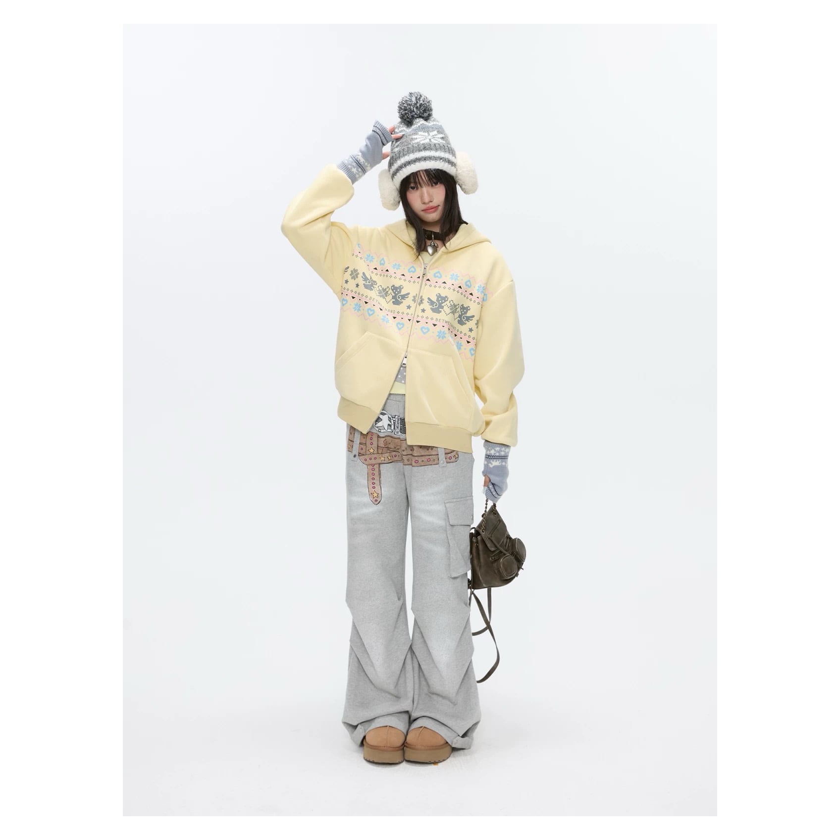 [BETWEENAND] Winter Lucky Bear Yellow Fleece Hoodie