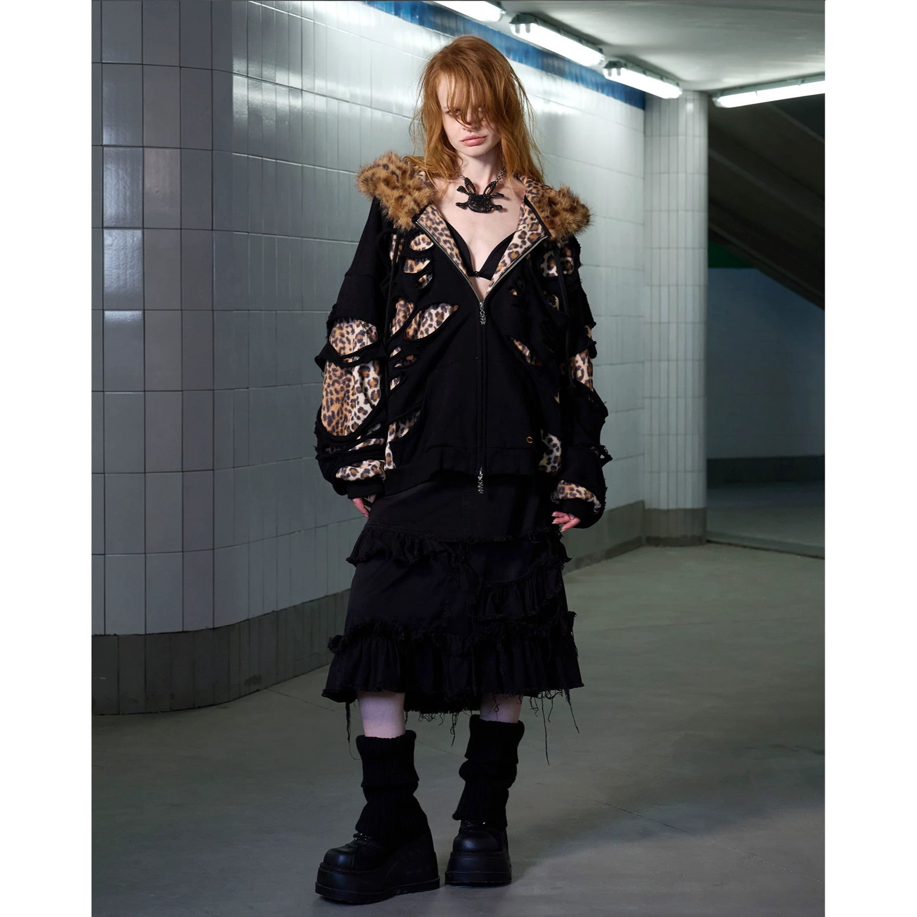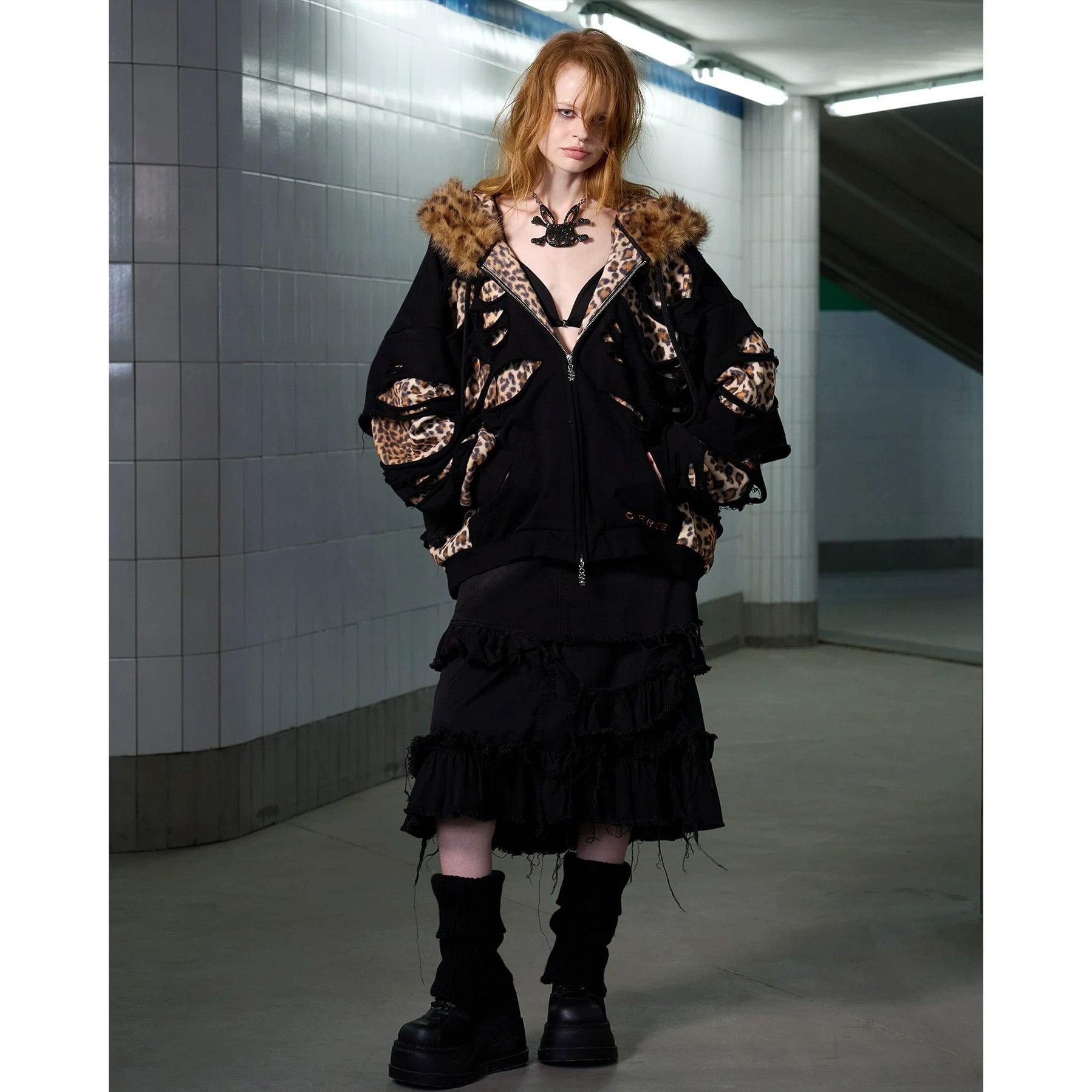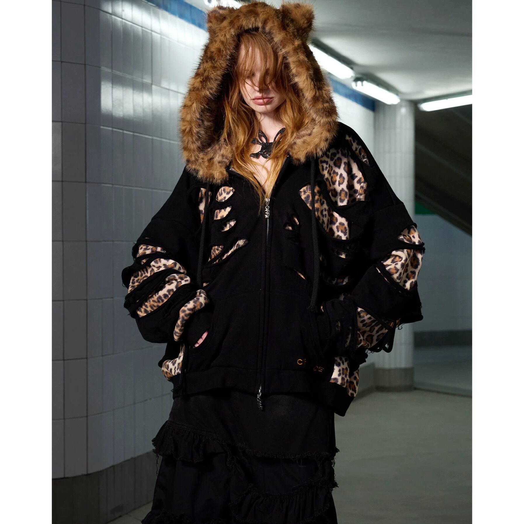 [CFIERCE] Leopard Double Layer Hoodie
