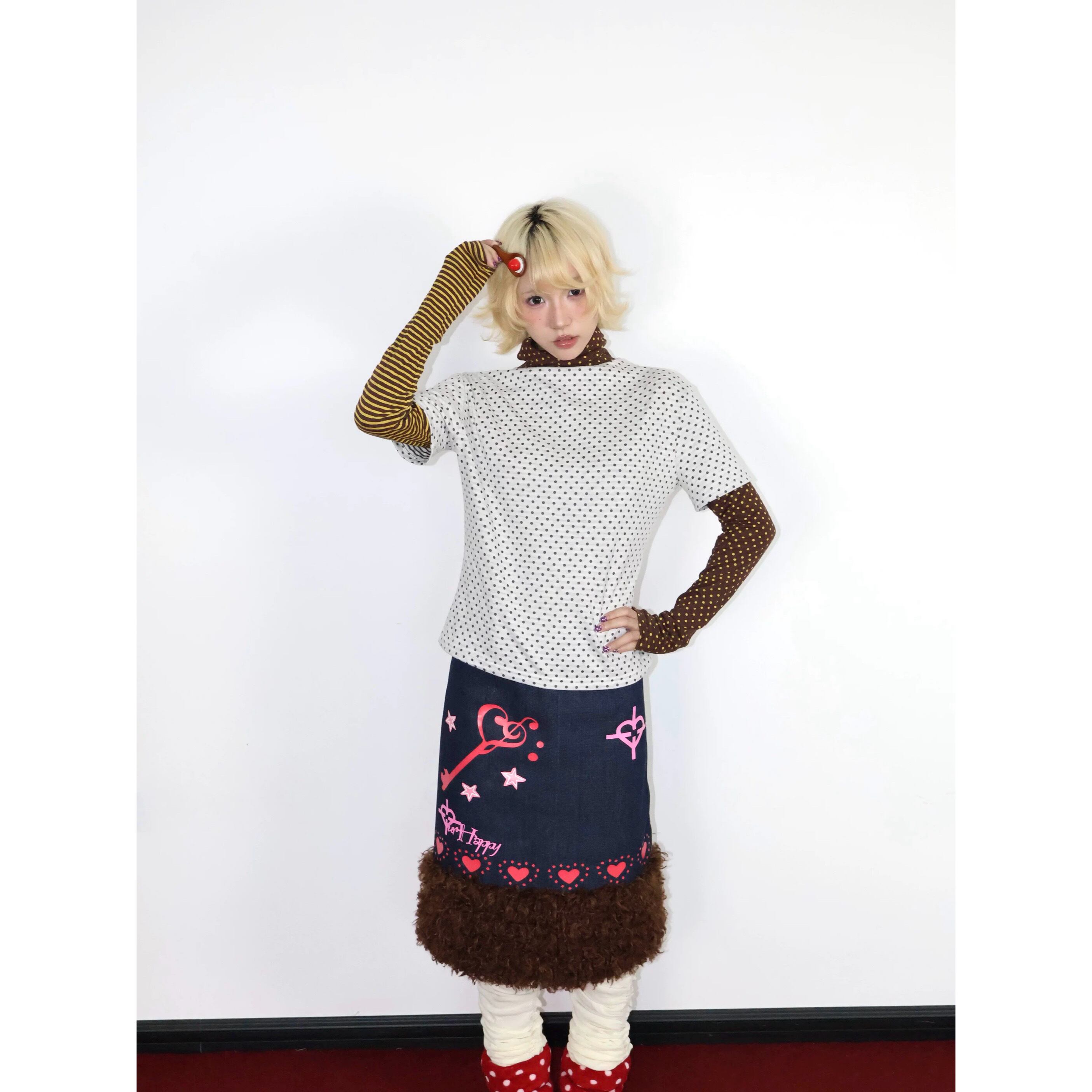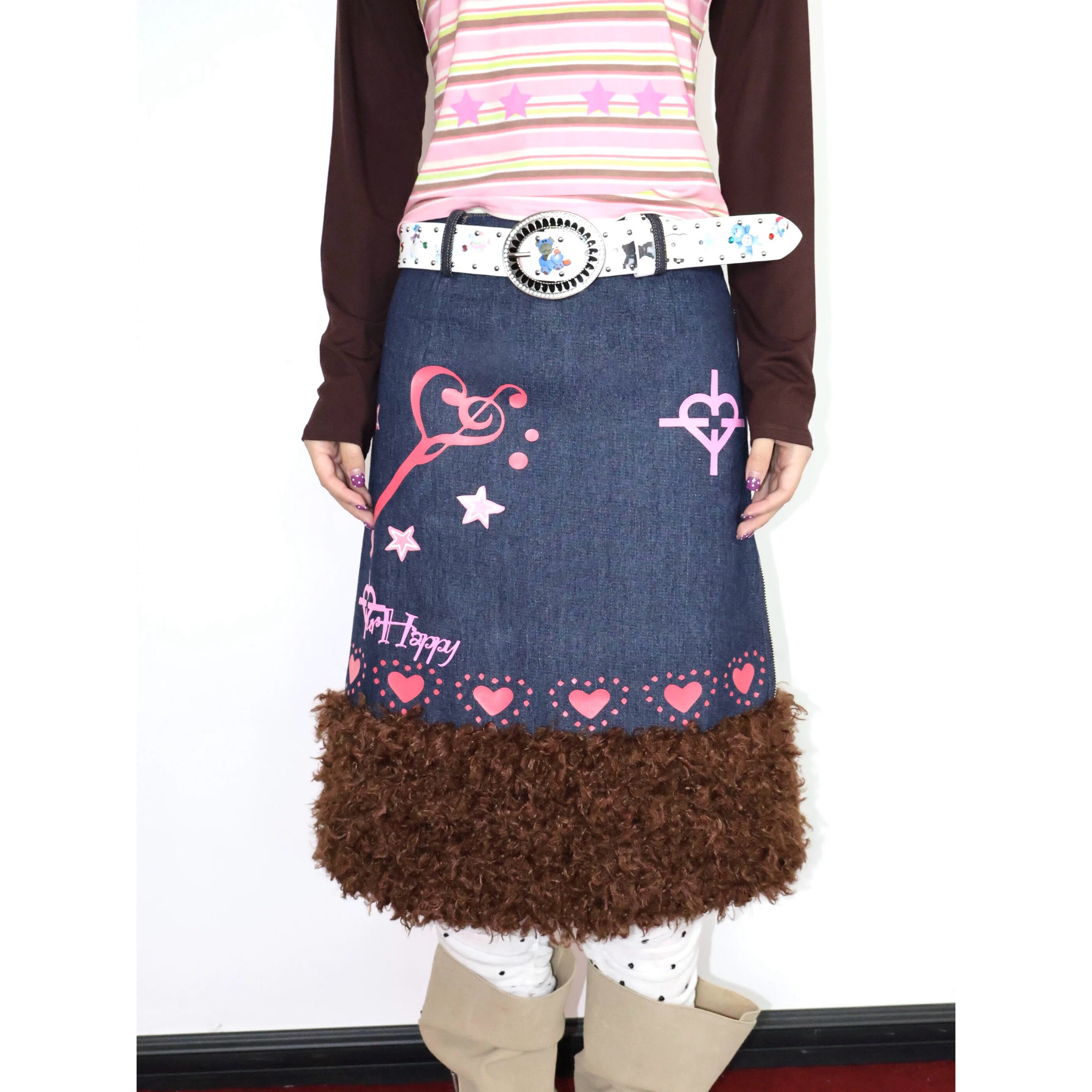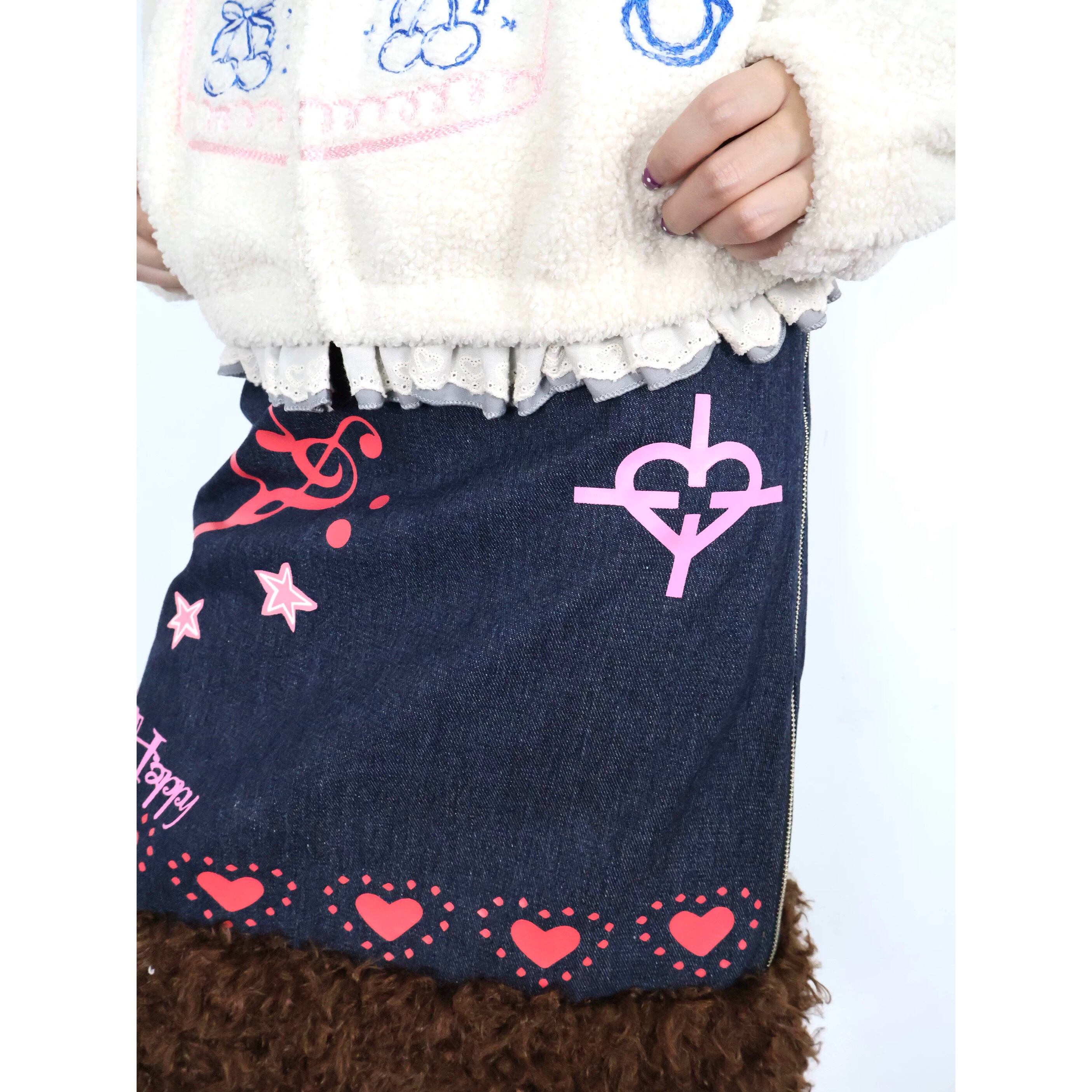 [OurHappy] Heartbeat Cowboy Half Skirt
