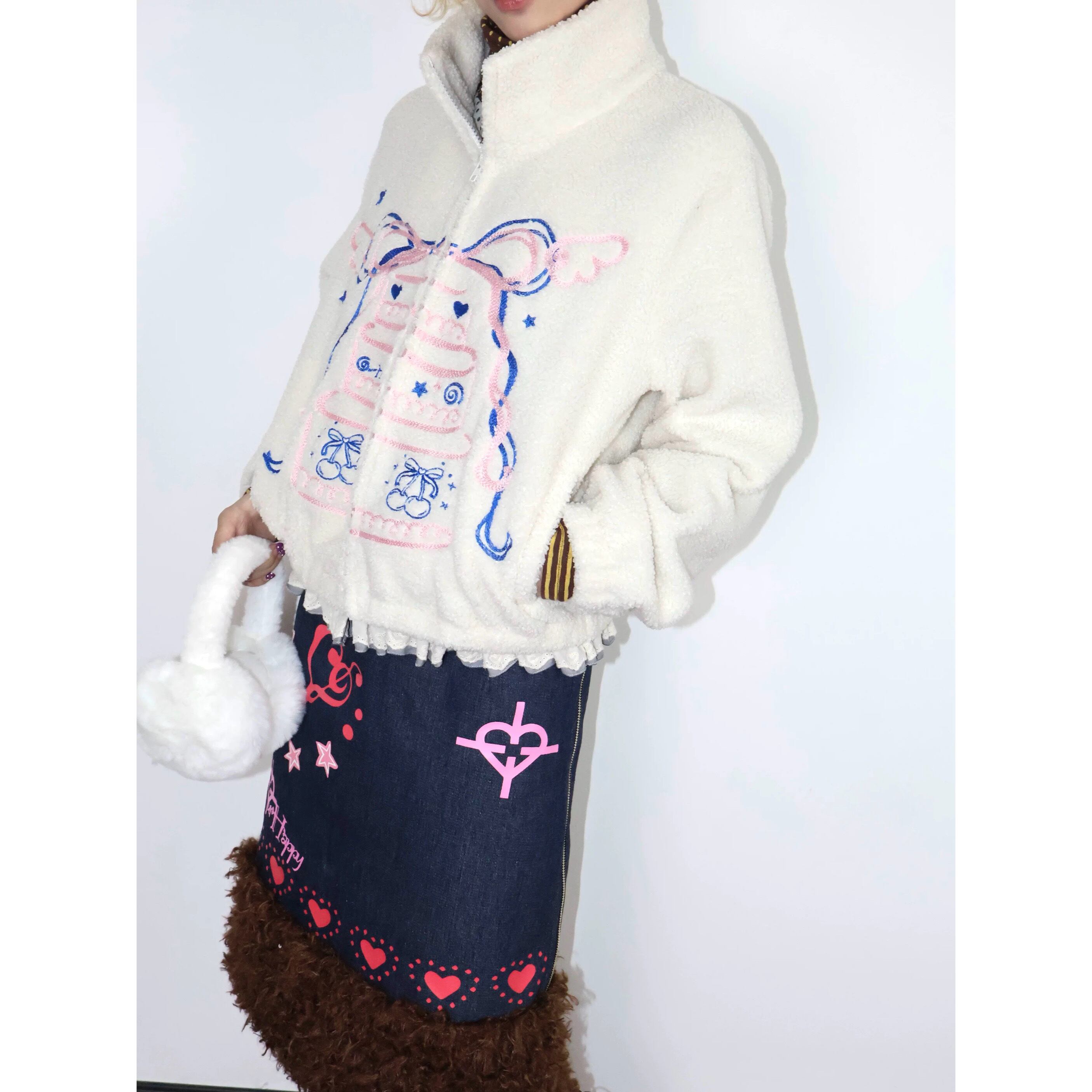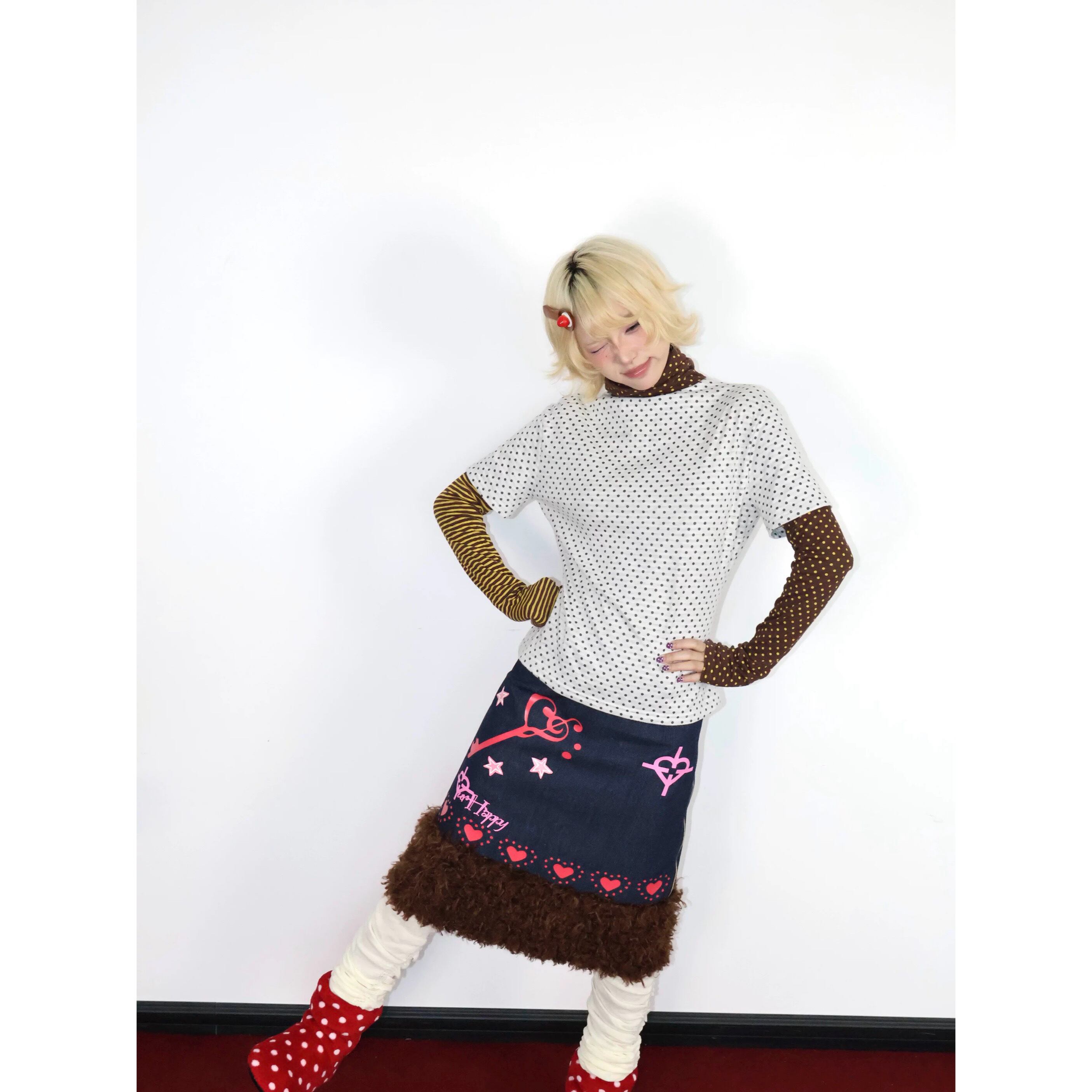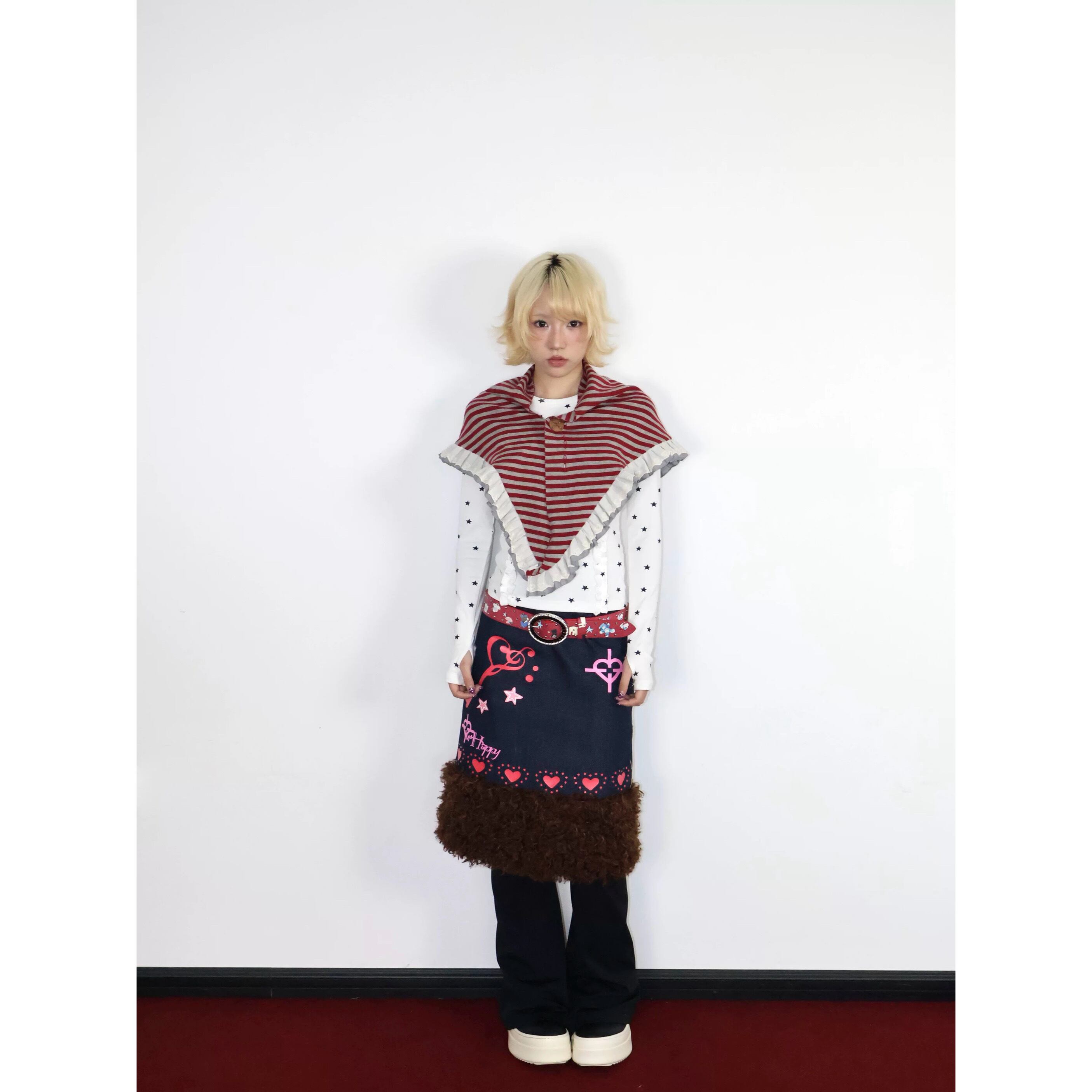 [OurHappy] Heartbeat Cowboy Half Skirt