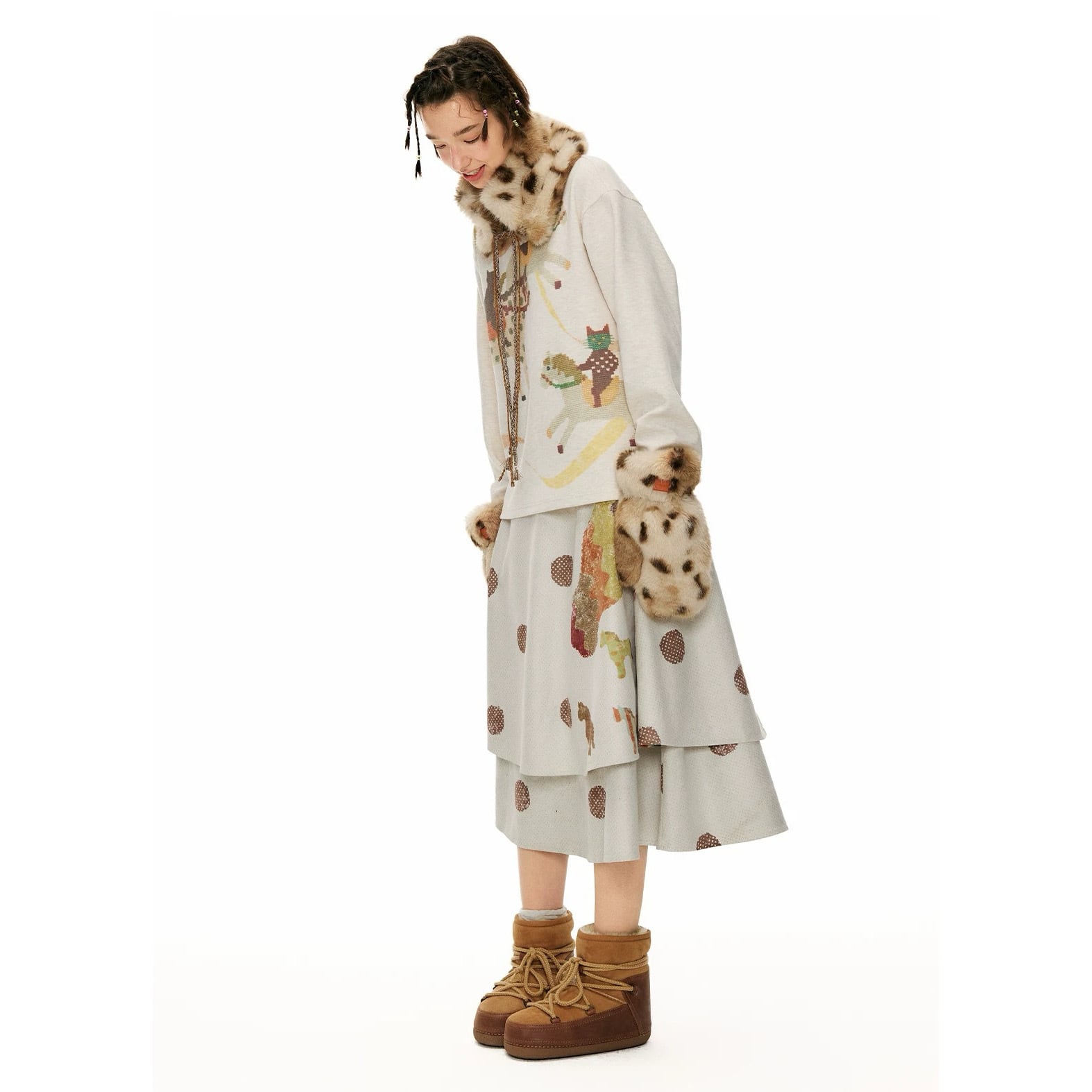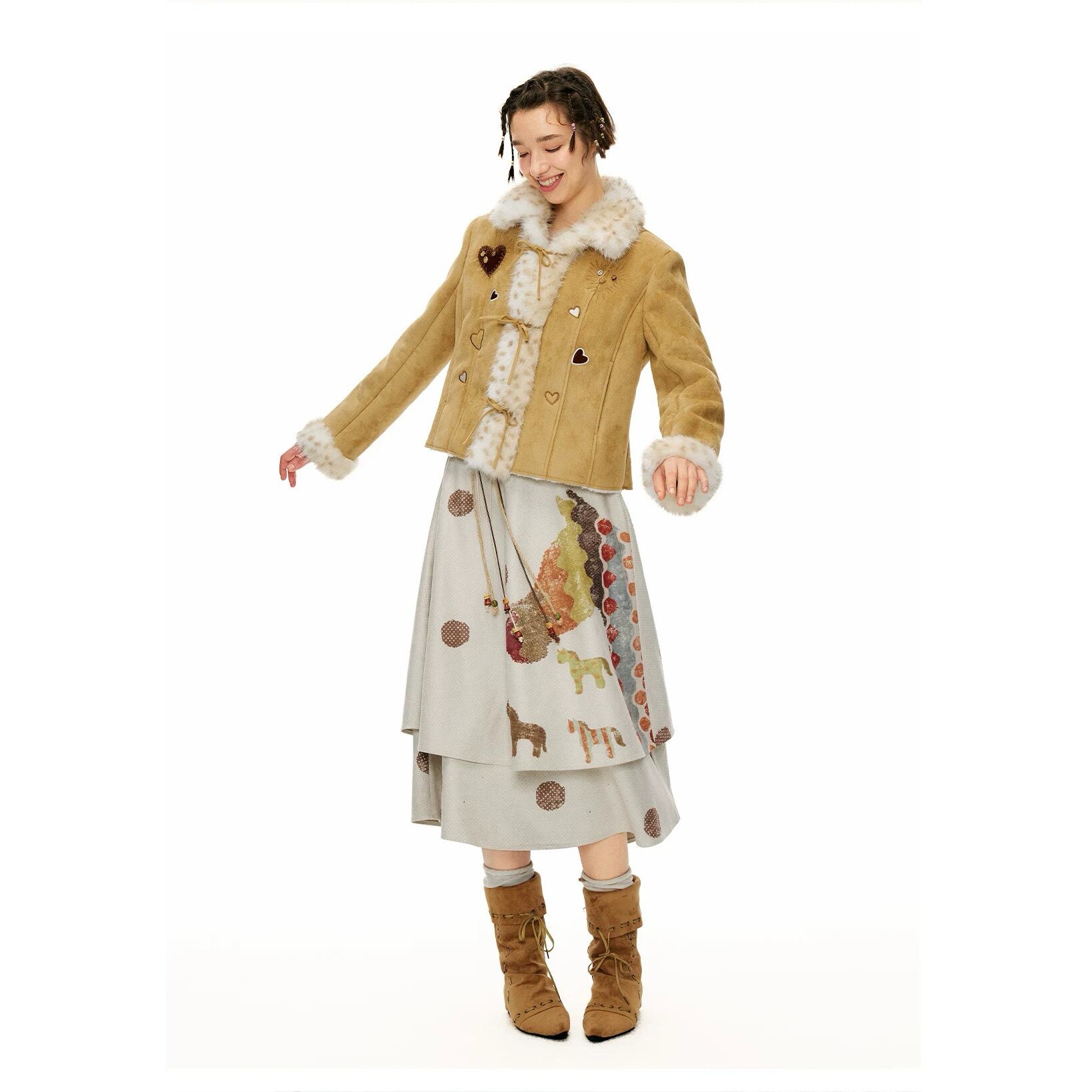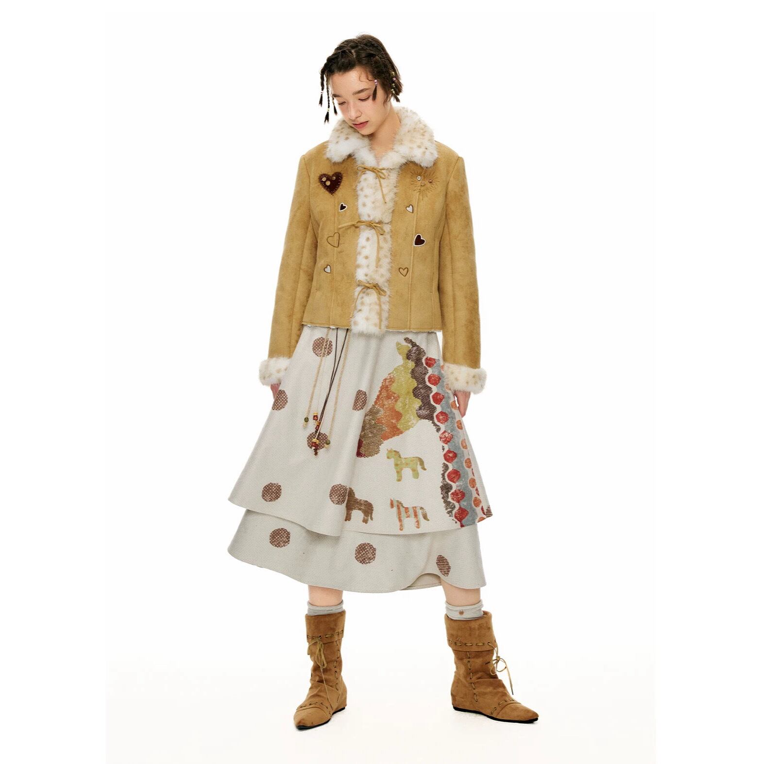[Outthe Blue] Double-Layer Velvet Half Skirt