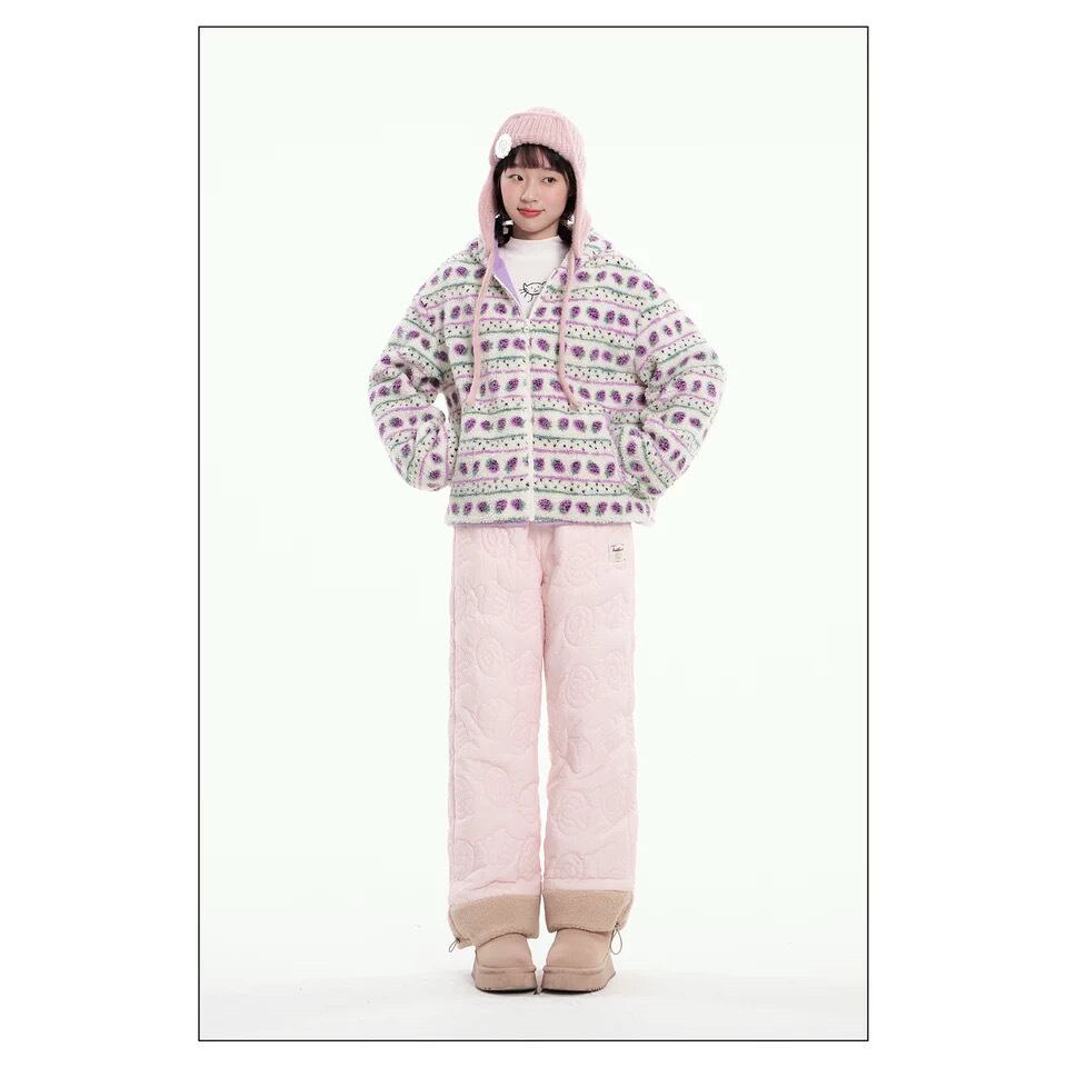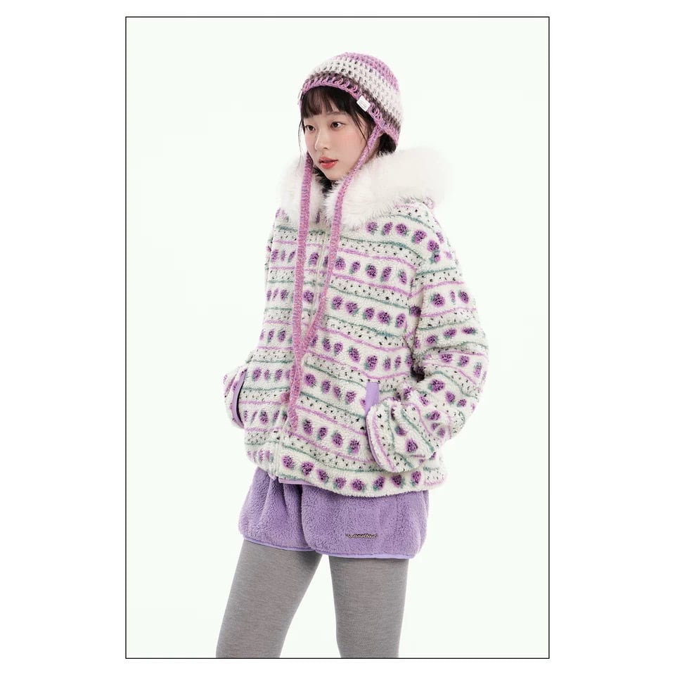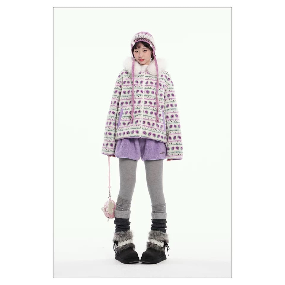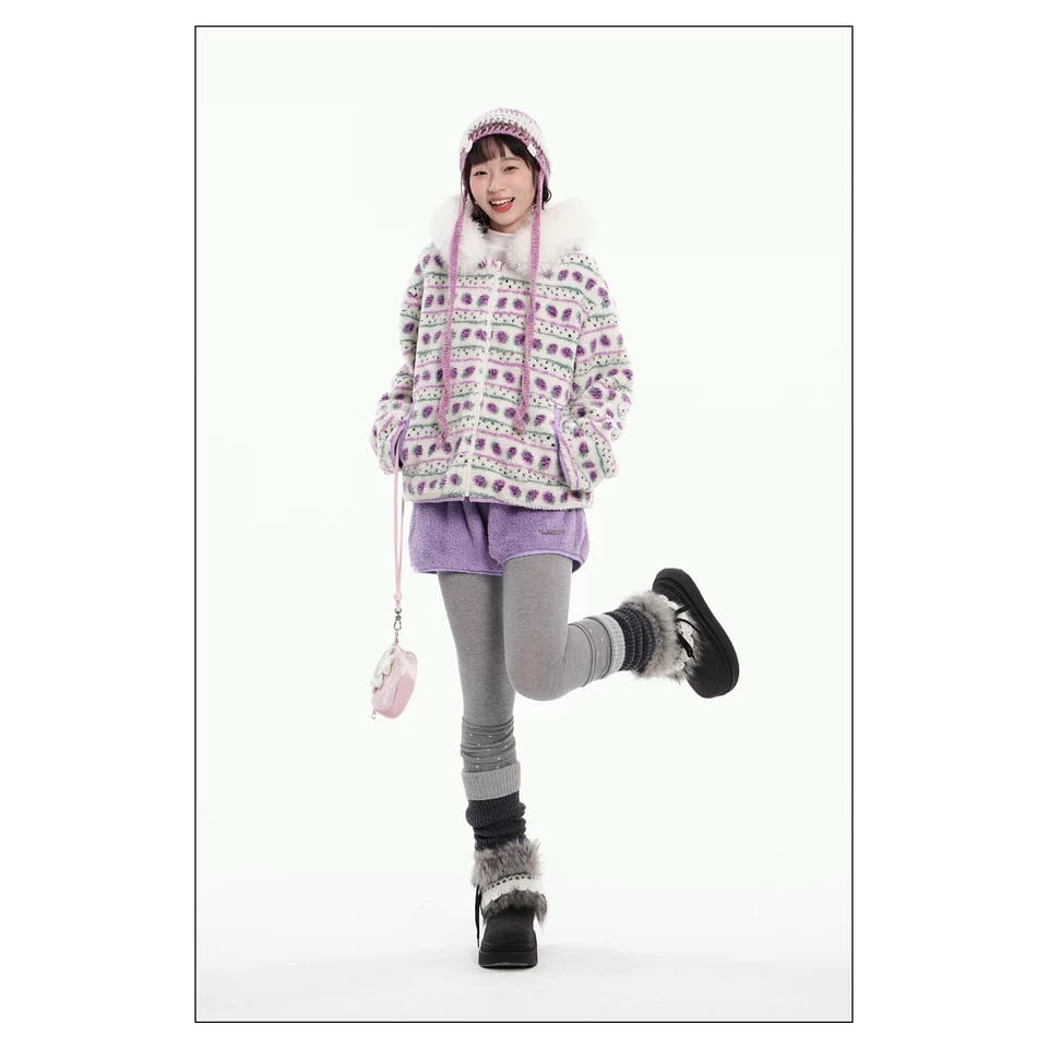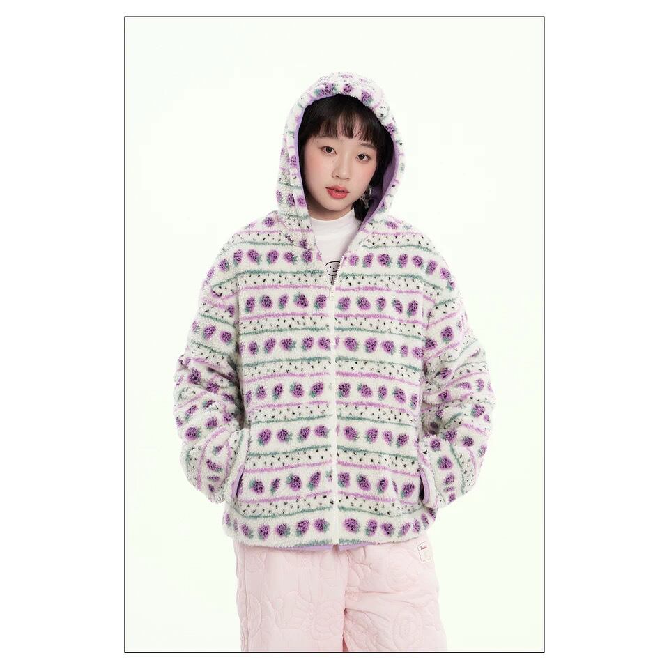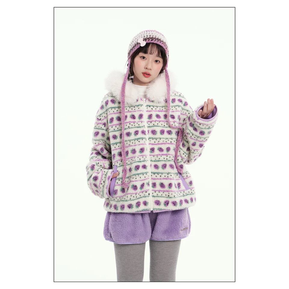 [Iamnotbad] Strawberry Purple Fleece Hooded Jacket