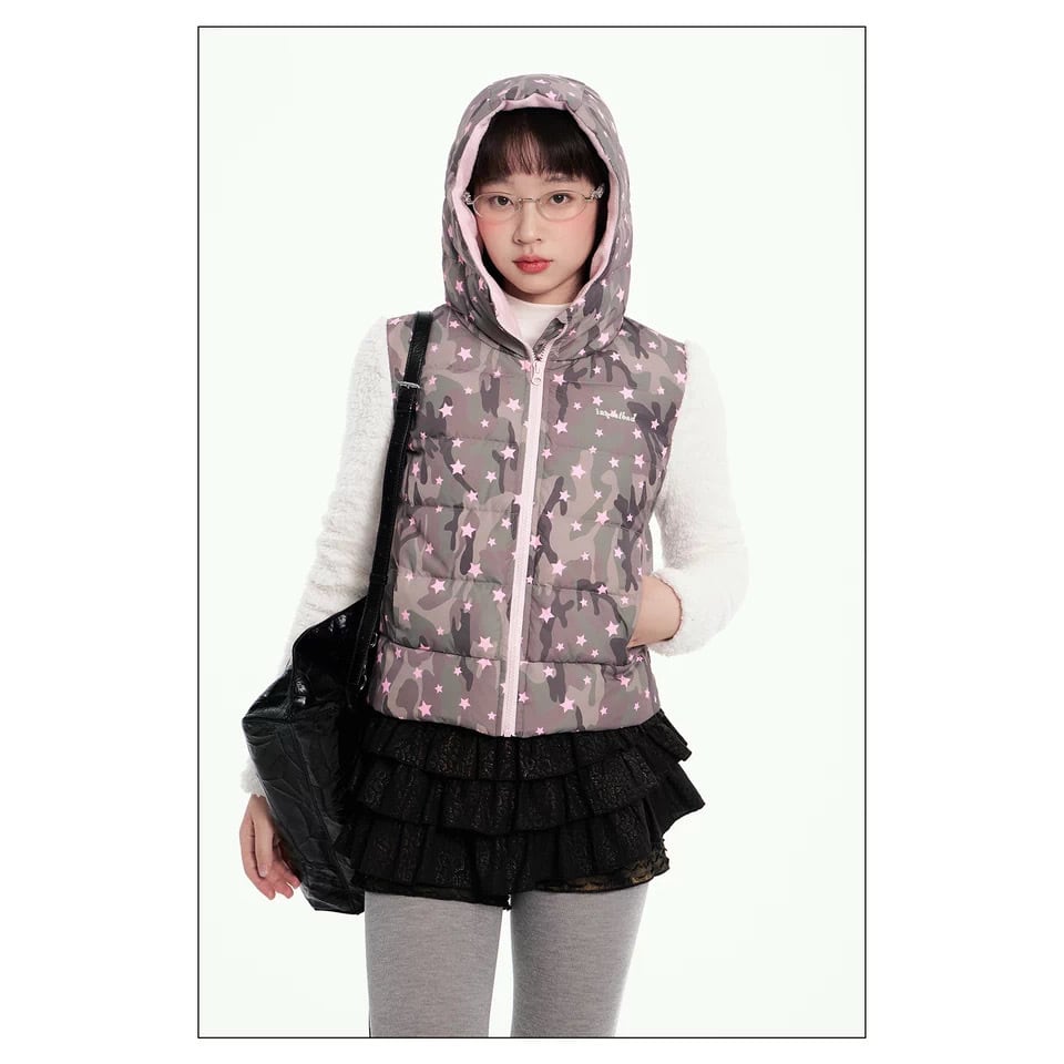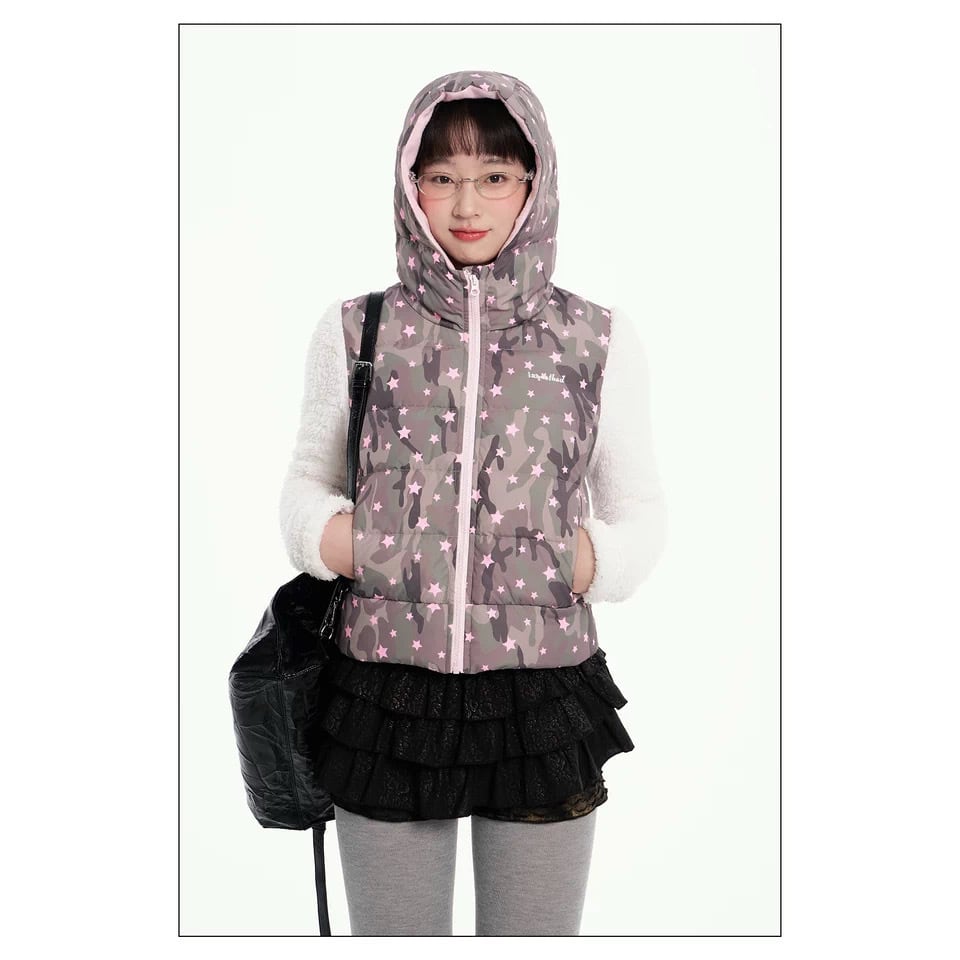 [Iamnotbad] Star Camouflage Devil Ear Down Jacket