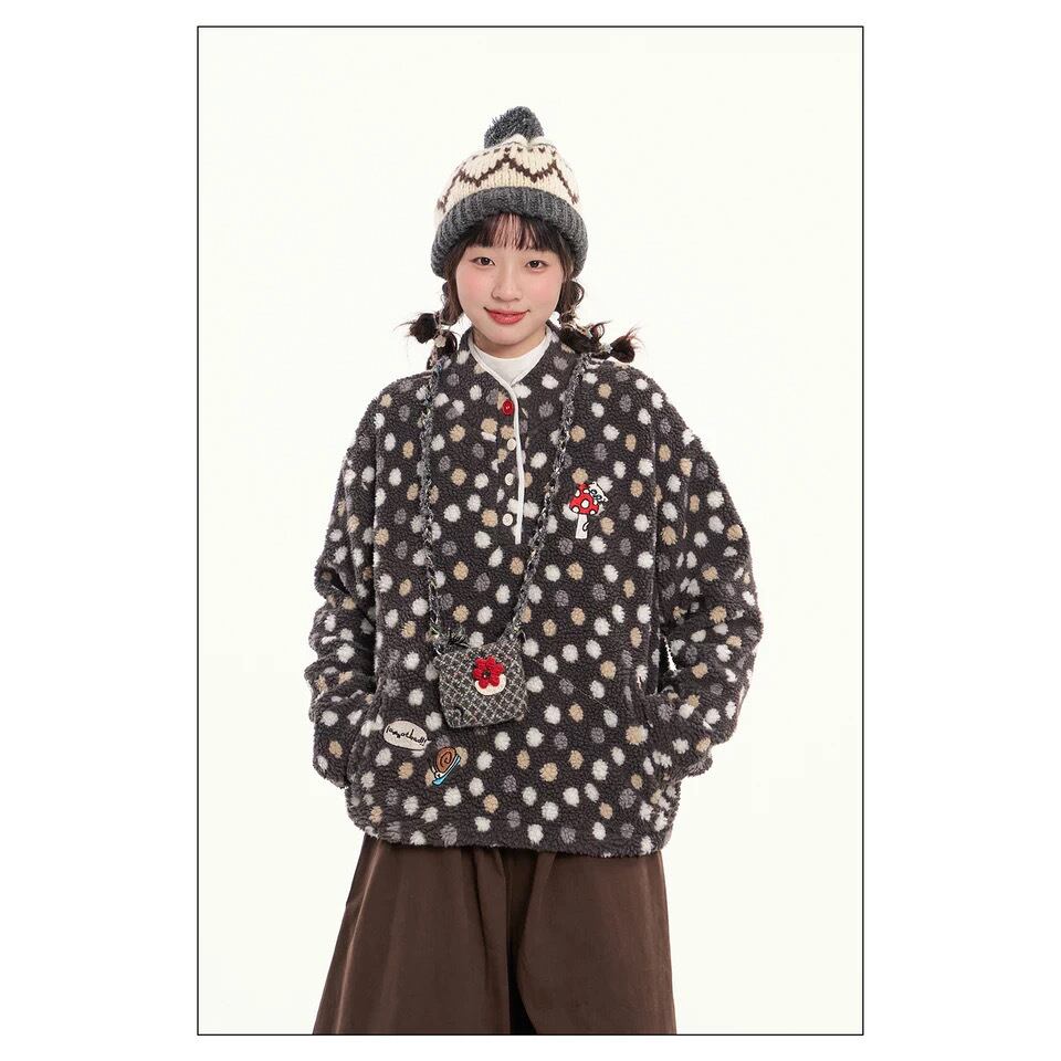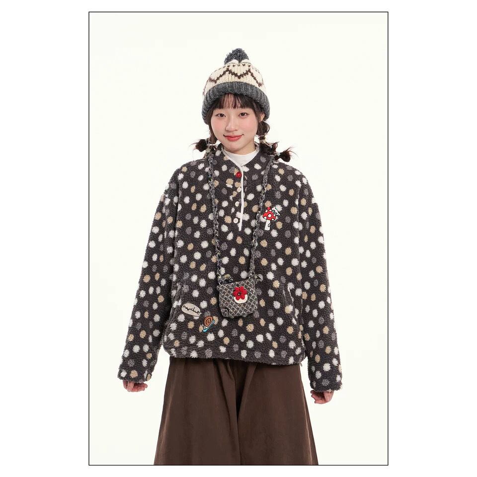 [Iamnotbad] Mushroom Snail dot fur jacket