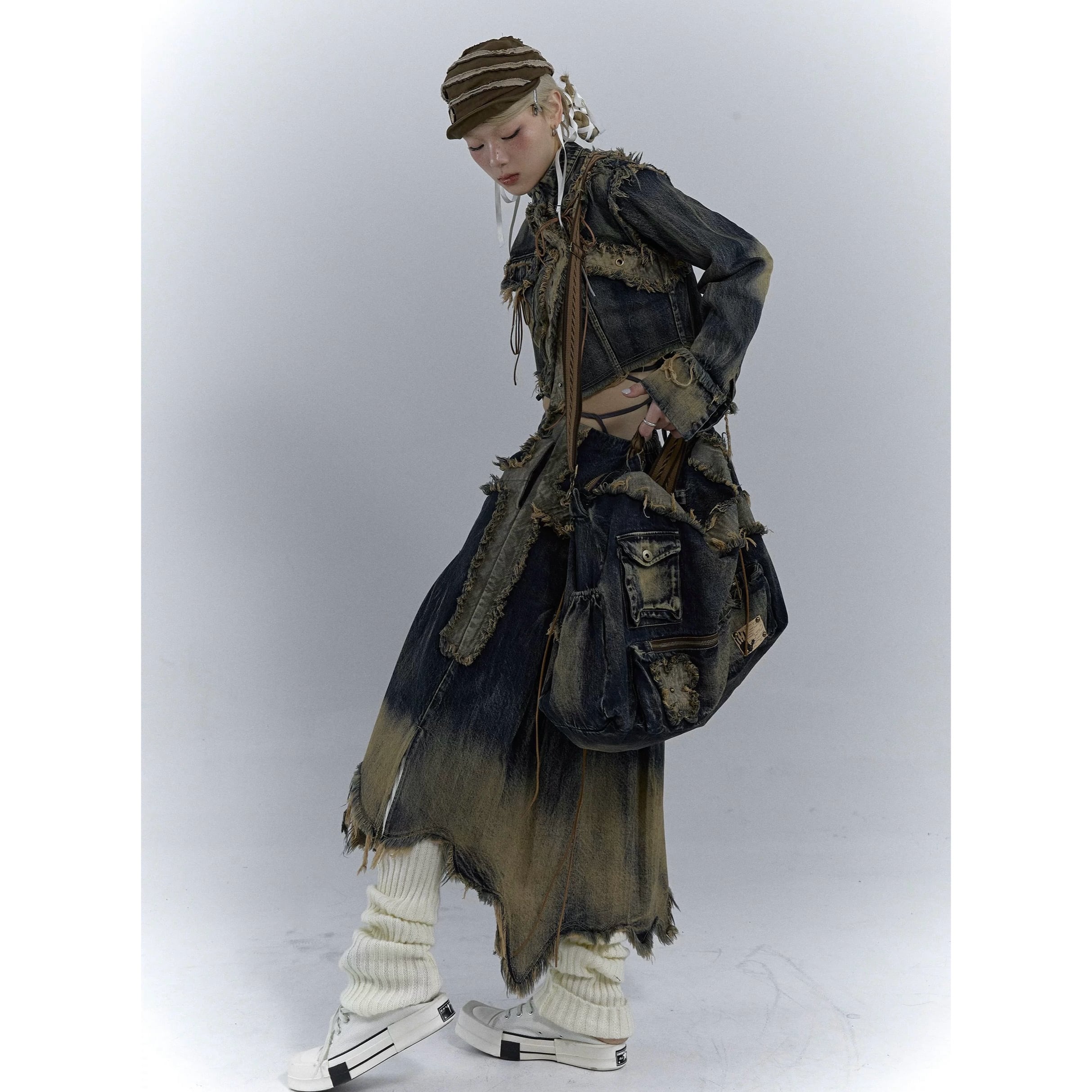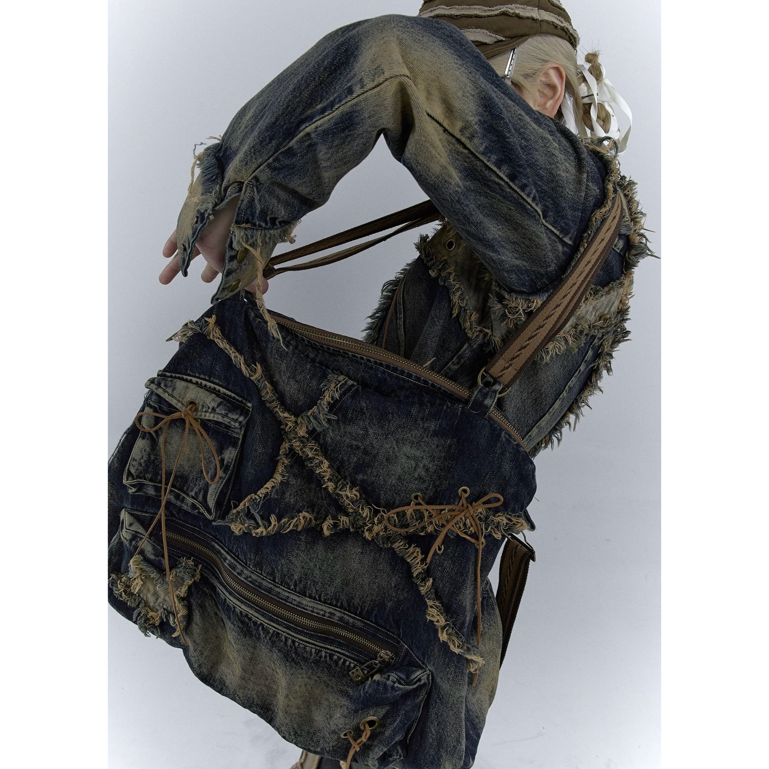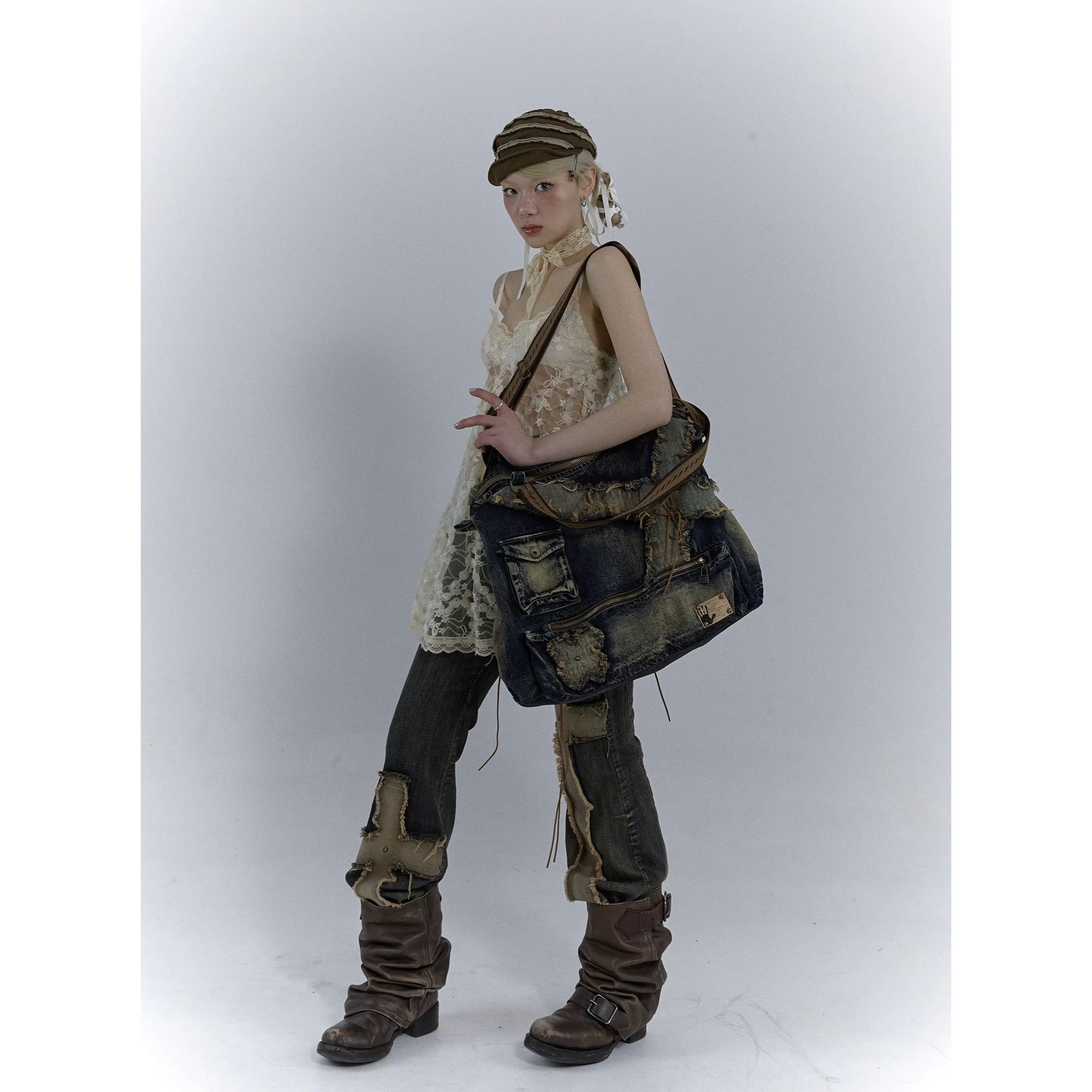 [NO ROMANCE] vintage washable denim shoulder bag