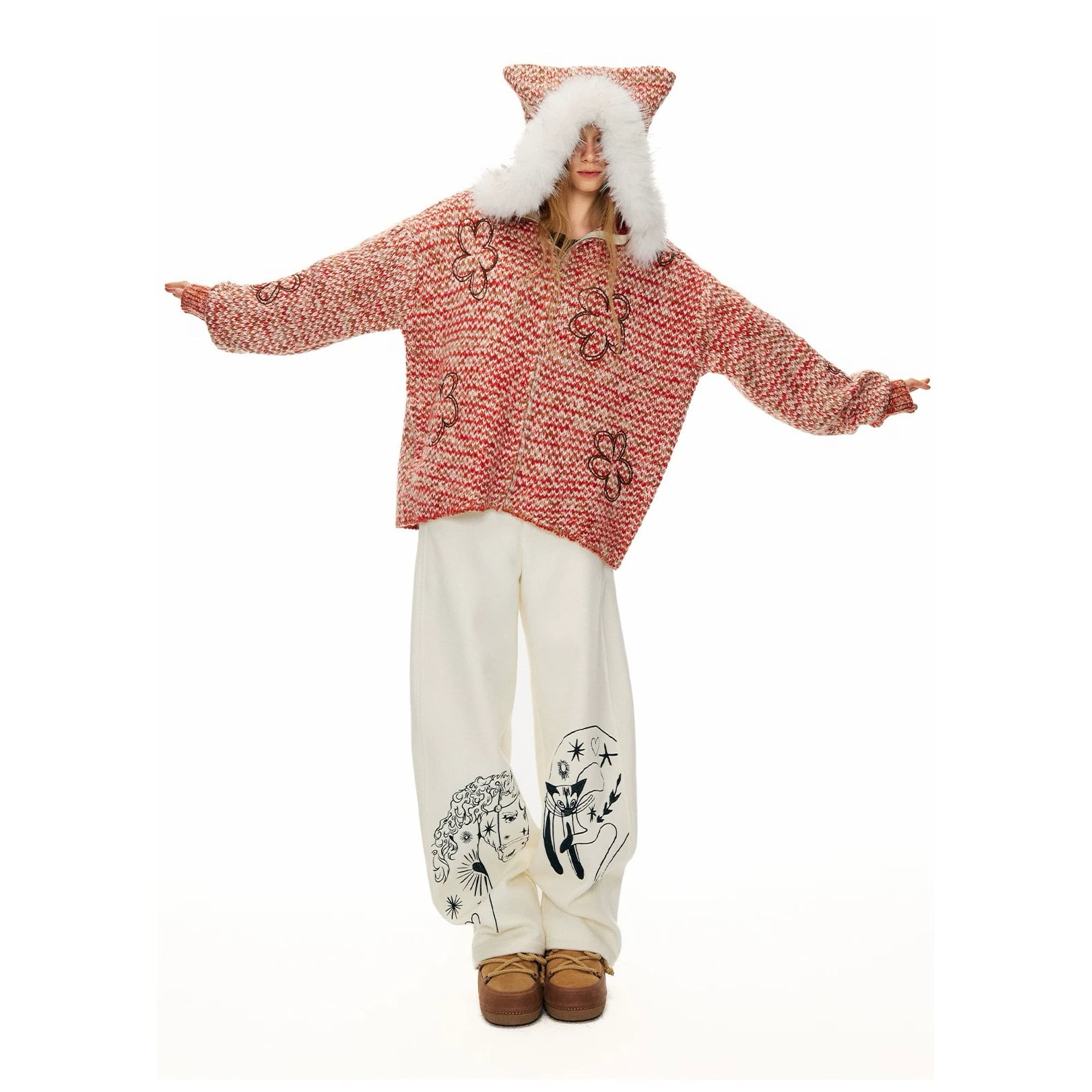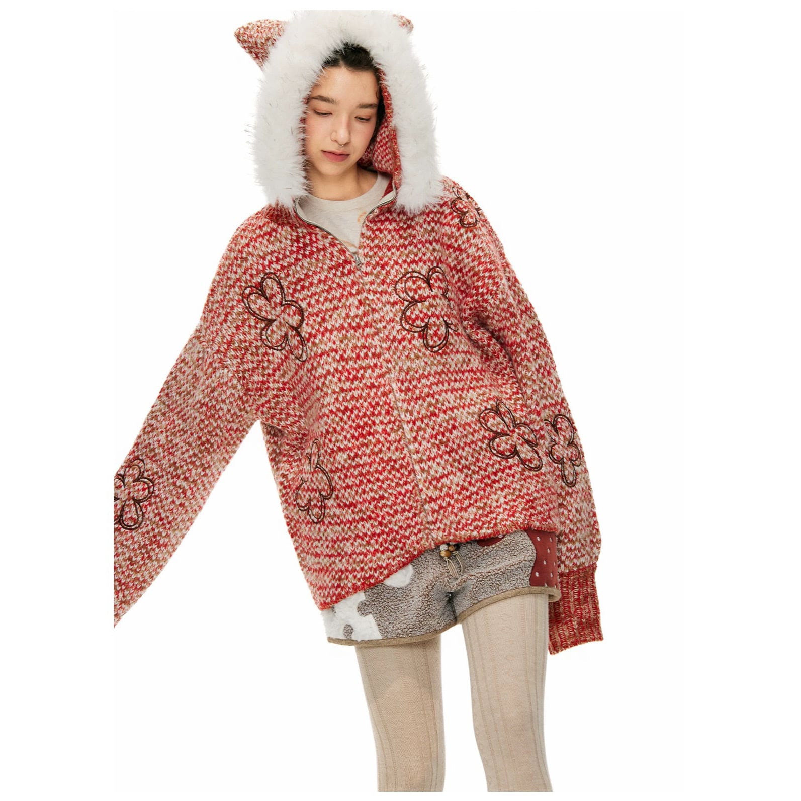 [Outthe Blue] Snowflake Flower Cat Ear Sweater