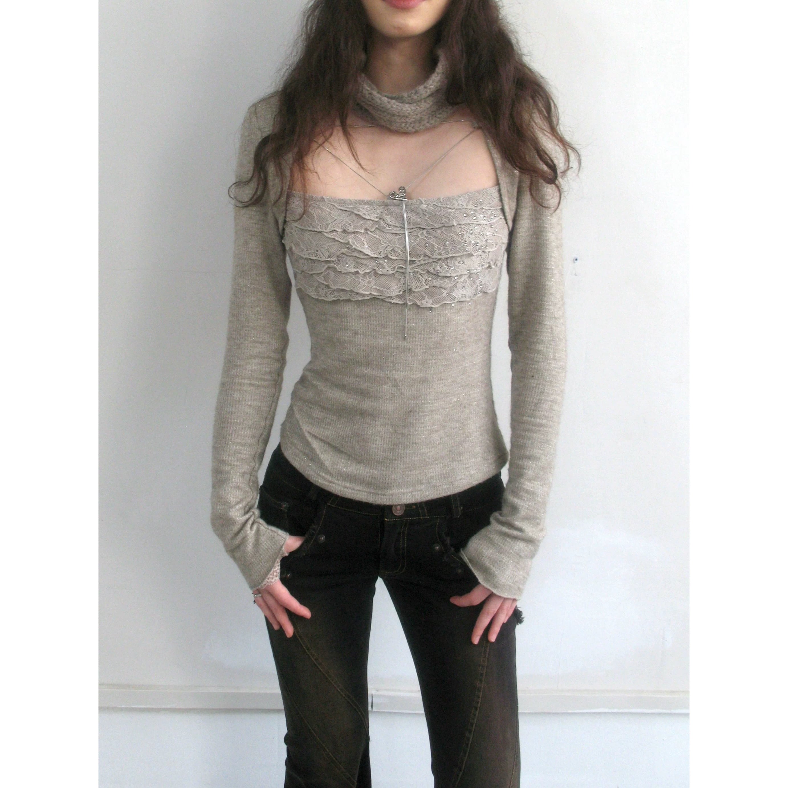 [OPEN AESTHETIC] Embroidered Lace Two-Piece Top