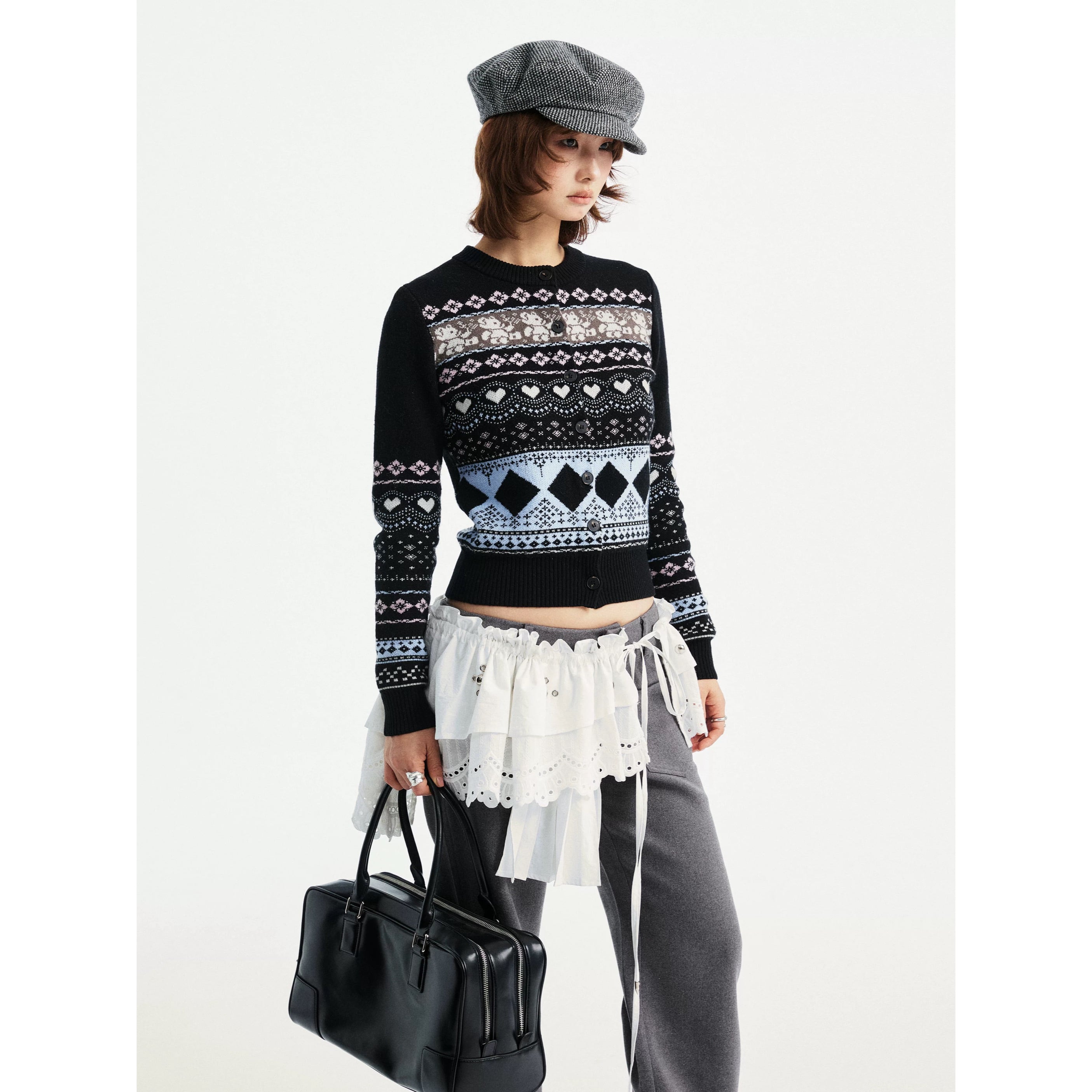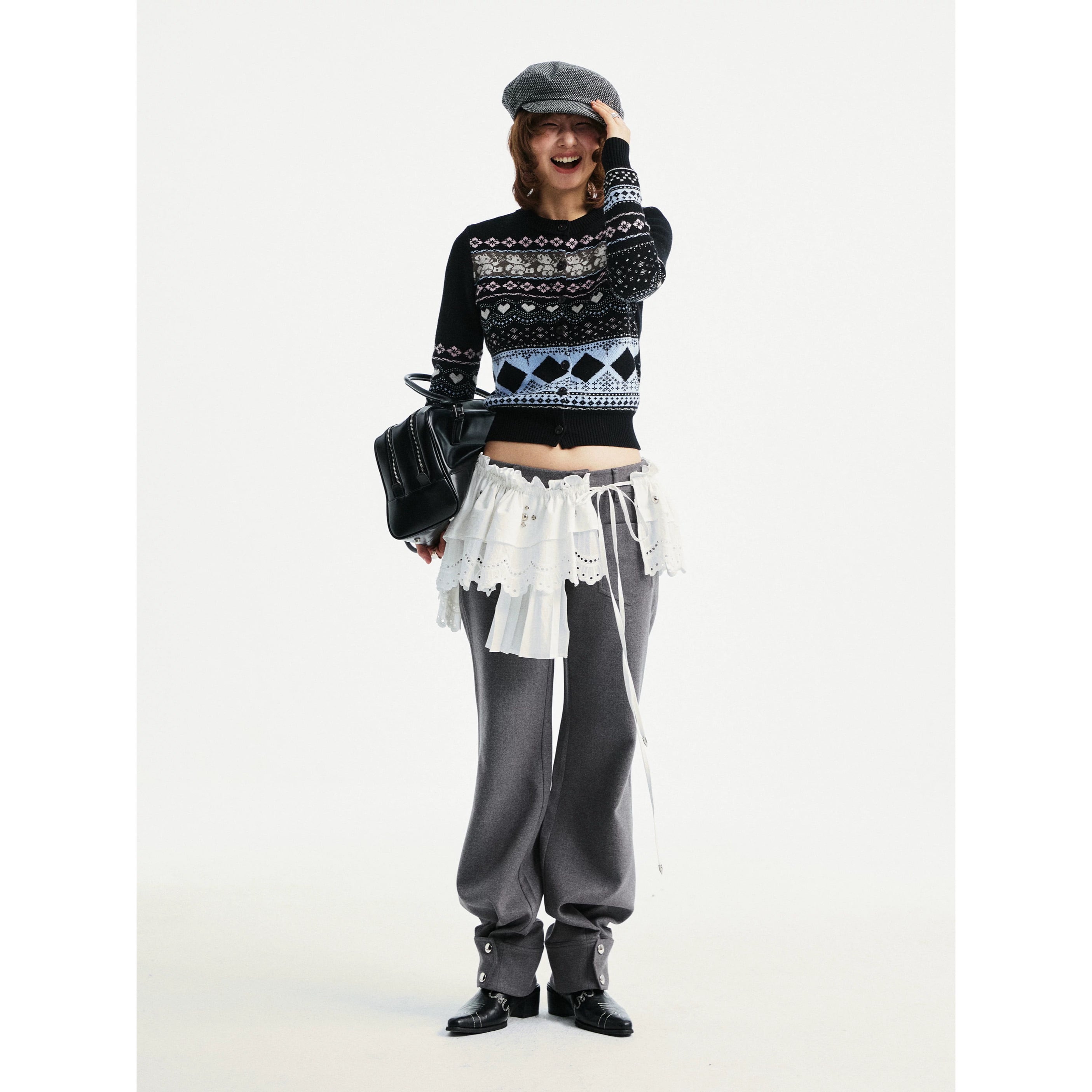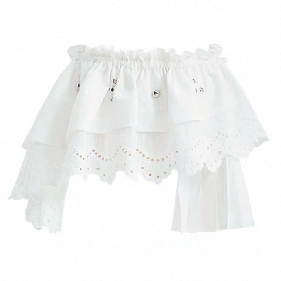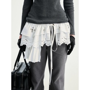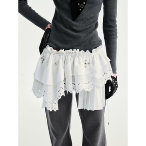[YOSHUYUKI] Floral White Curtain Waist Waist Strap Skirt